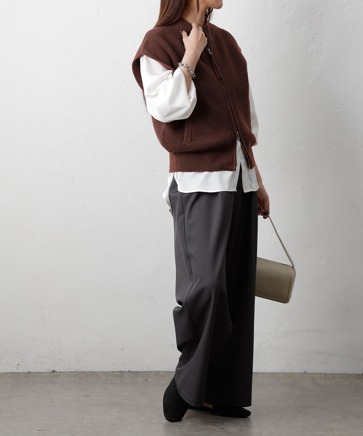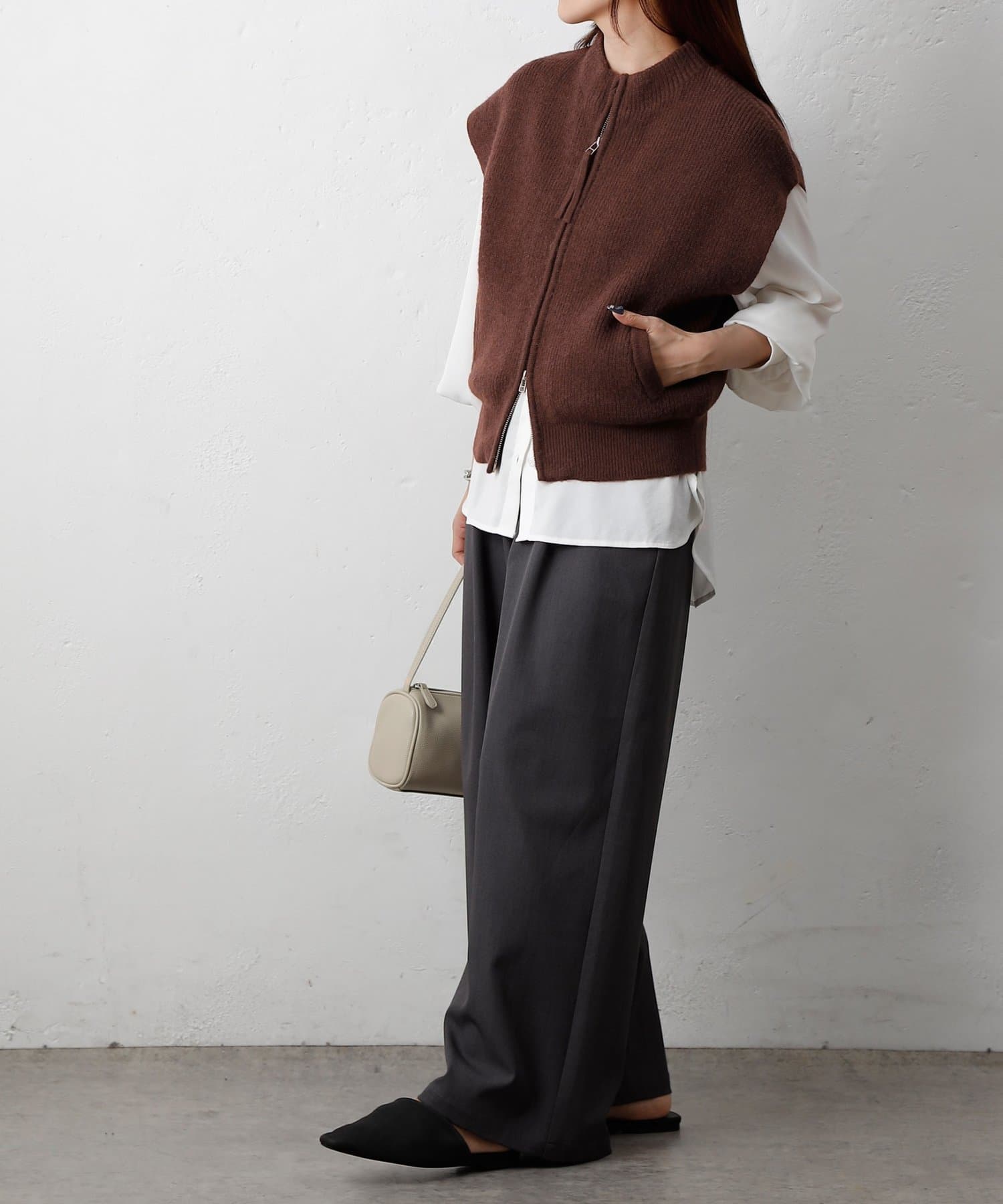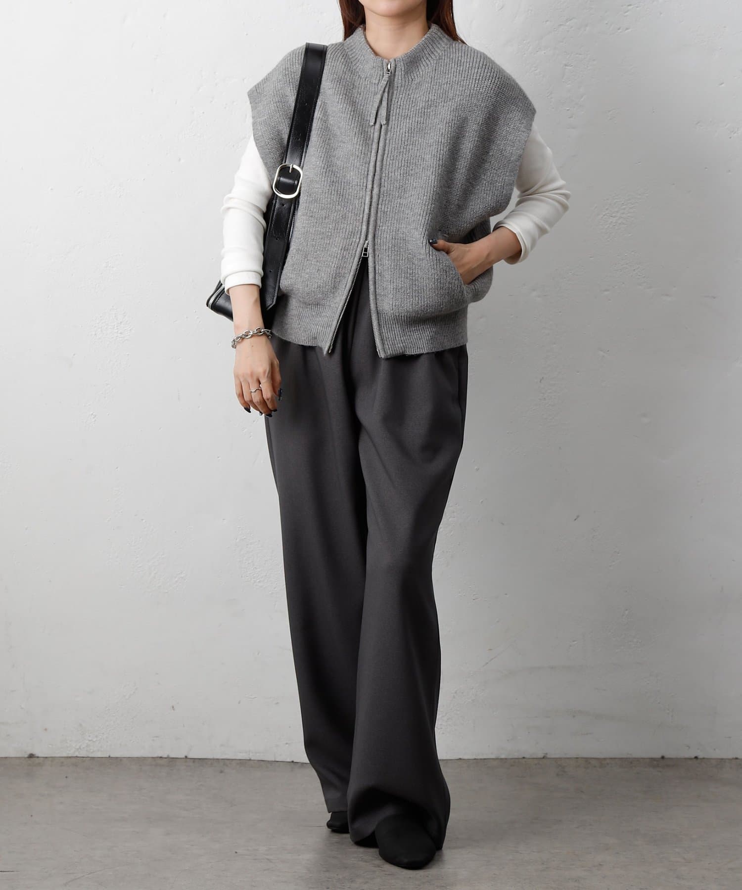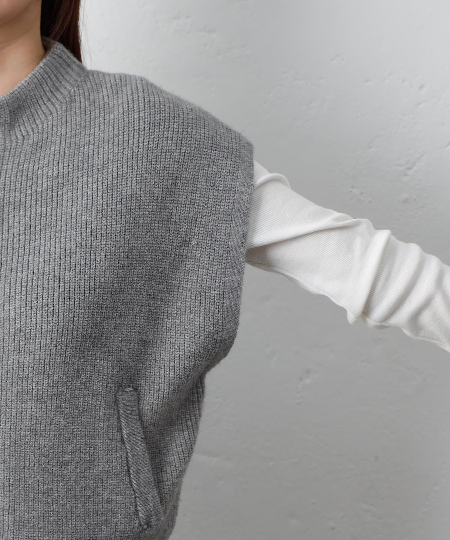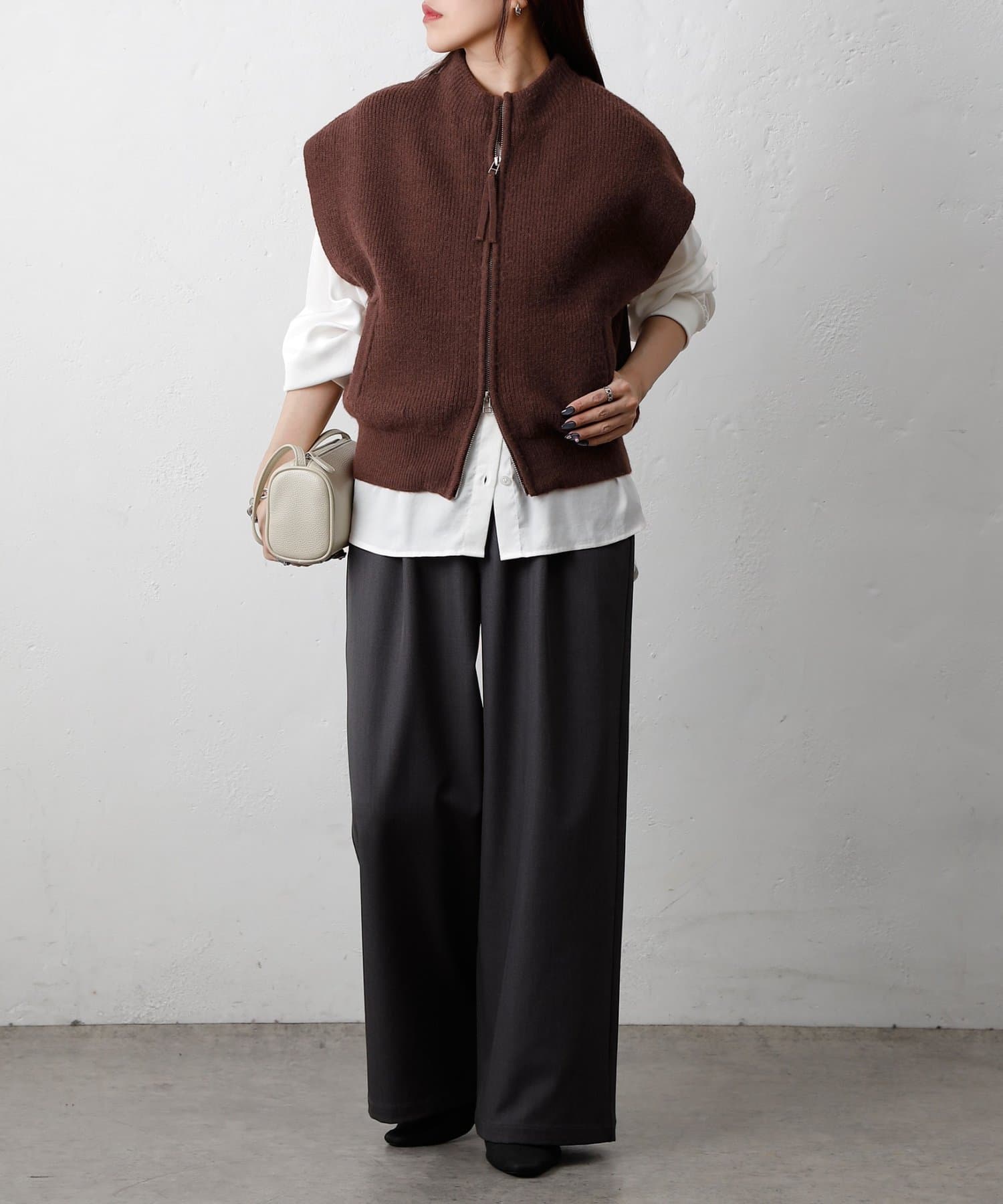 凹凸のある片畦編みが生み出す自然な立体感がかわいいジップアップベストです。