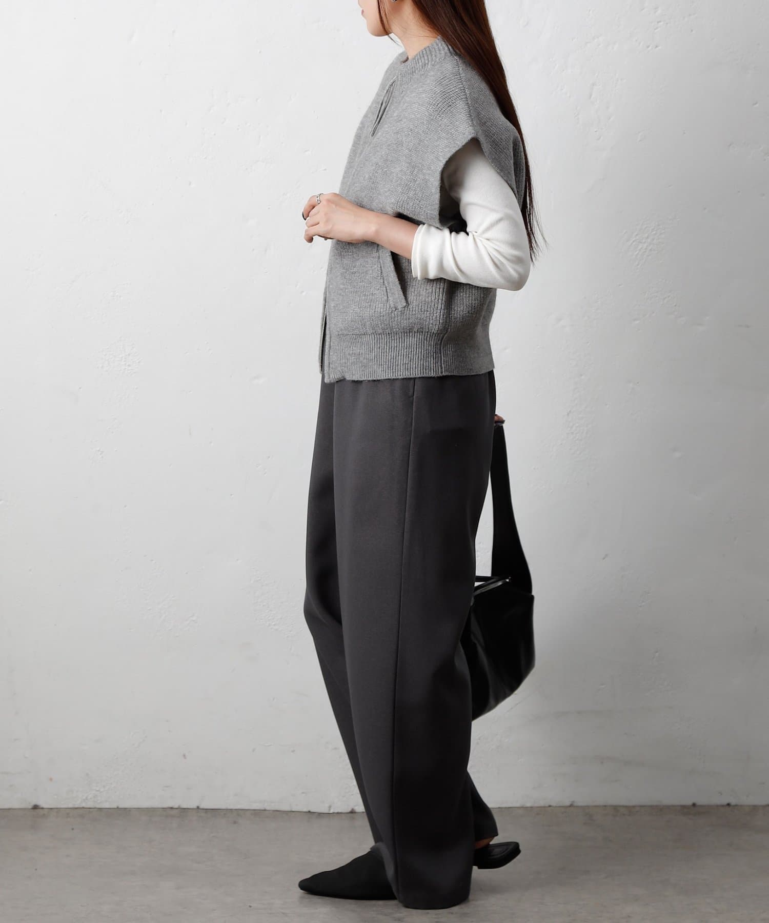 ロンTやシャツなどとレイヤードすると一気にトレンド感がアップすします。