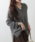 【ふわふわな触り心地のゆったりVネックニット】