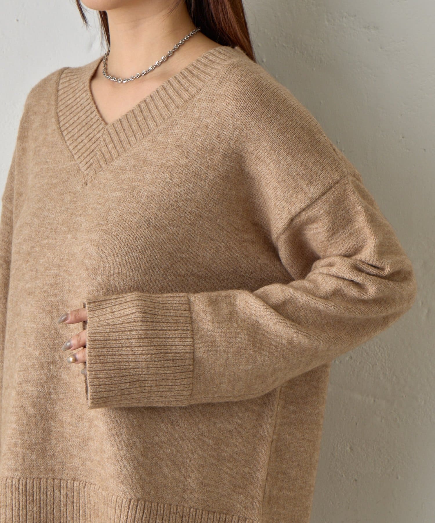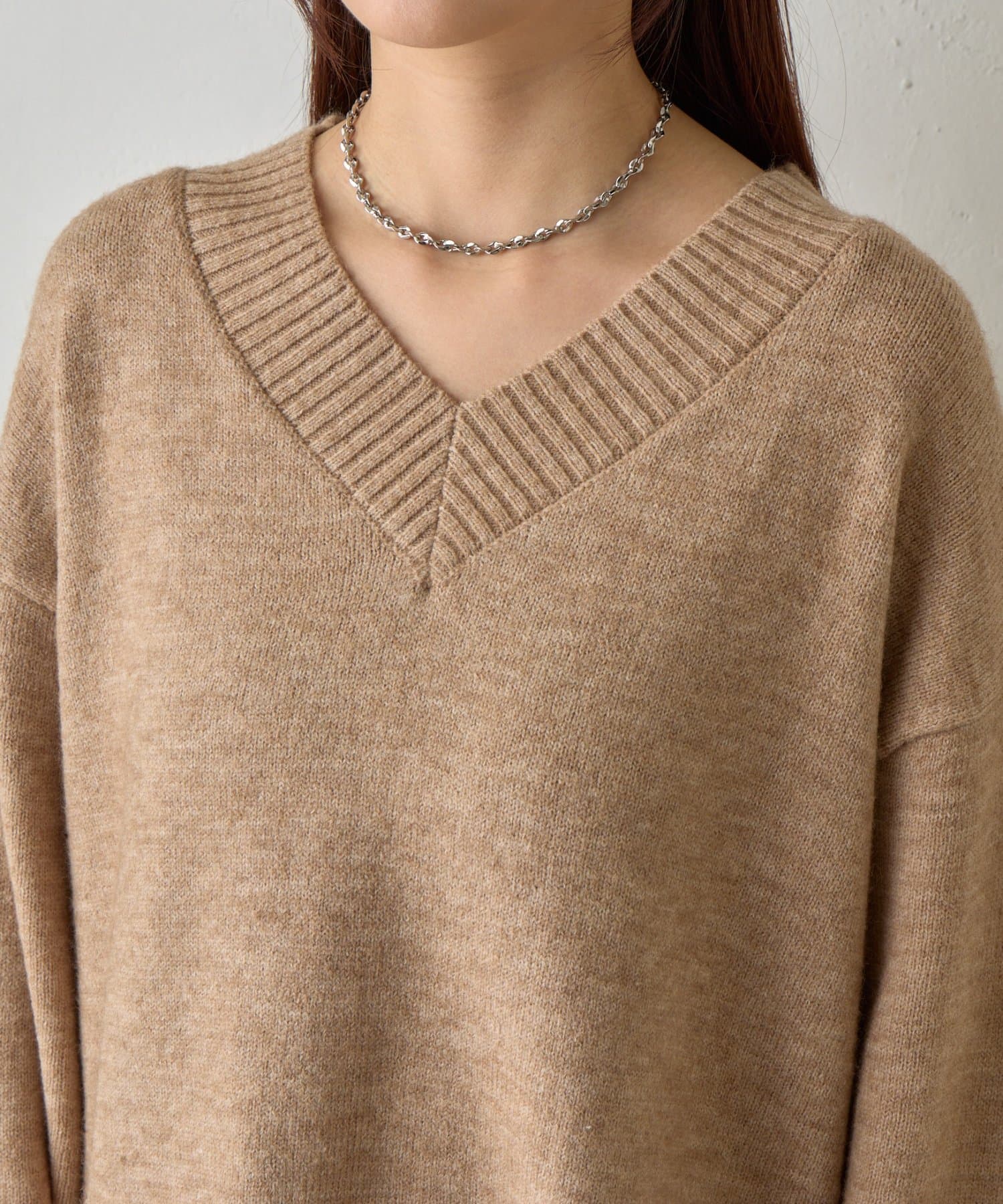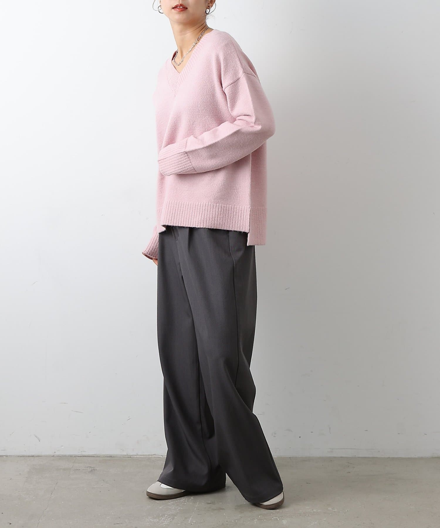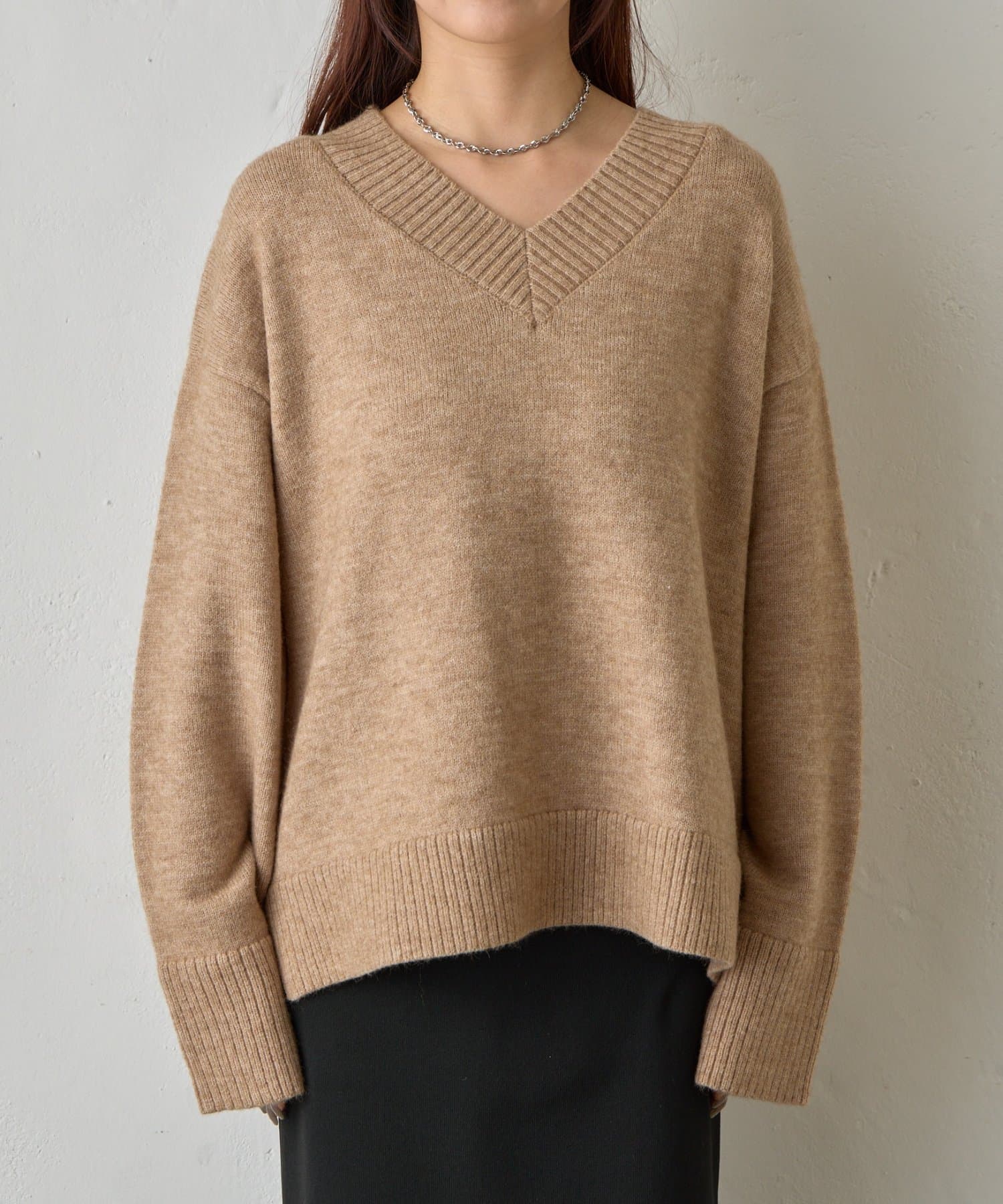 ゆったりとしたシルエットと柔らかい生地感が特徴のゆるふわV ネックニットです。