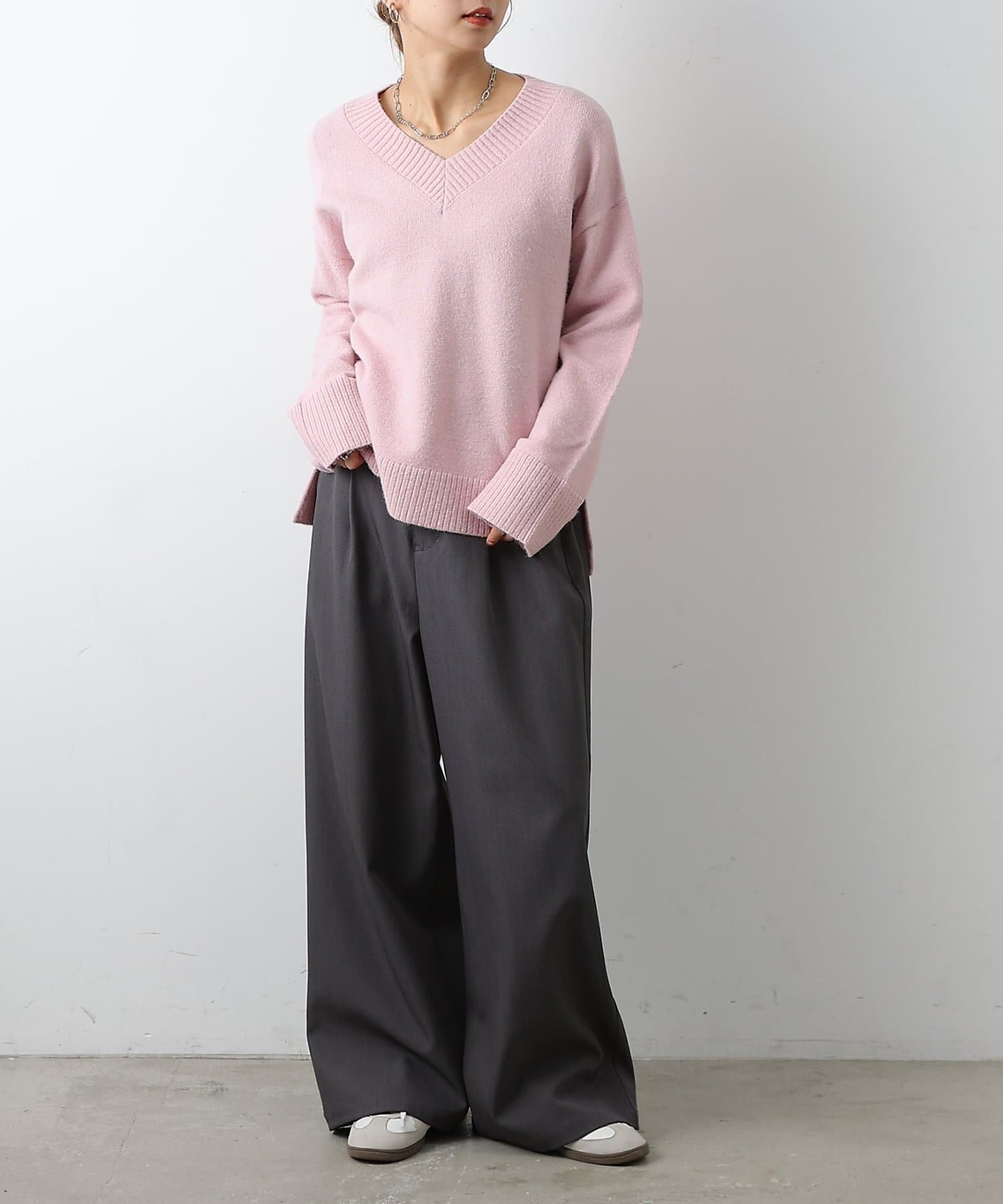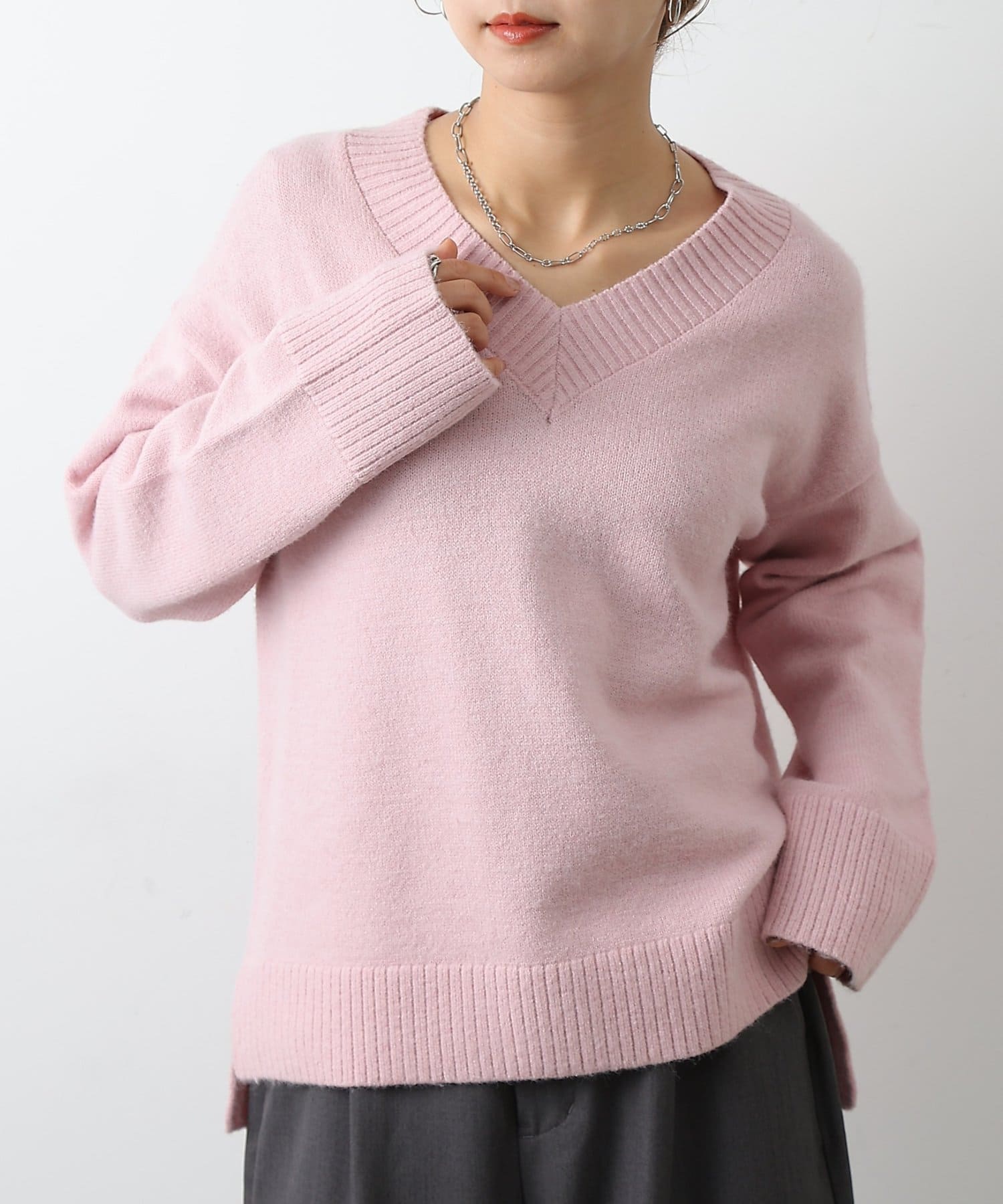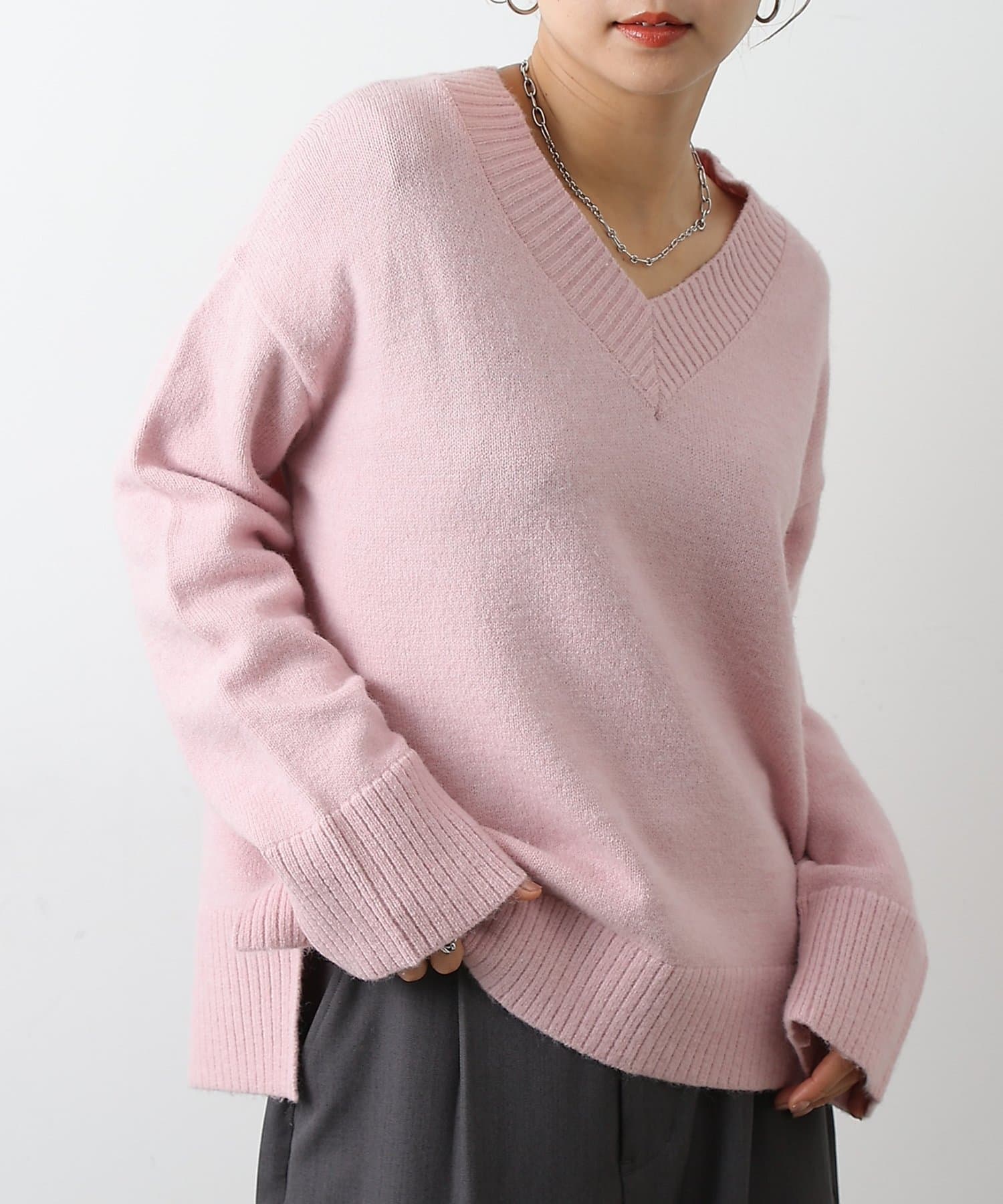 ゆったりとしたシルエットと柔らかい生地感が特徴のゆるふわV ネックニットです。