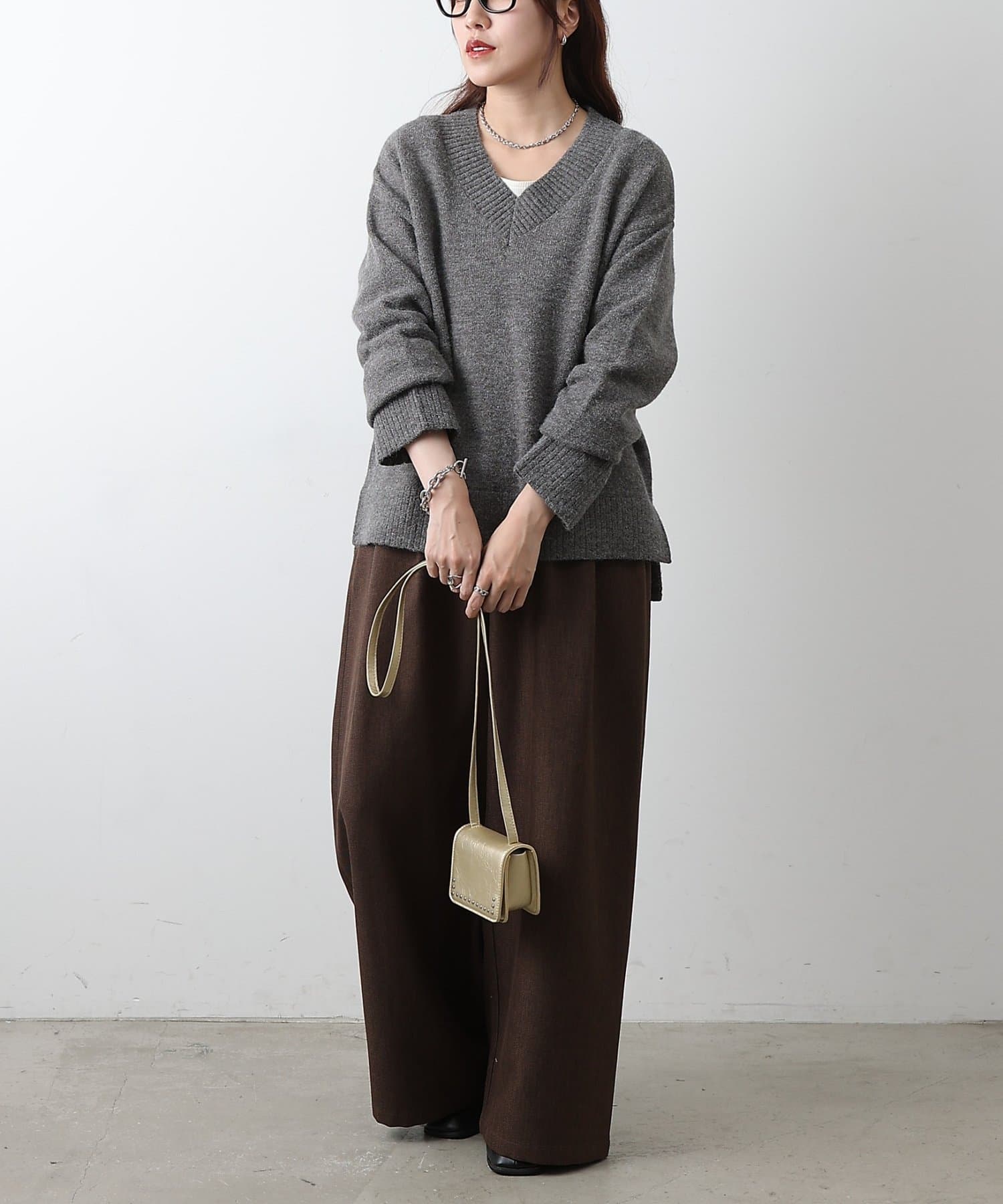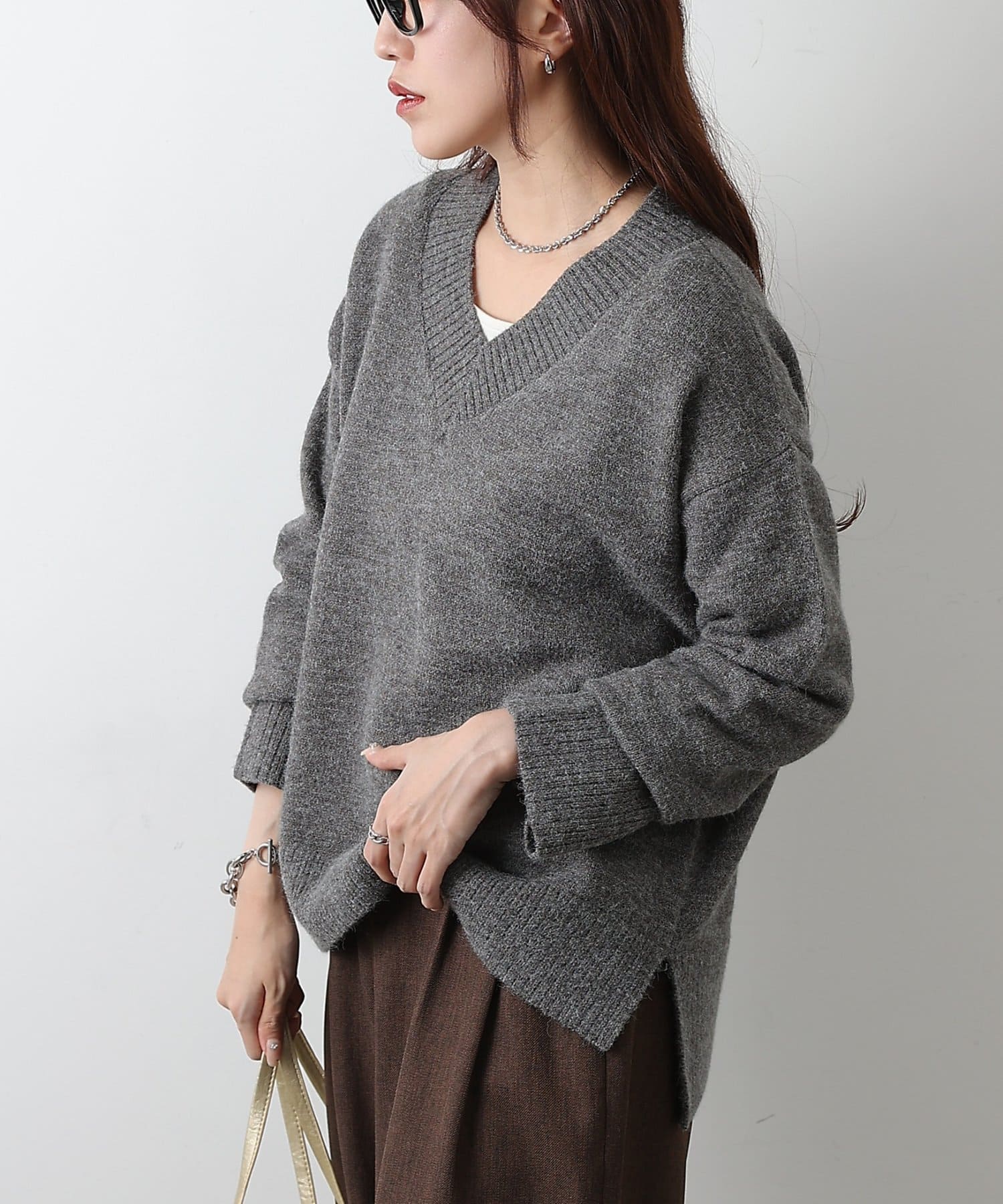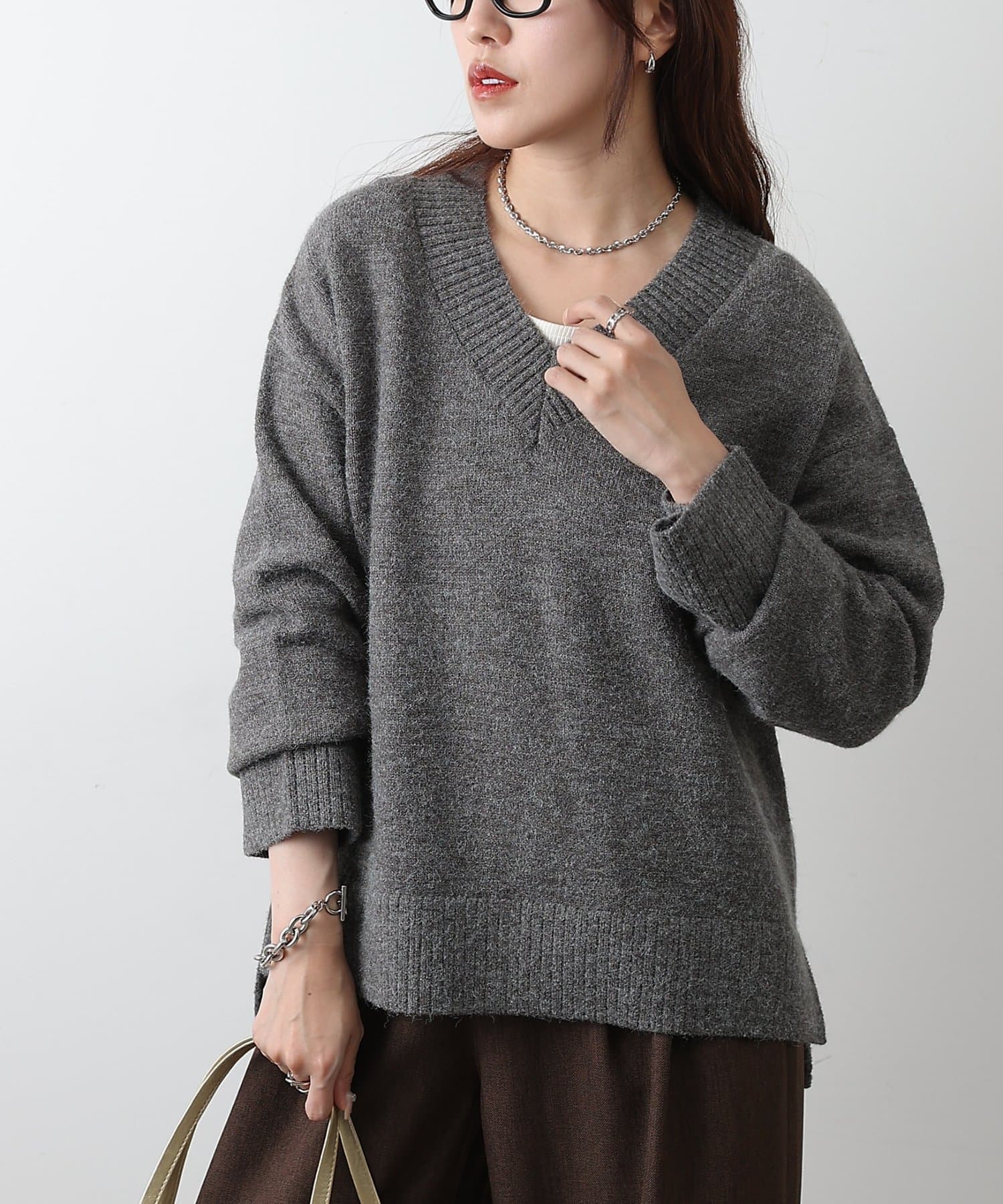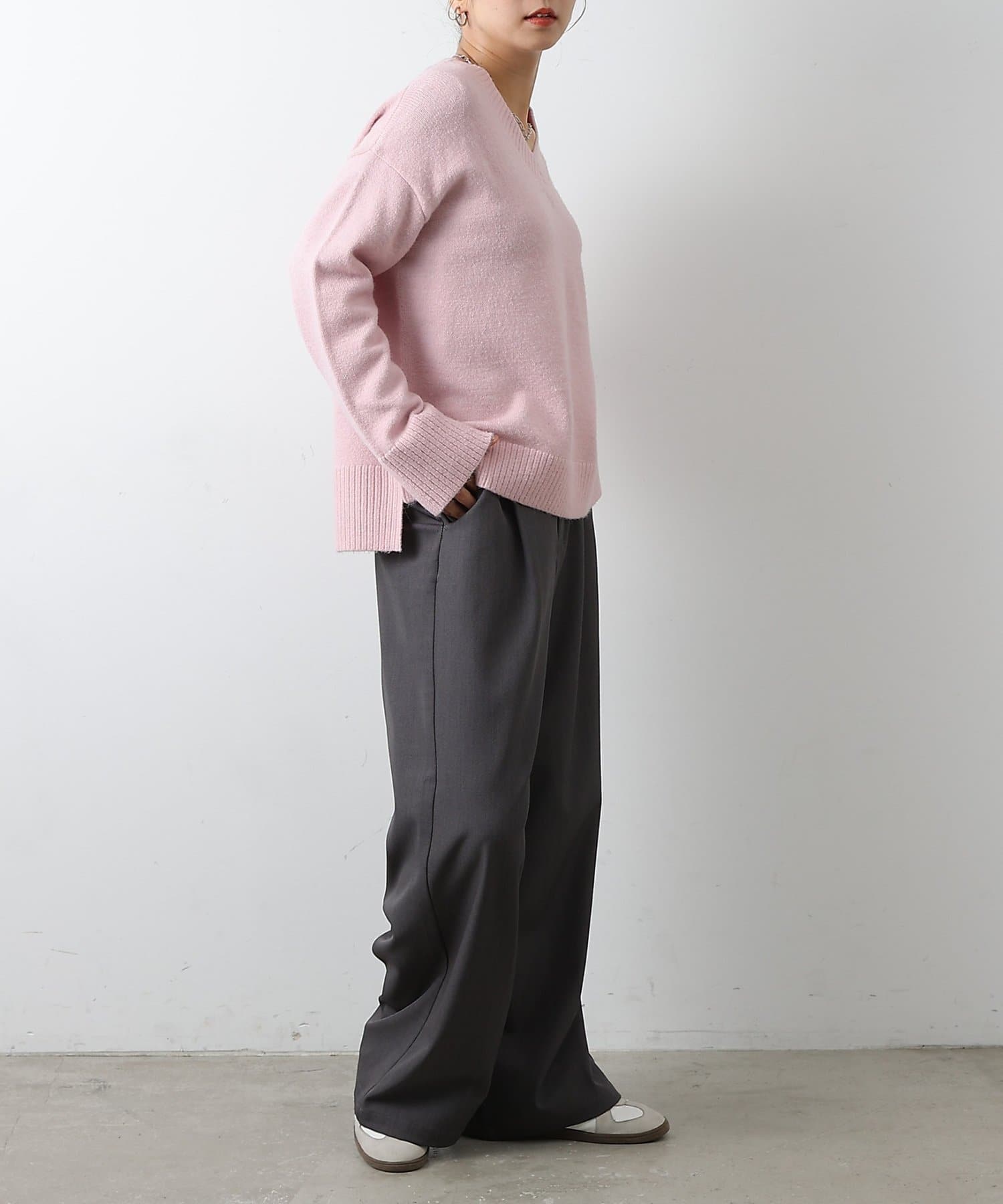 ゆったりとしたシルエットと柔らかい生地感が特徴のゆるふわV ネックニットです。