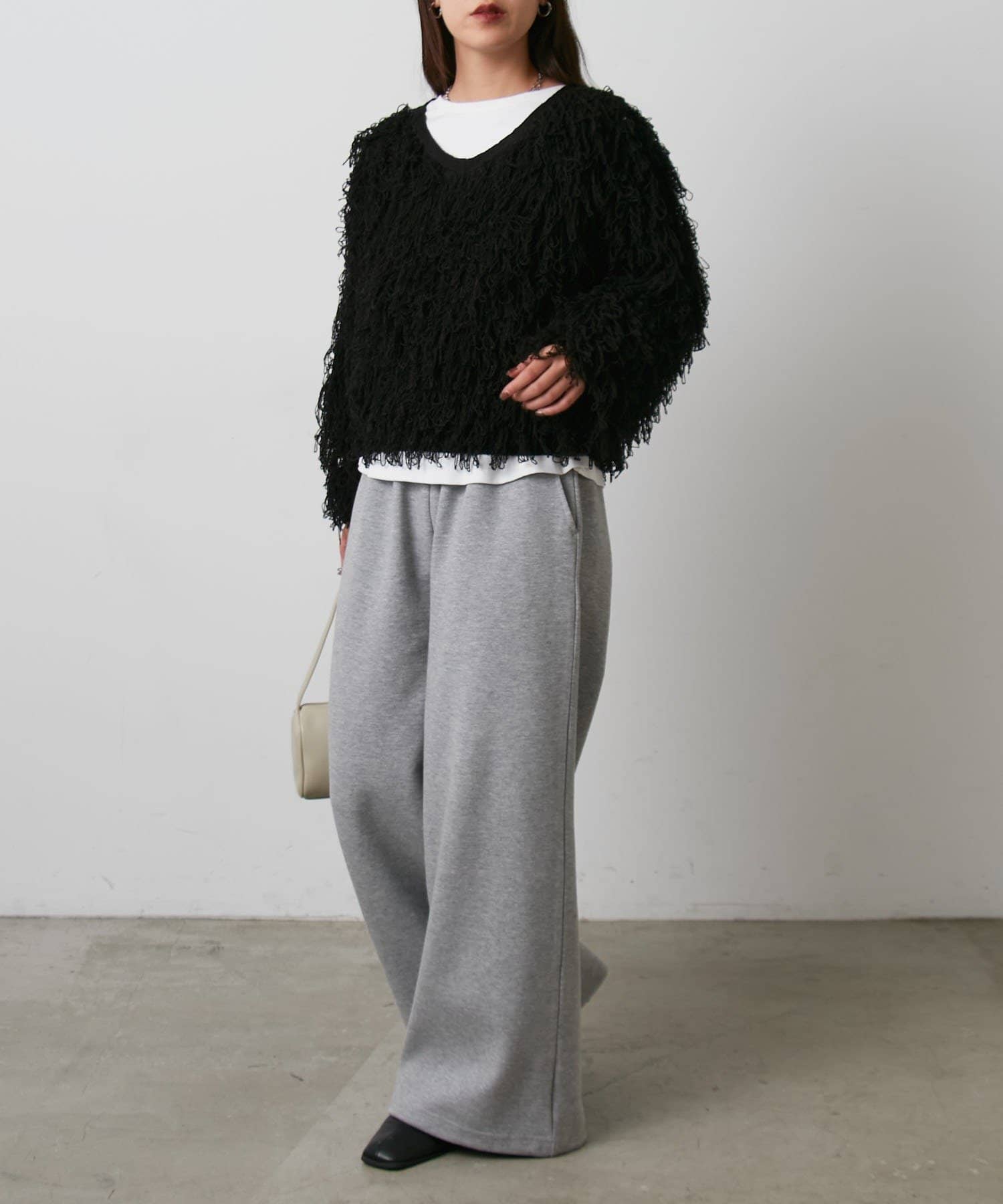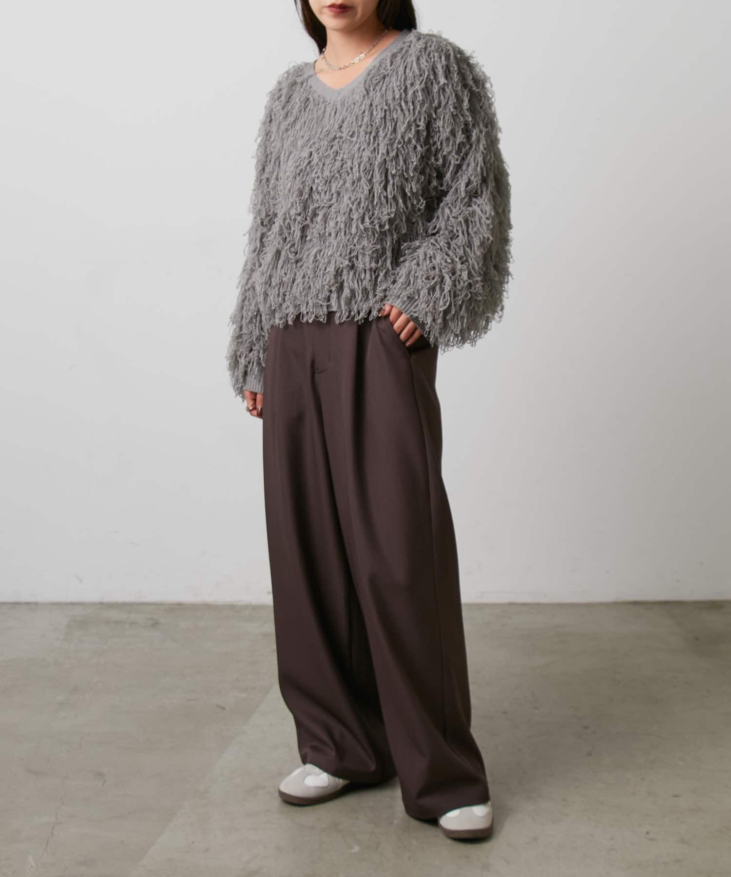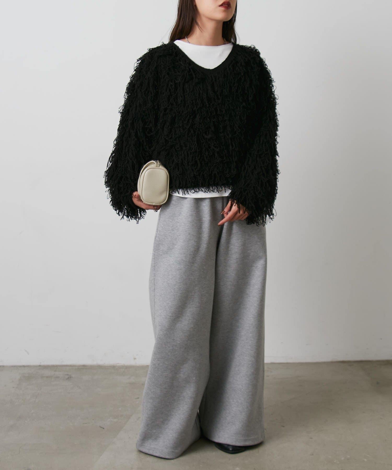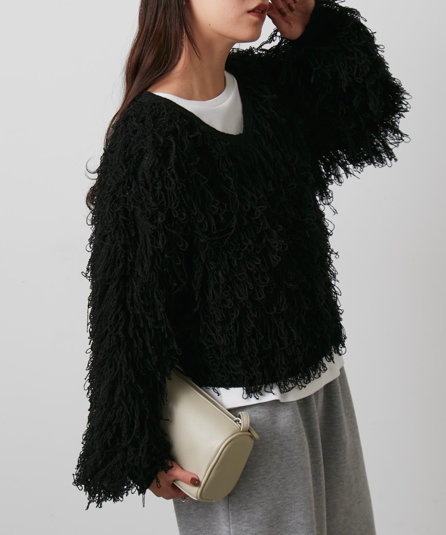立体感のあるループフリンジをたっぷりとあしらった、存在感抜群の2WAYニットです。