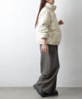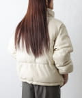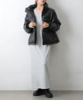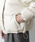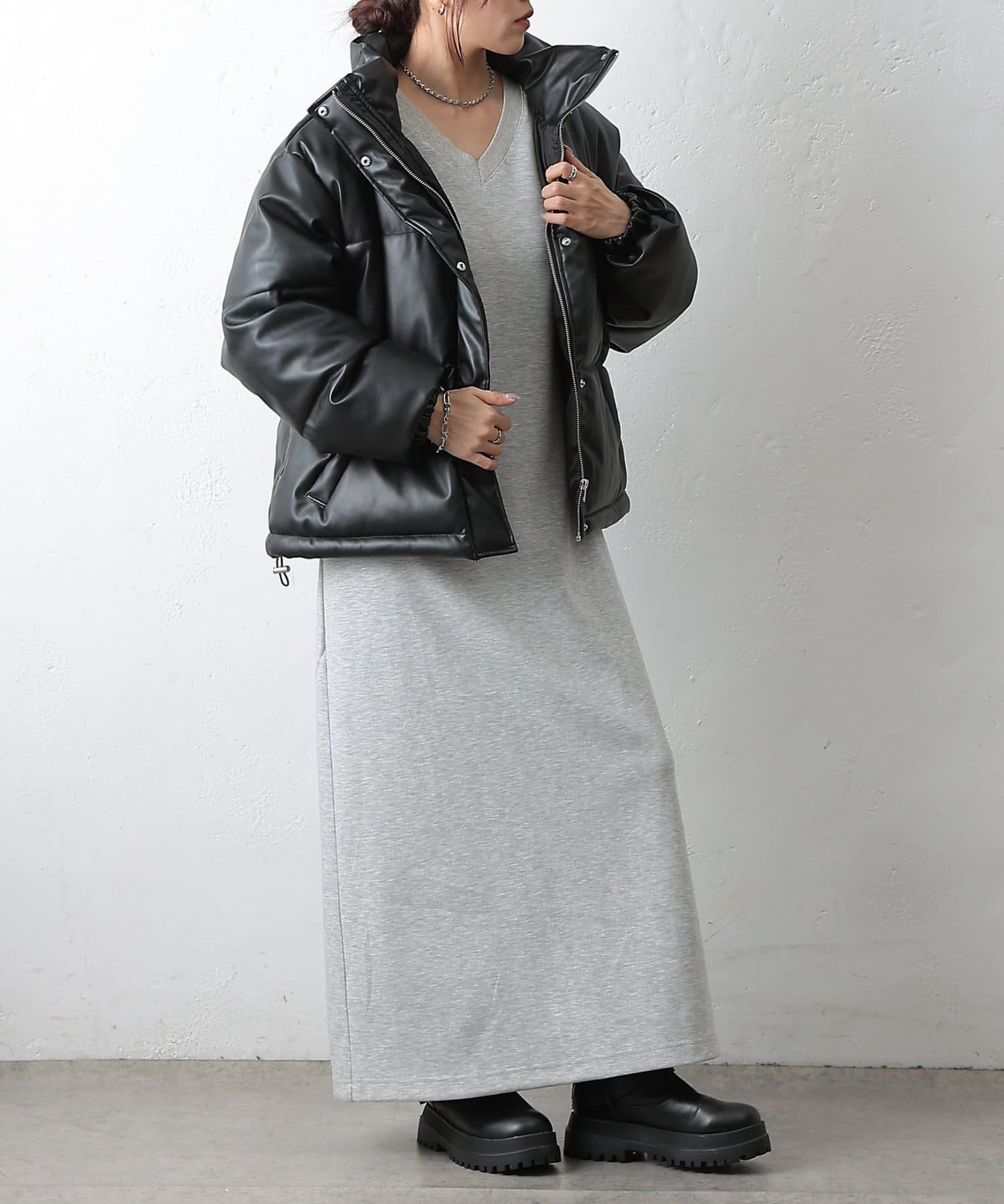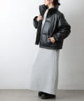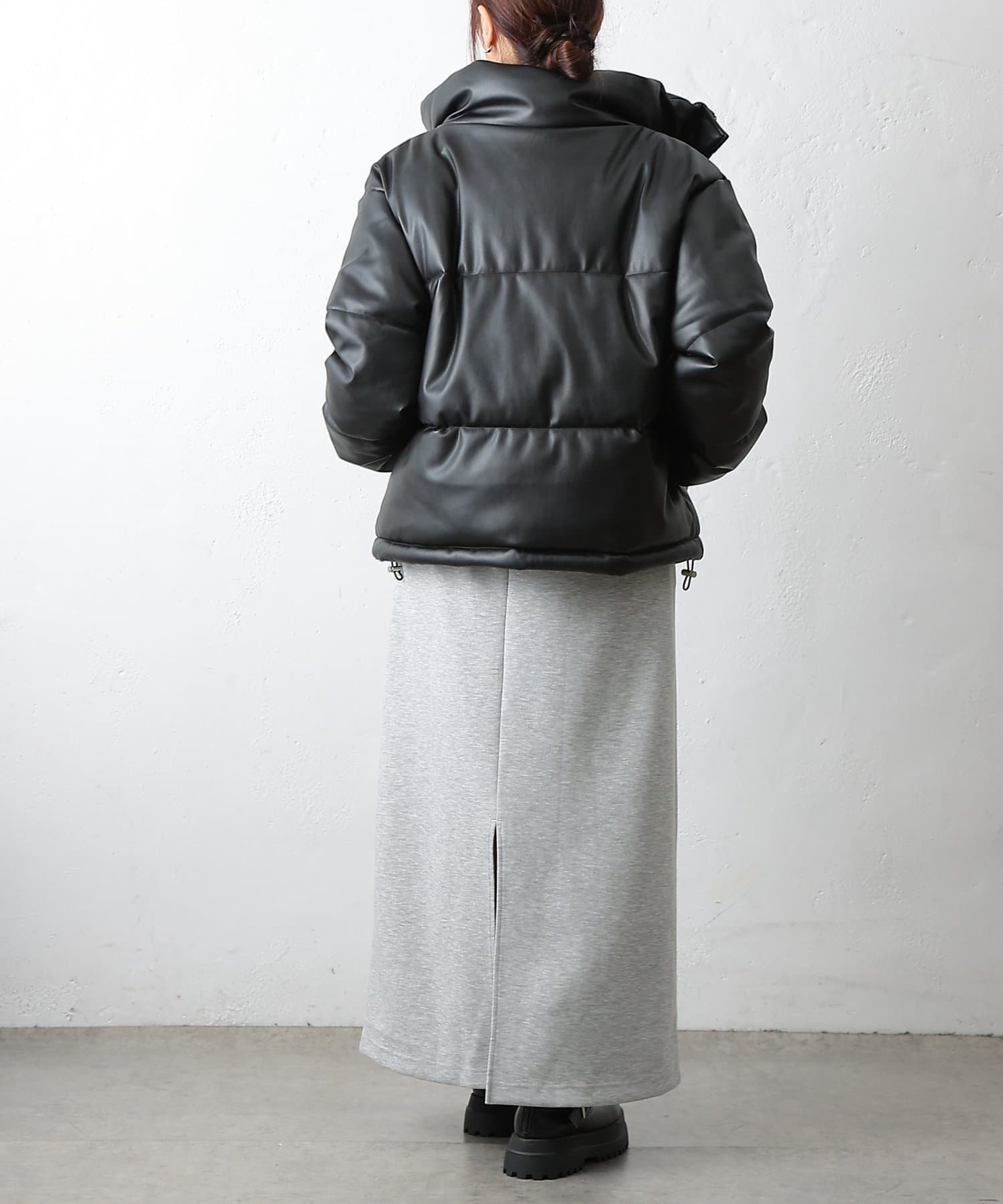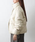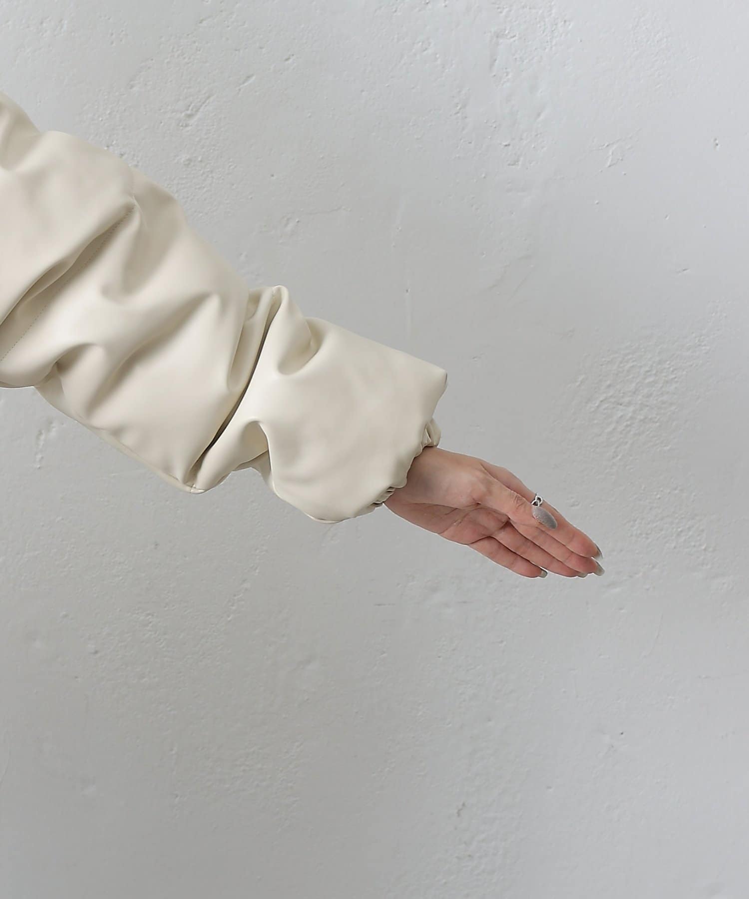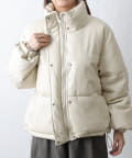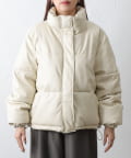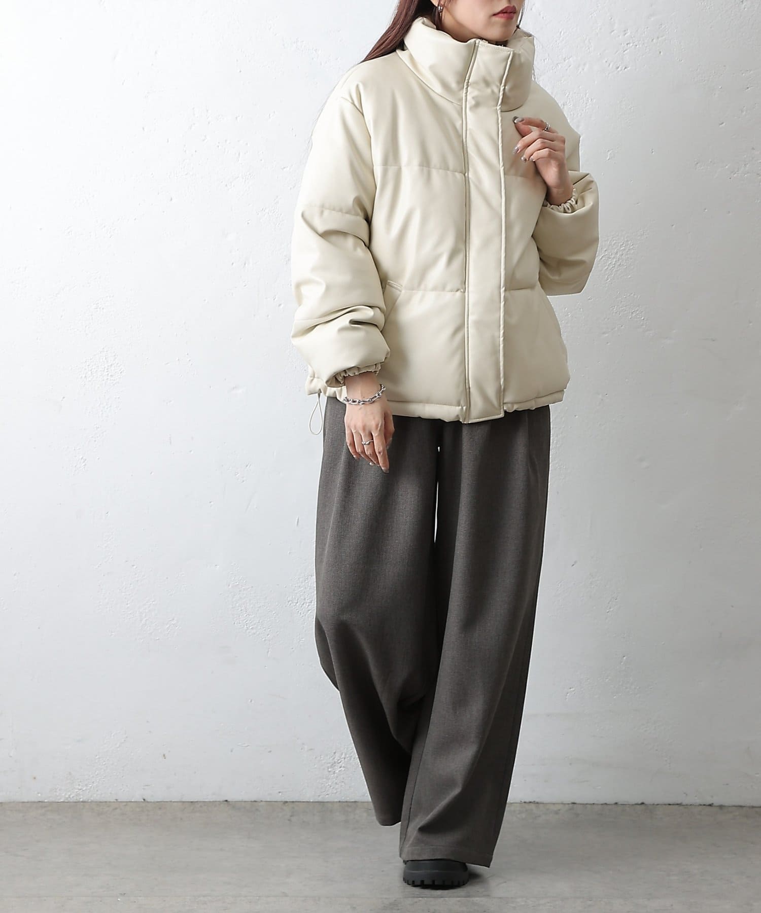 女性らしい柔らかな印象を残しつつ、クールで洗練された雰囲気をまとえるソフトレザーの中綿スタンドカラーブルゾンです。