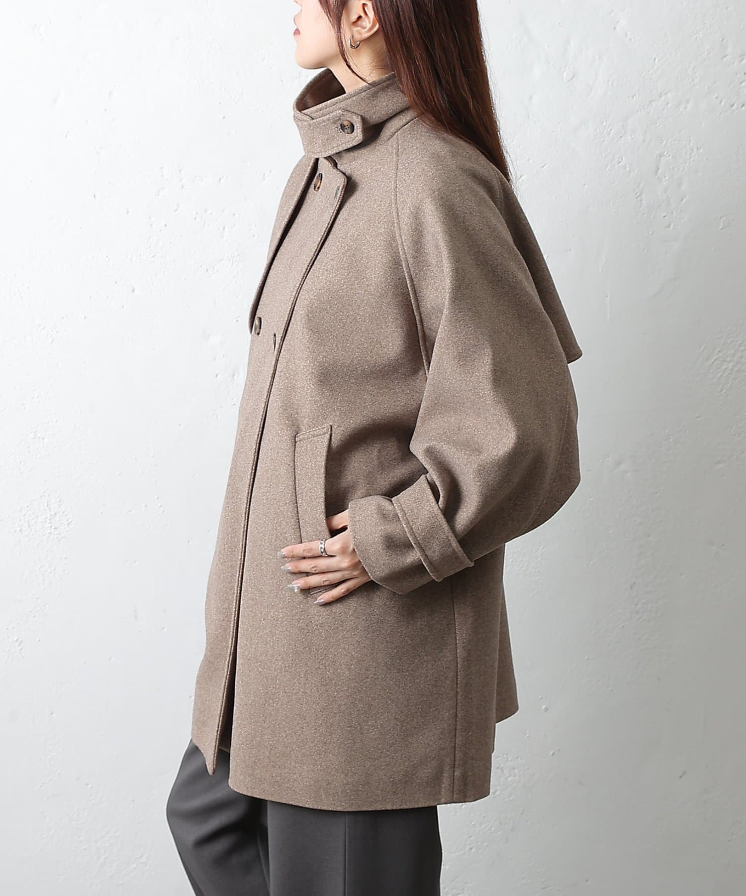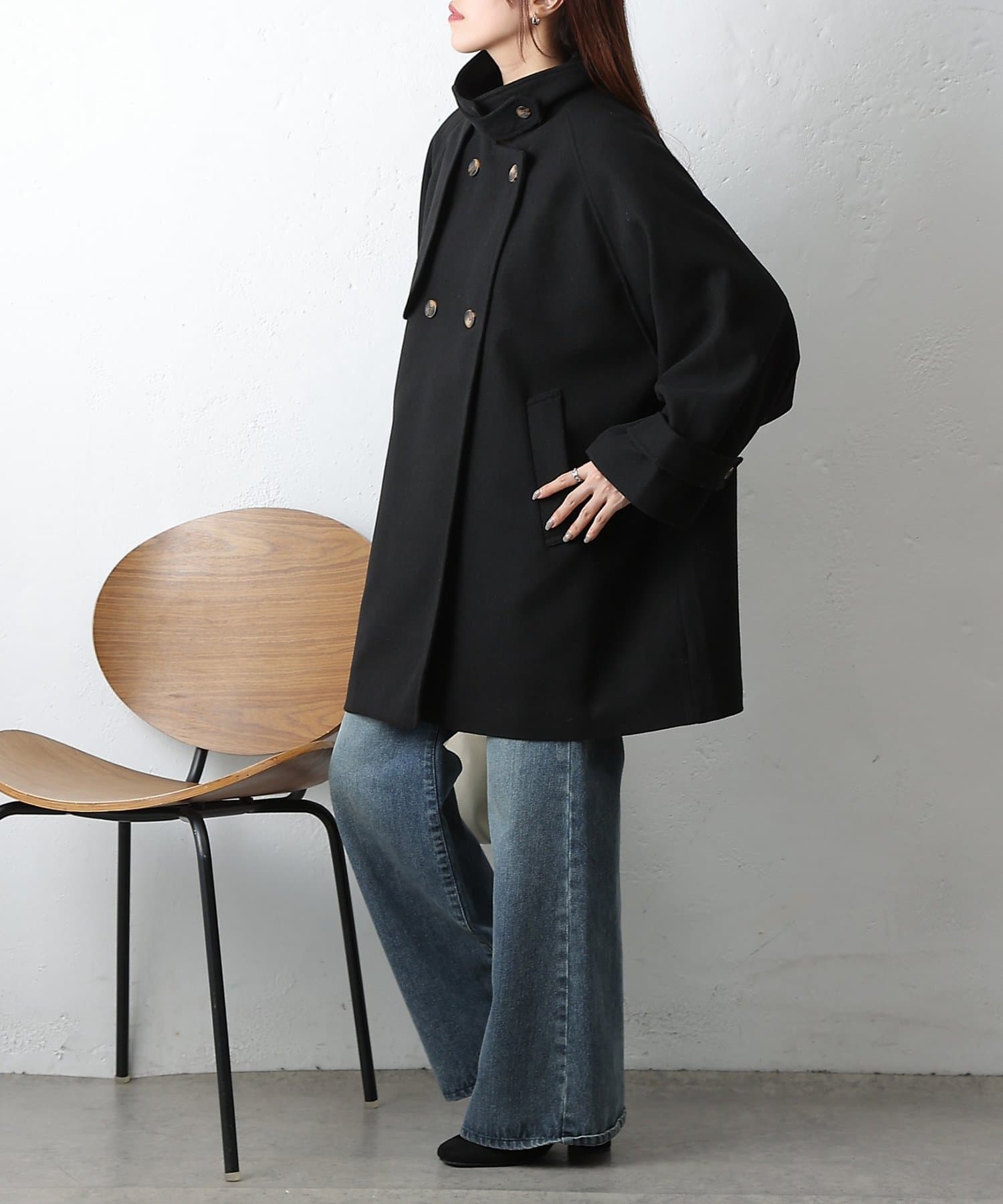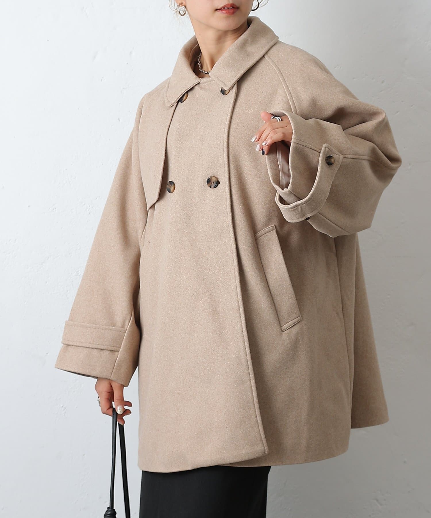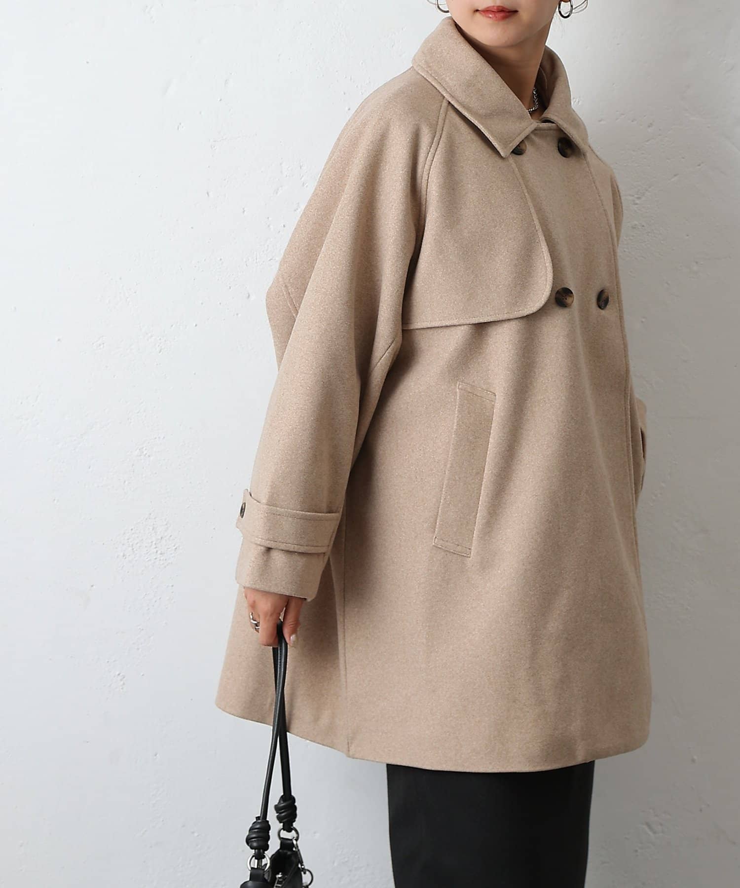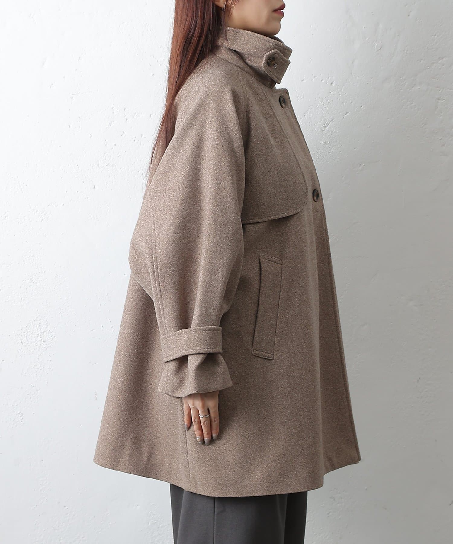 【優雅に広がるシルエット、ラグランスリーブフレアコート】