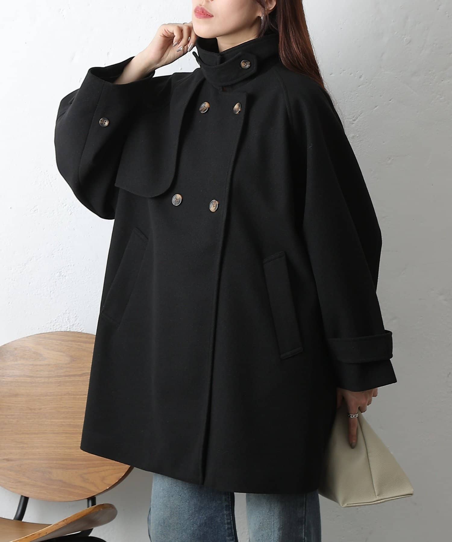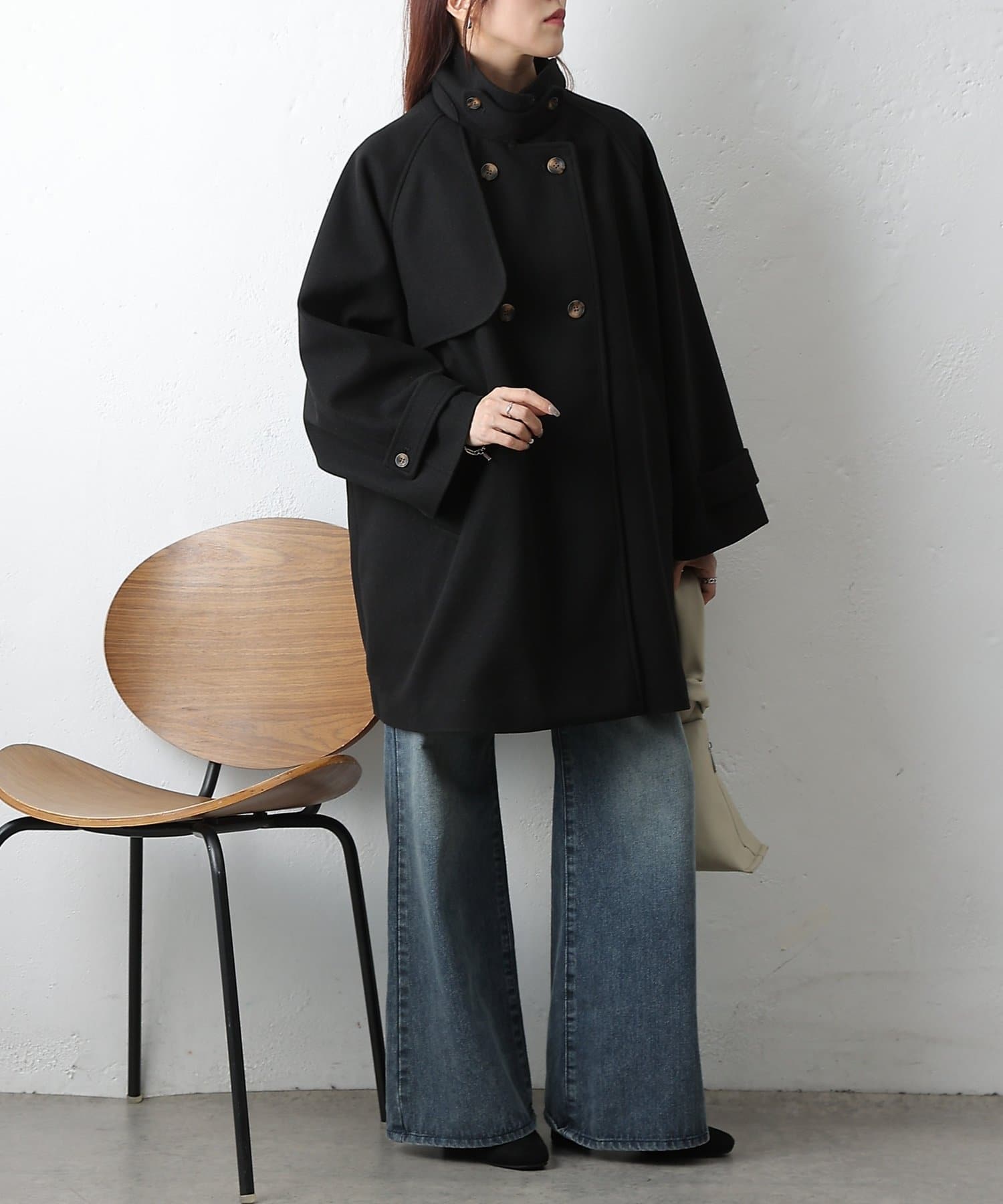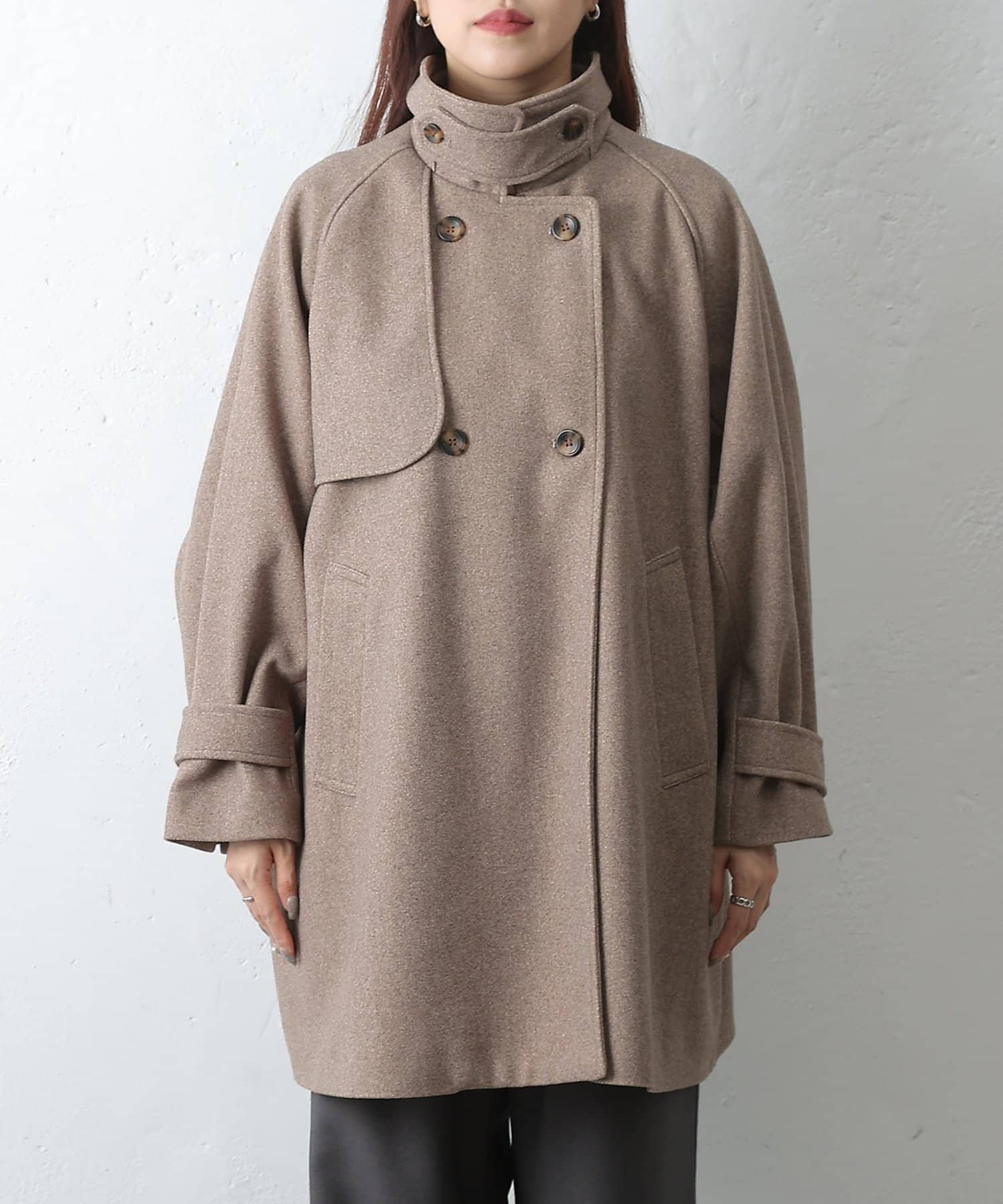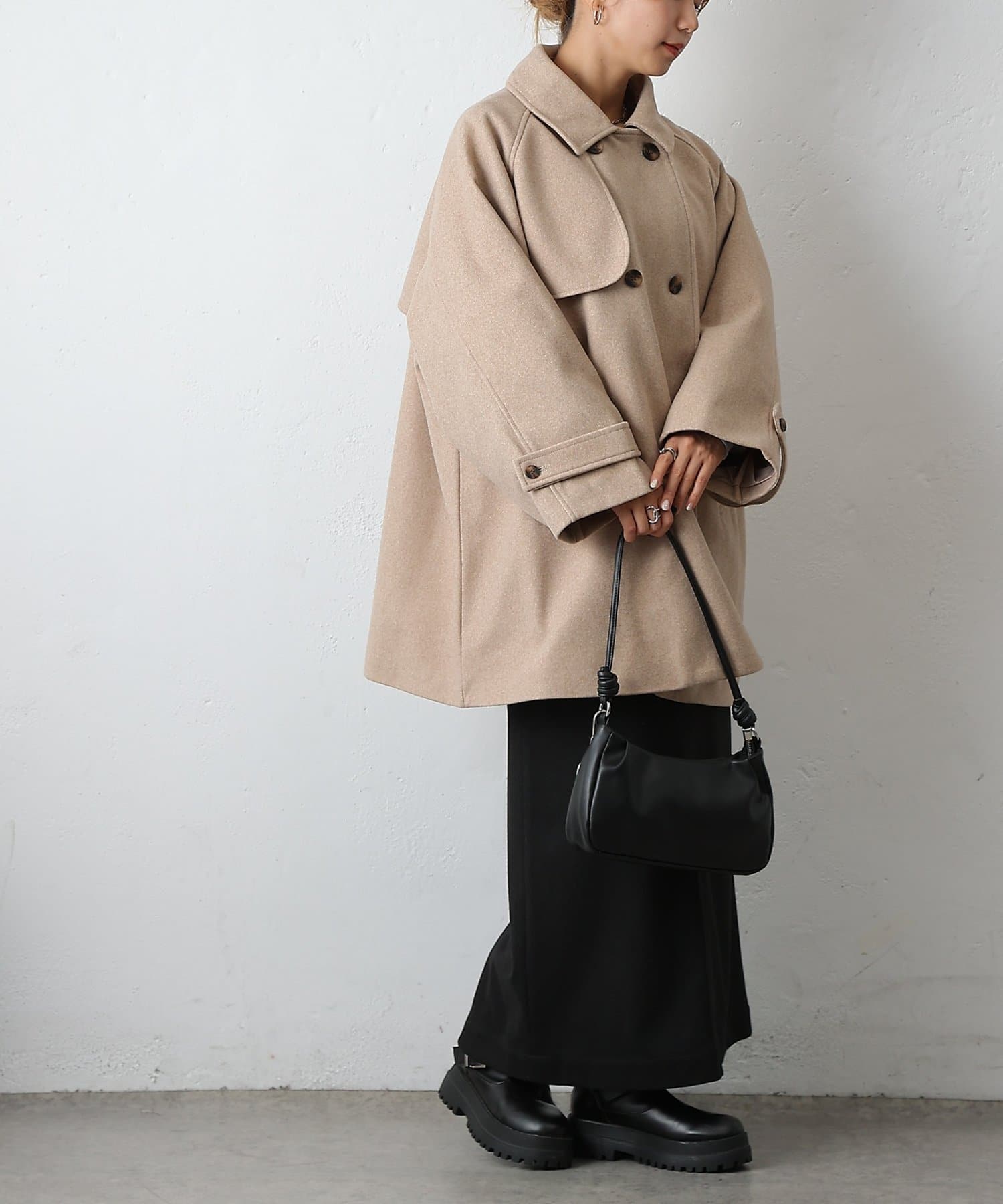 【優雅に広がるシルエット、ラグランスリーブフレアコート】