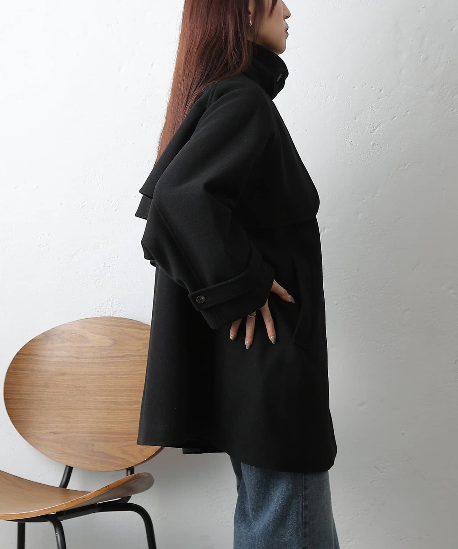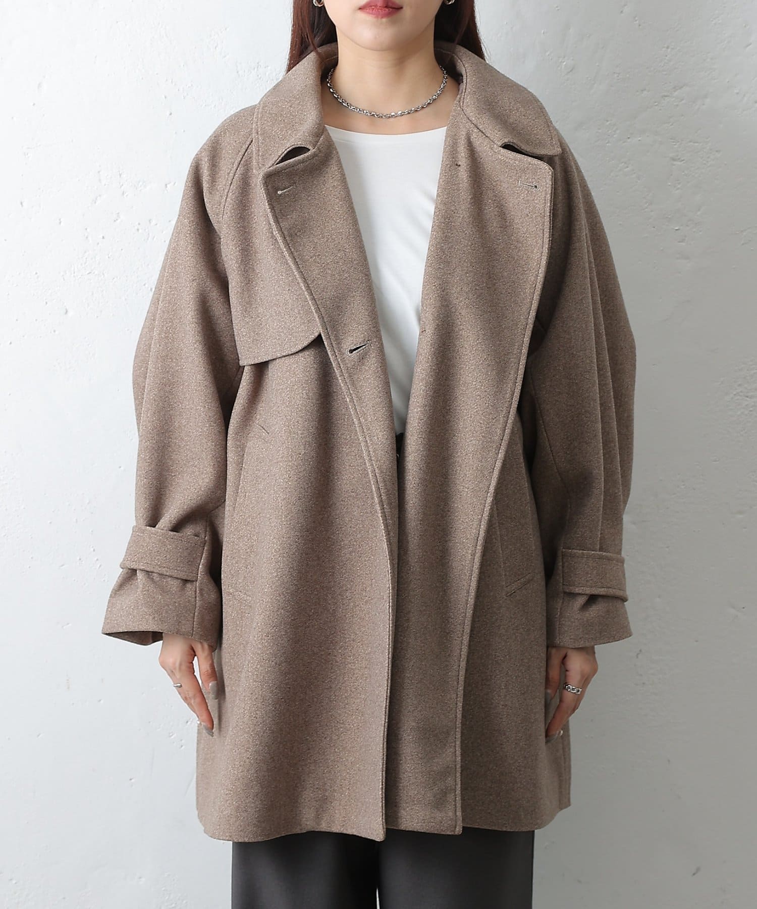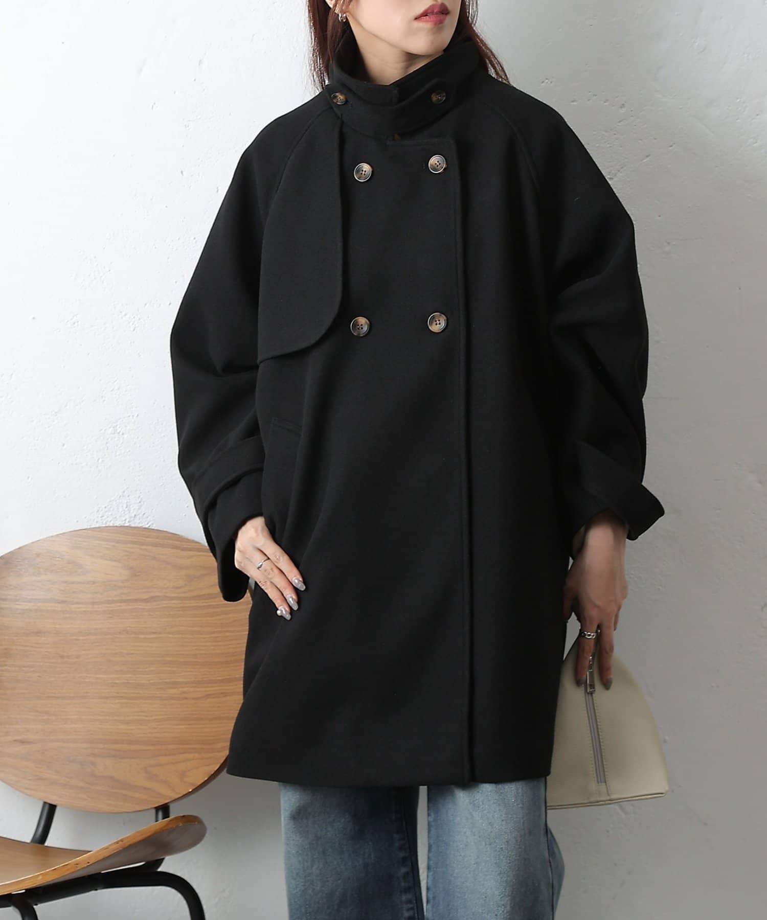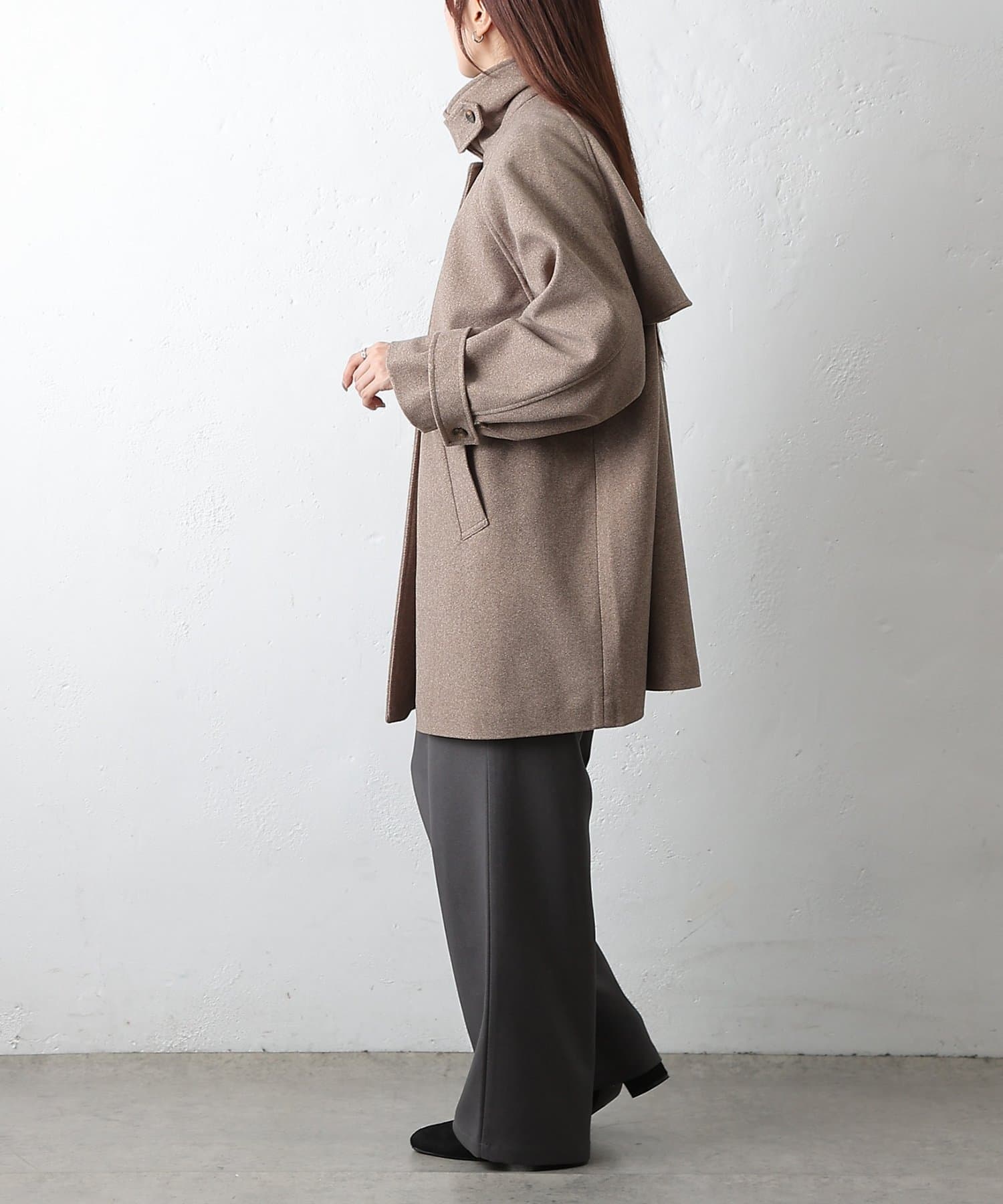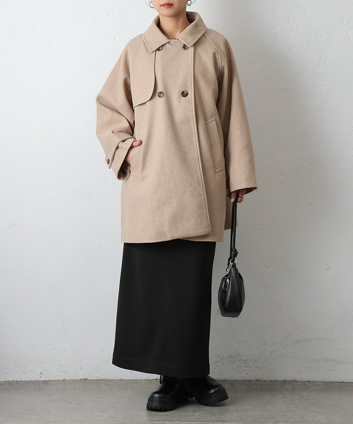 【優雅に広がるシルエット、ラグランスリーブフレアコート】
