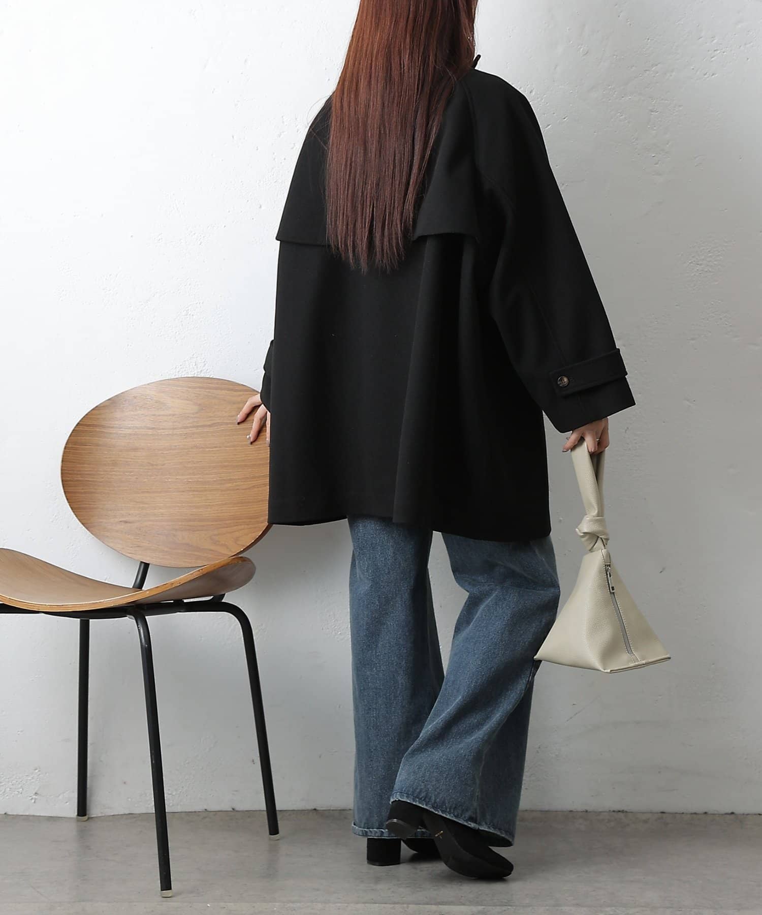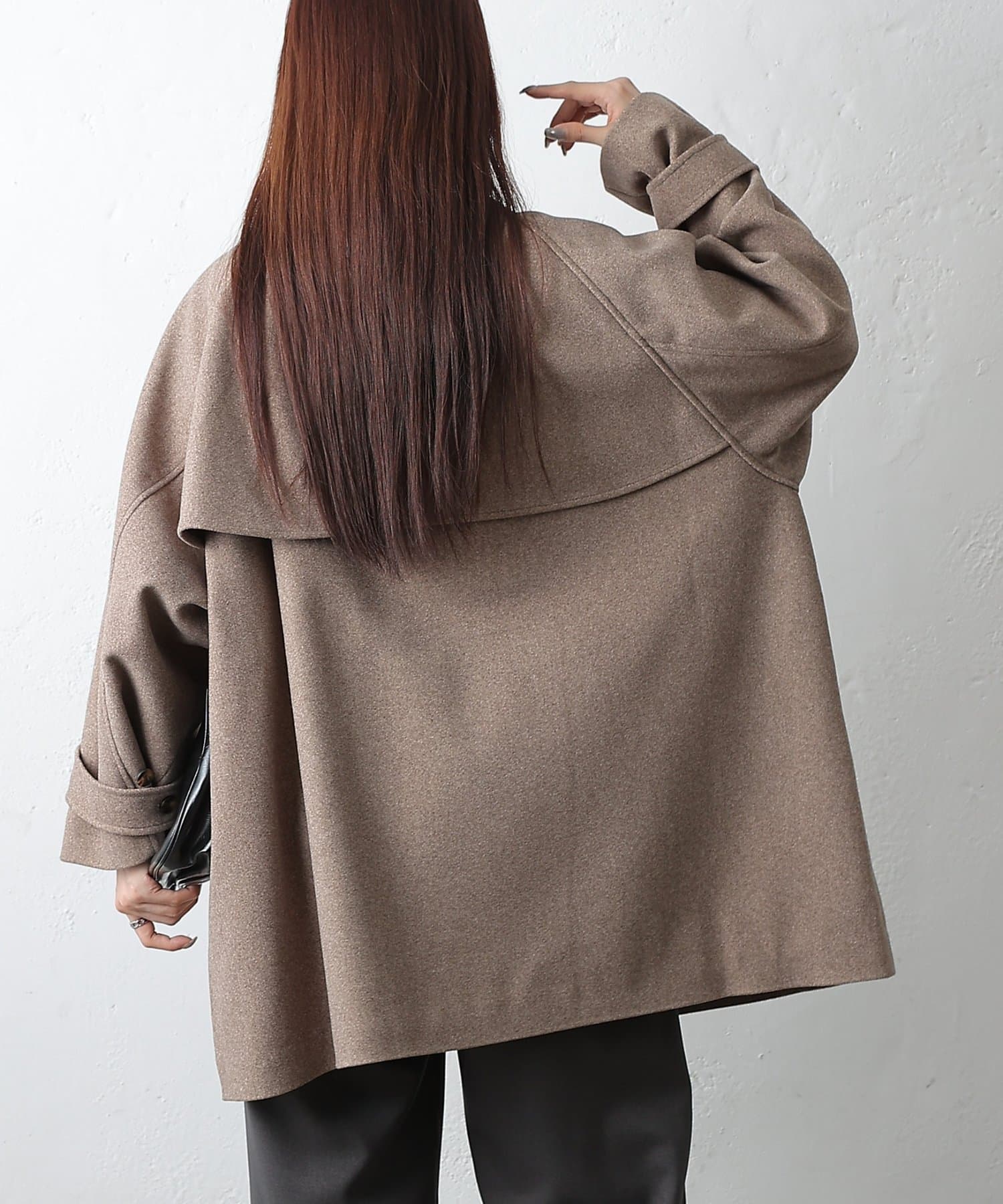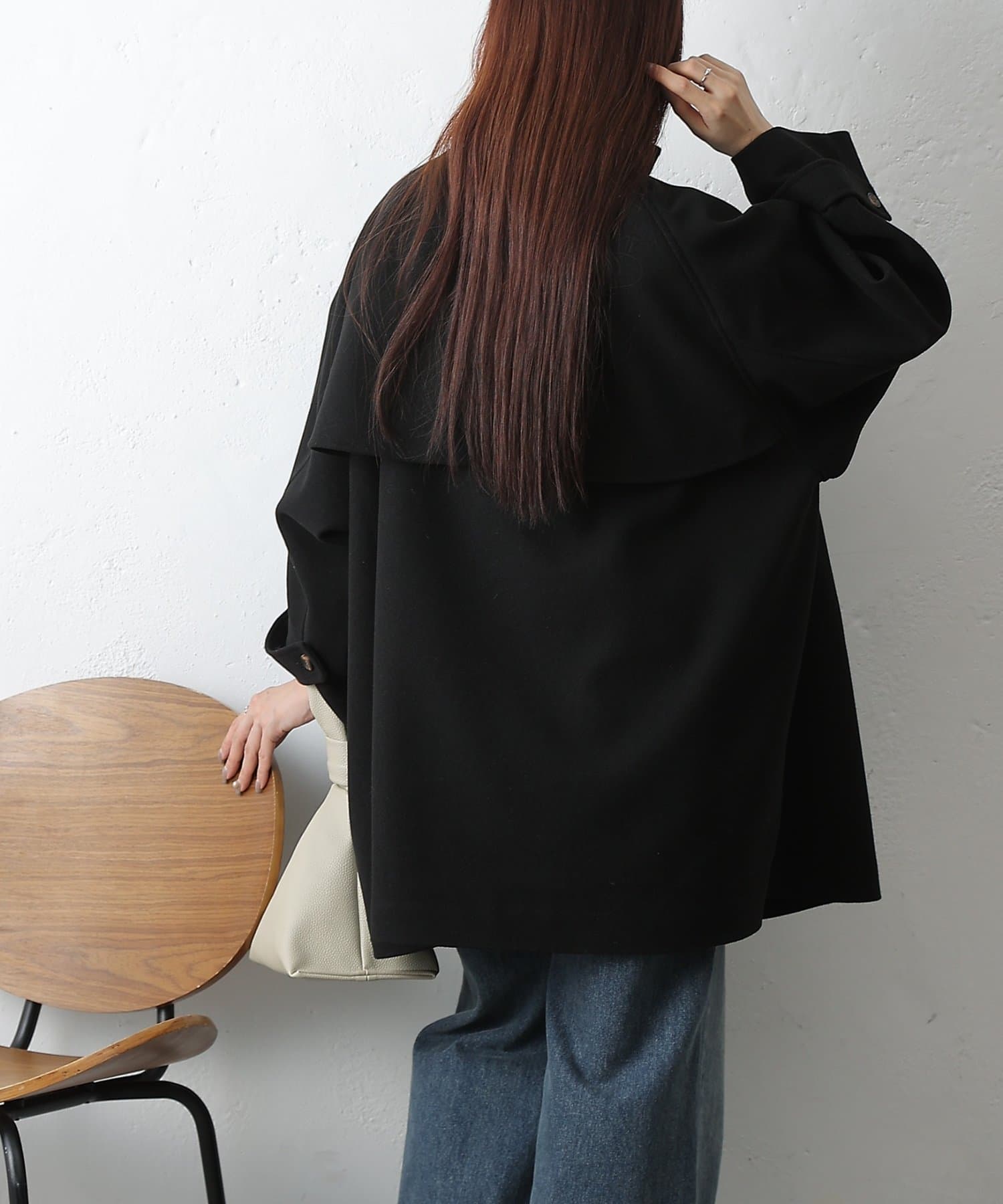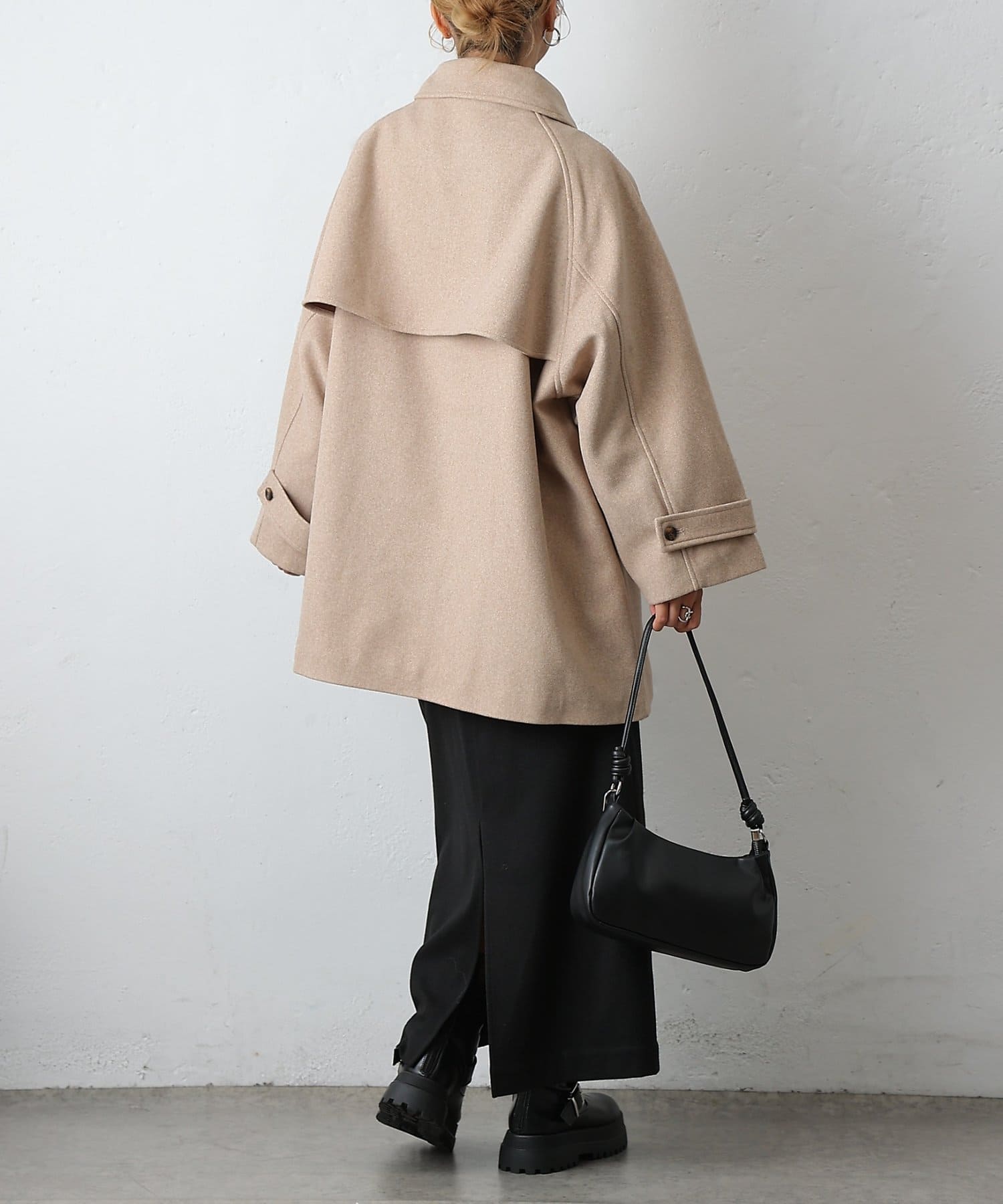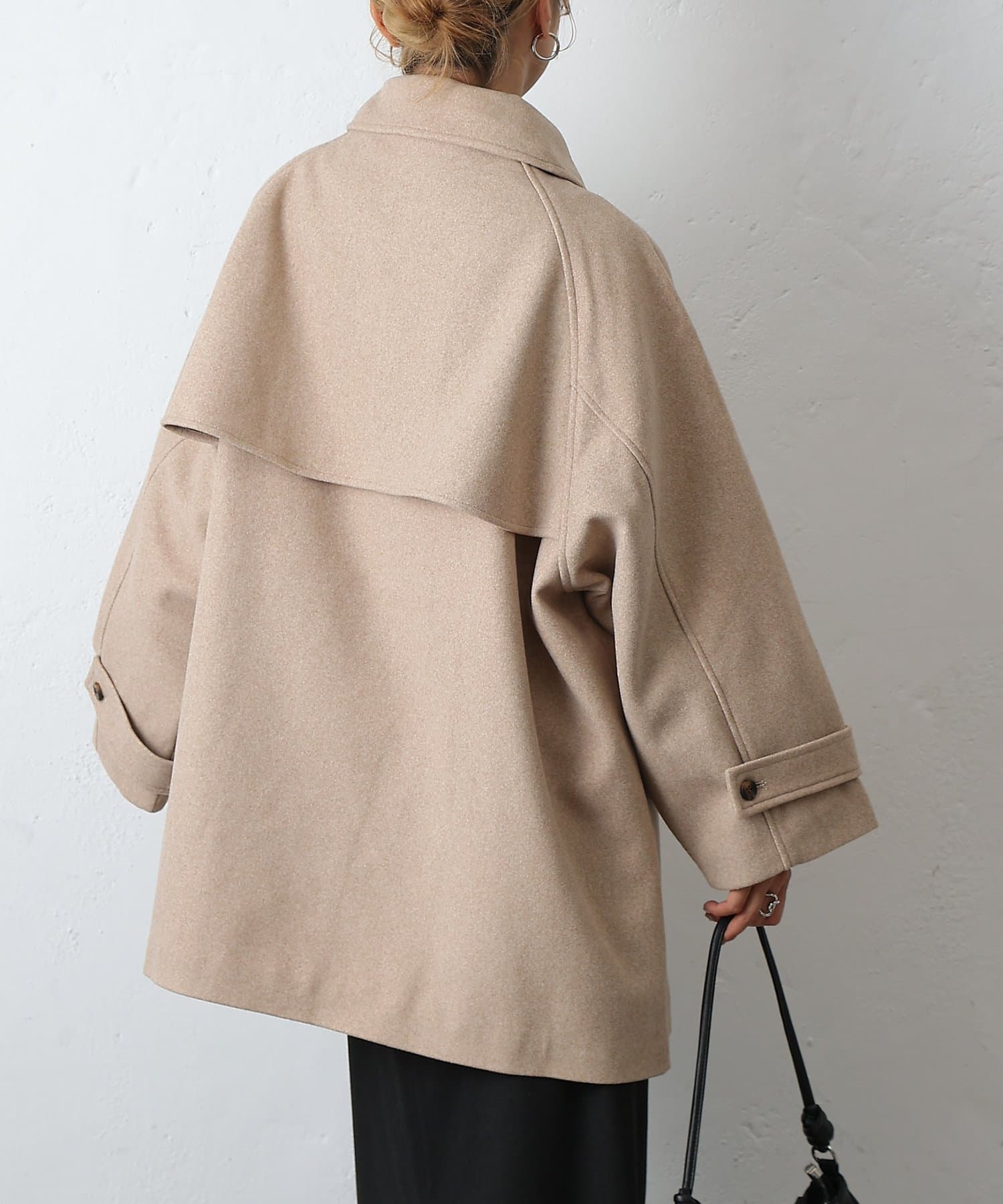 【優雅に広がるシルエット、ラグランスリーブフレアコート】
