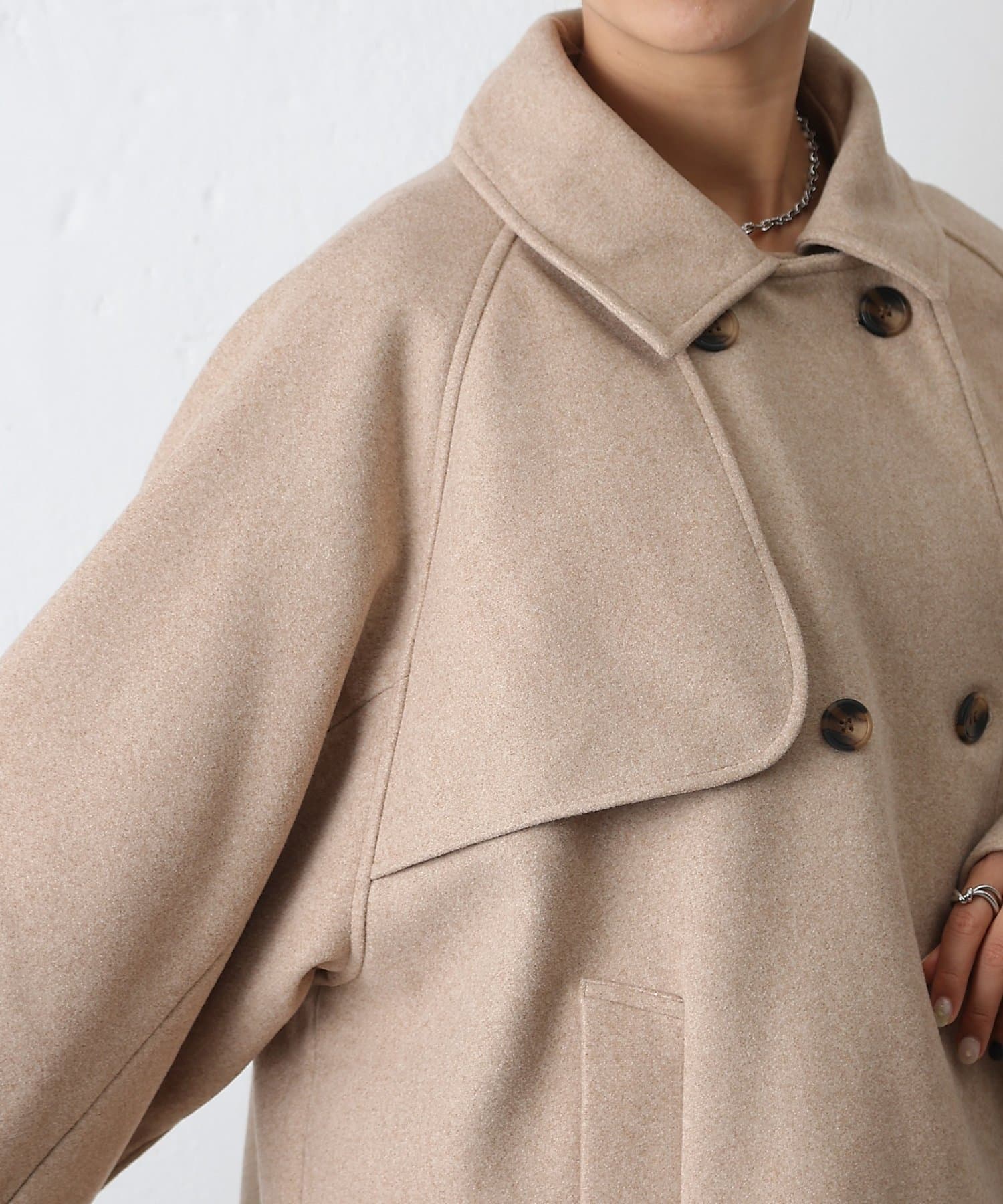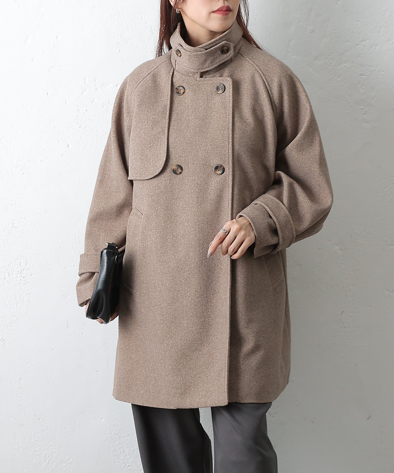 動きやすさと女性らしいシルエットを両立したラグランスリーブフレアコートです。