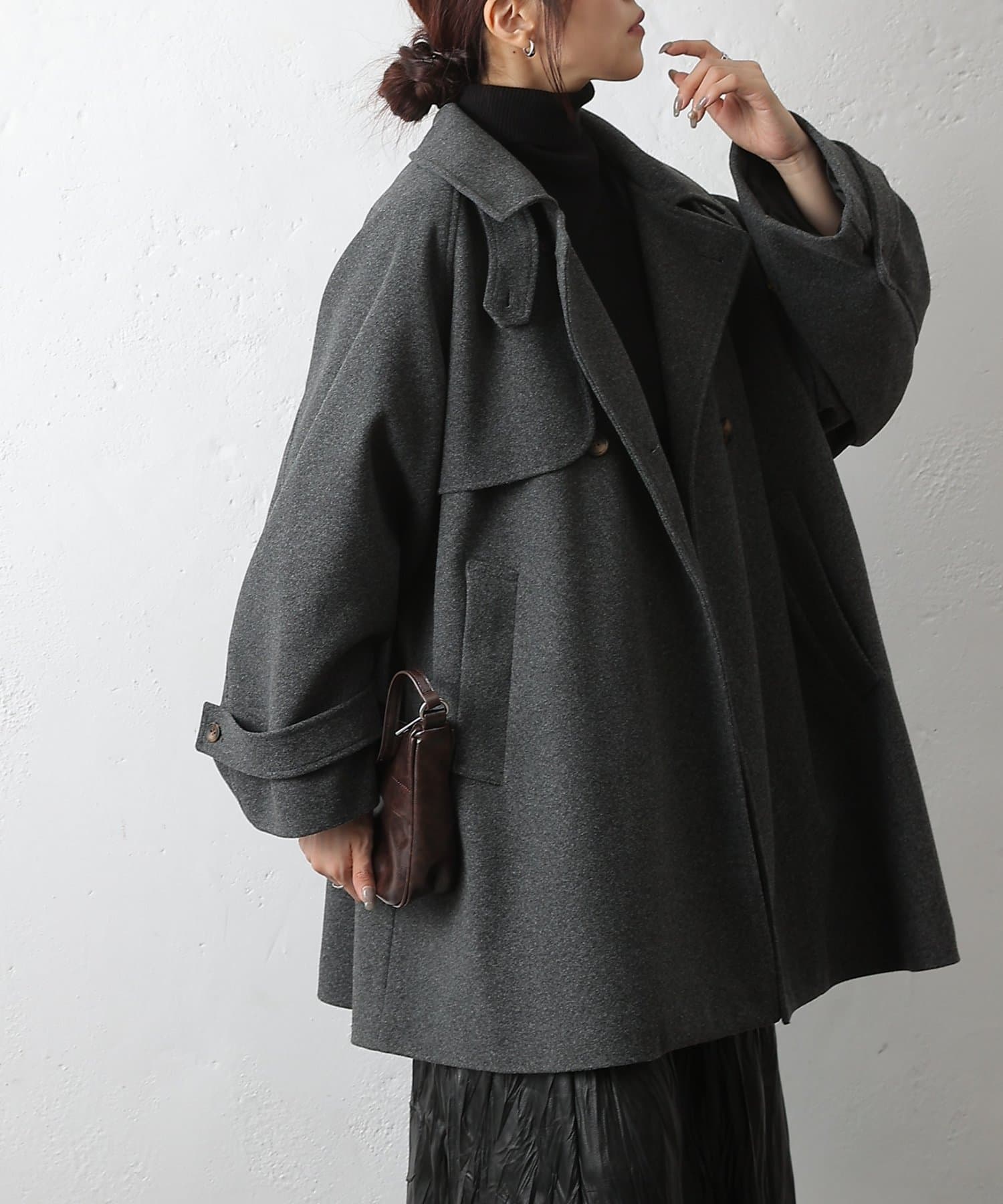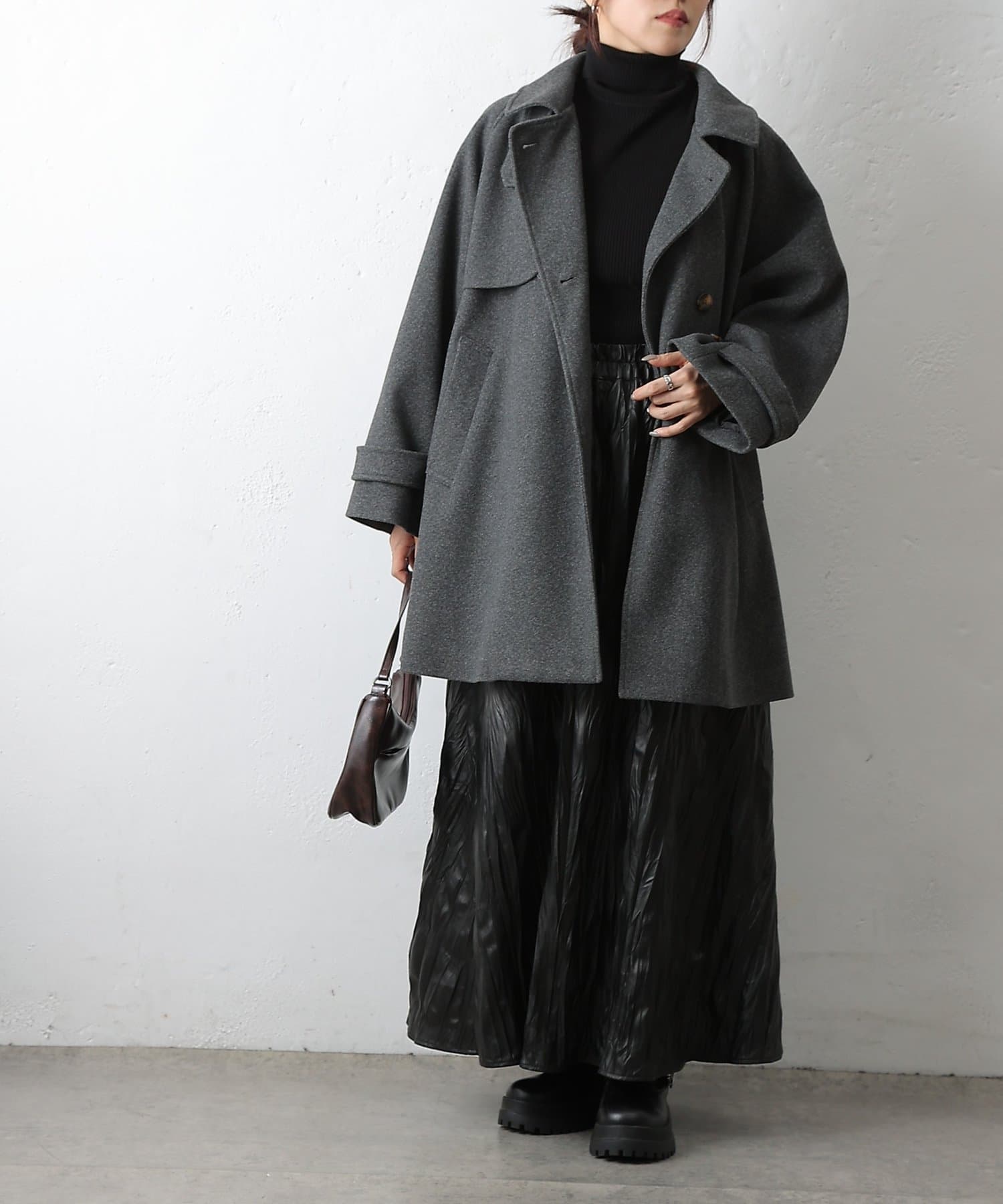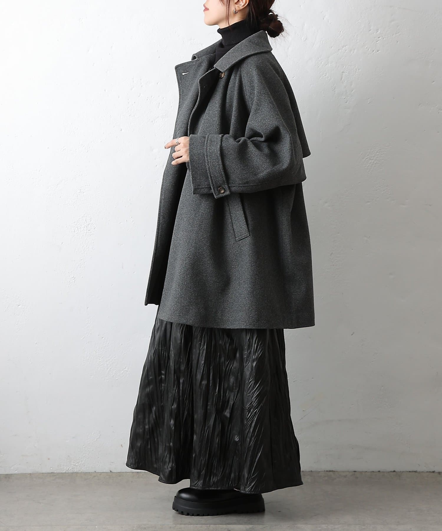 柔らかな素材感と絶妙な丈感で季節の変わり目にぴったりな一着です。