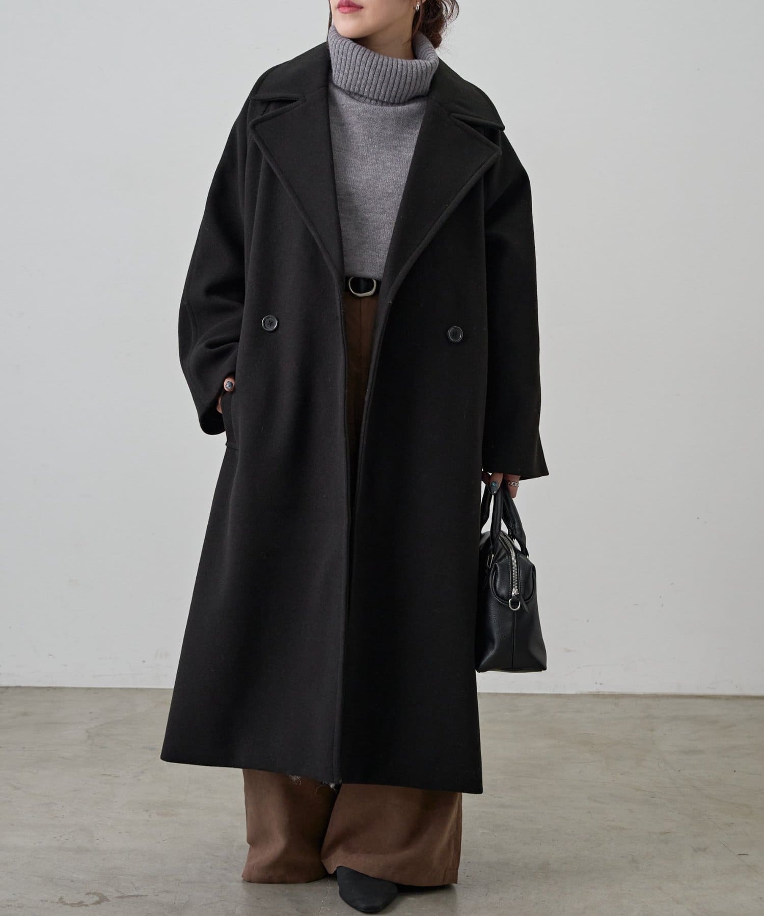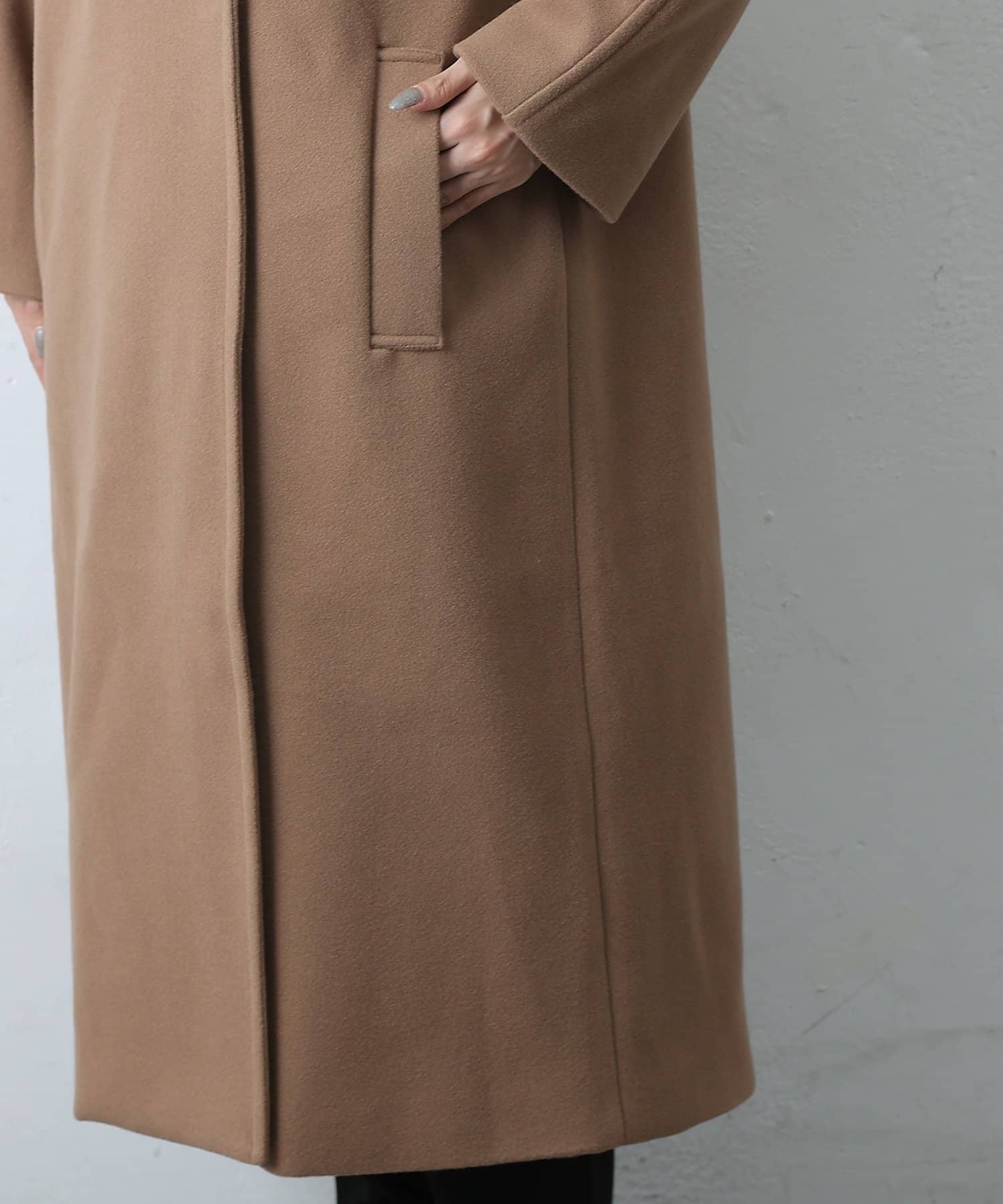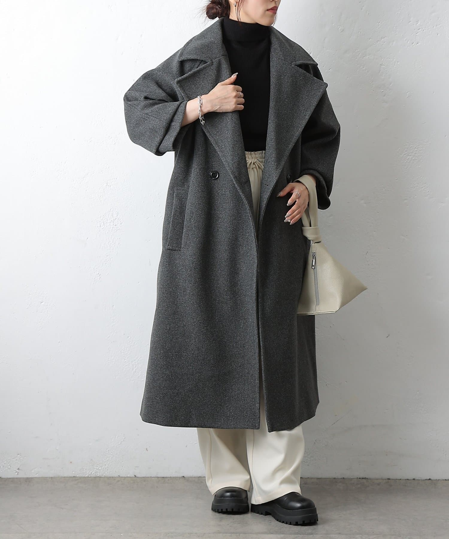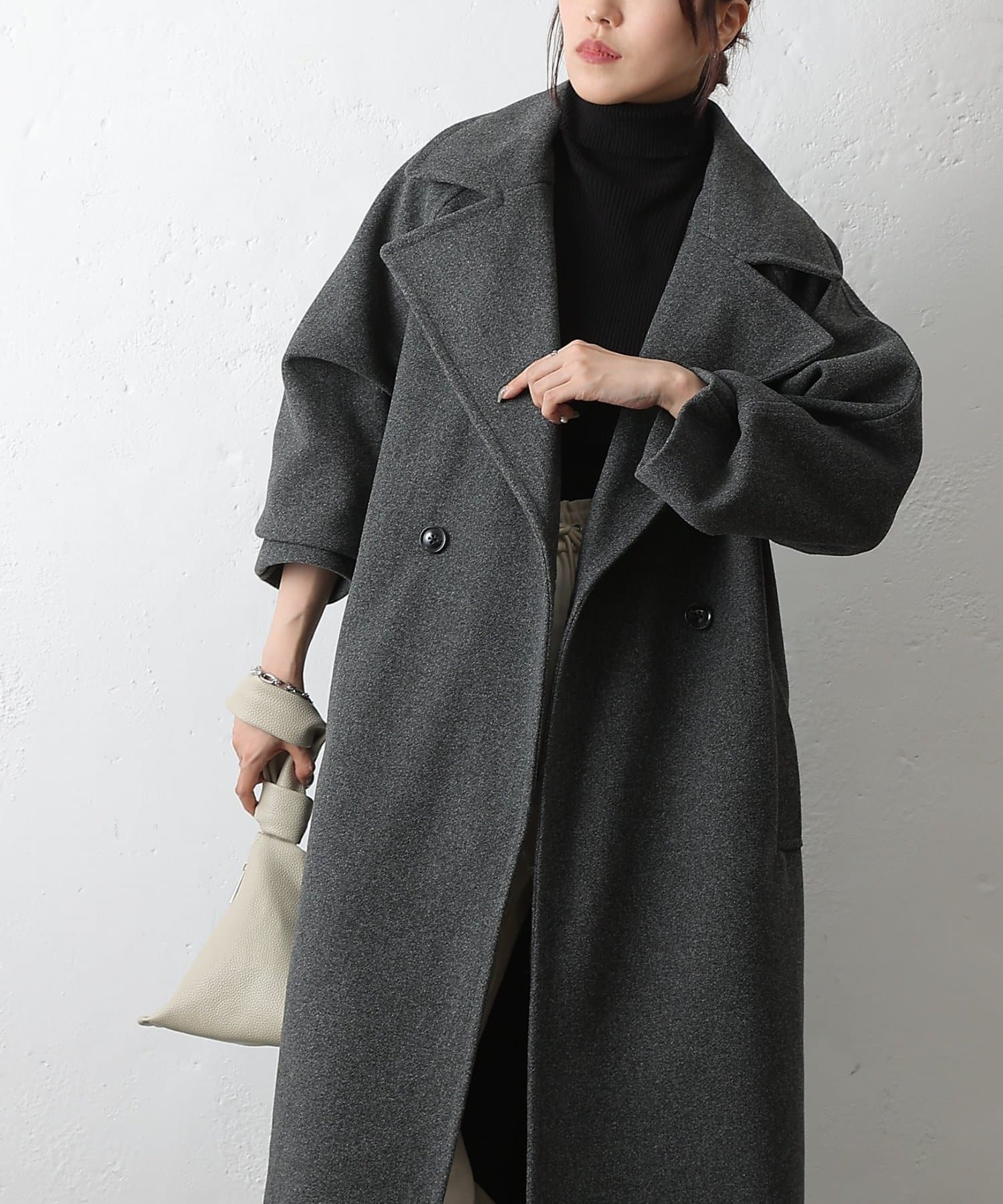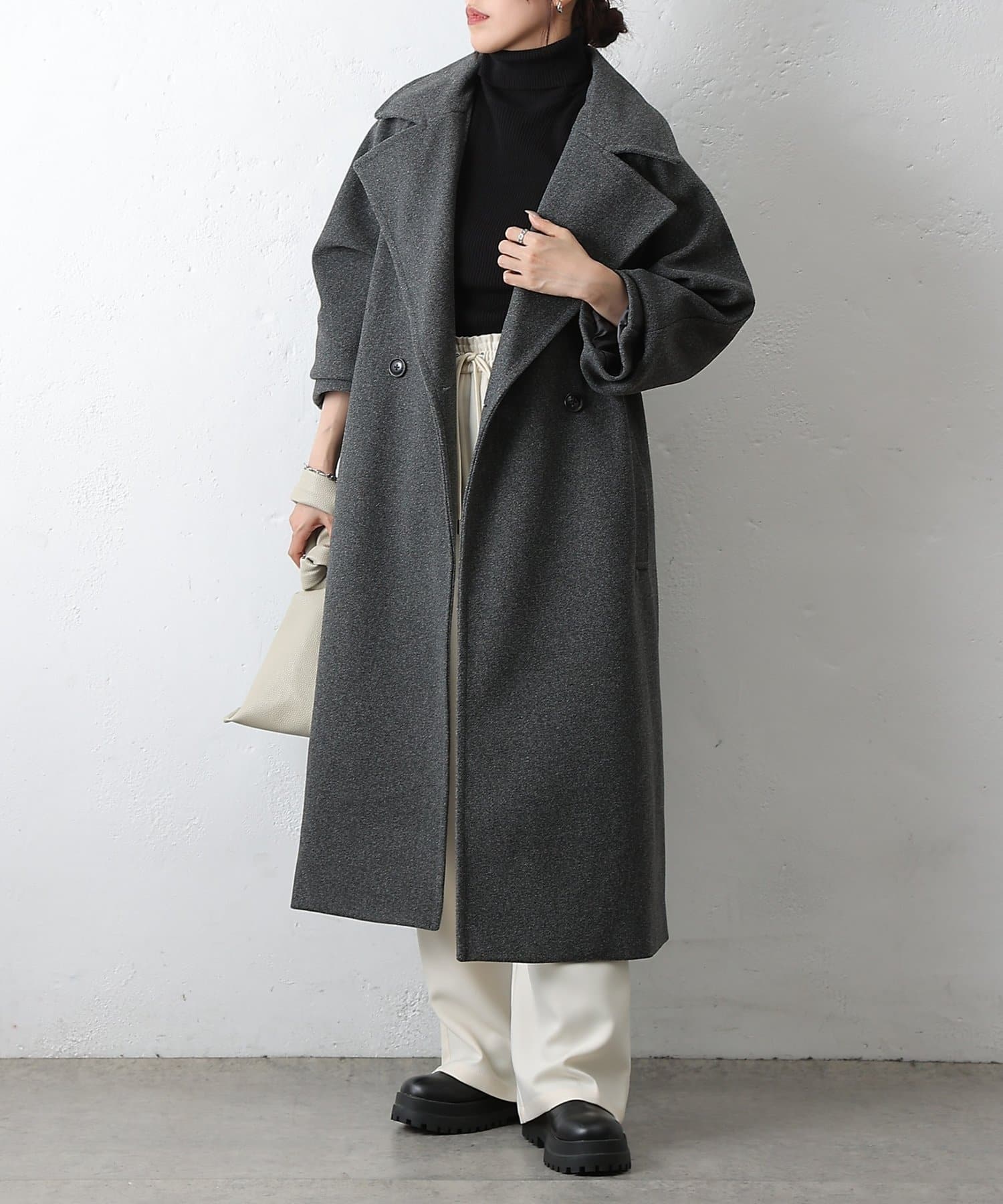 デニムやスラックス、スカートなど様々なアイテムと相性が良く、着回ししやすいチェスターコートです。