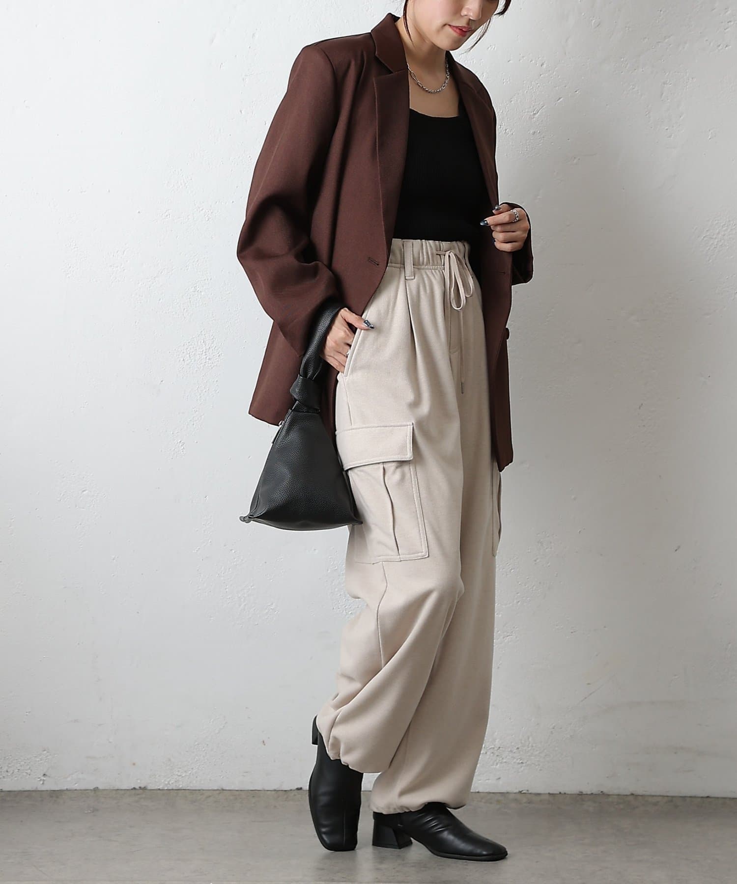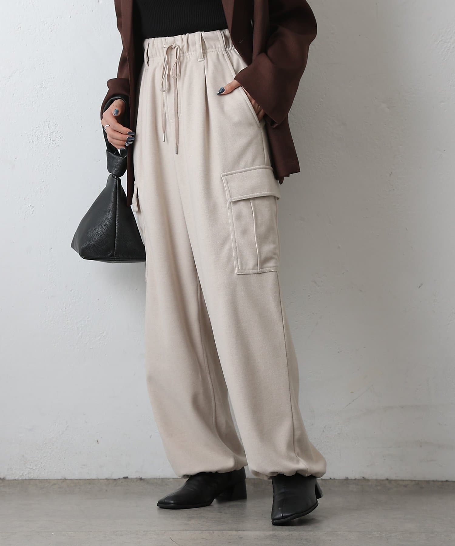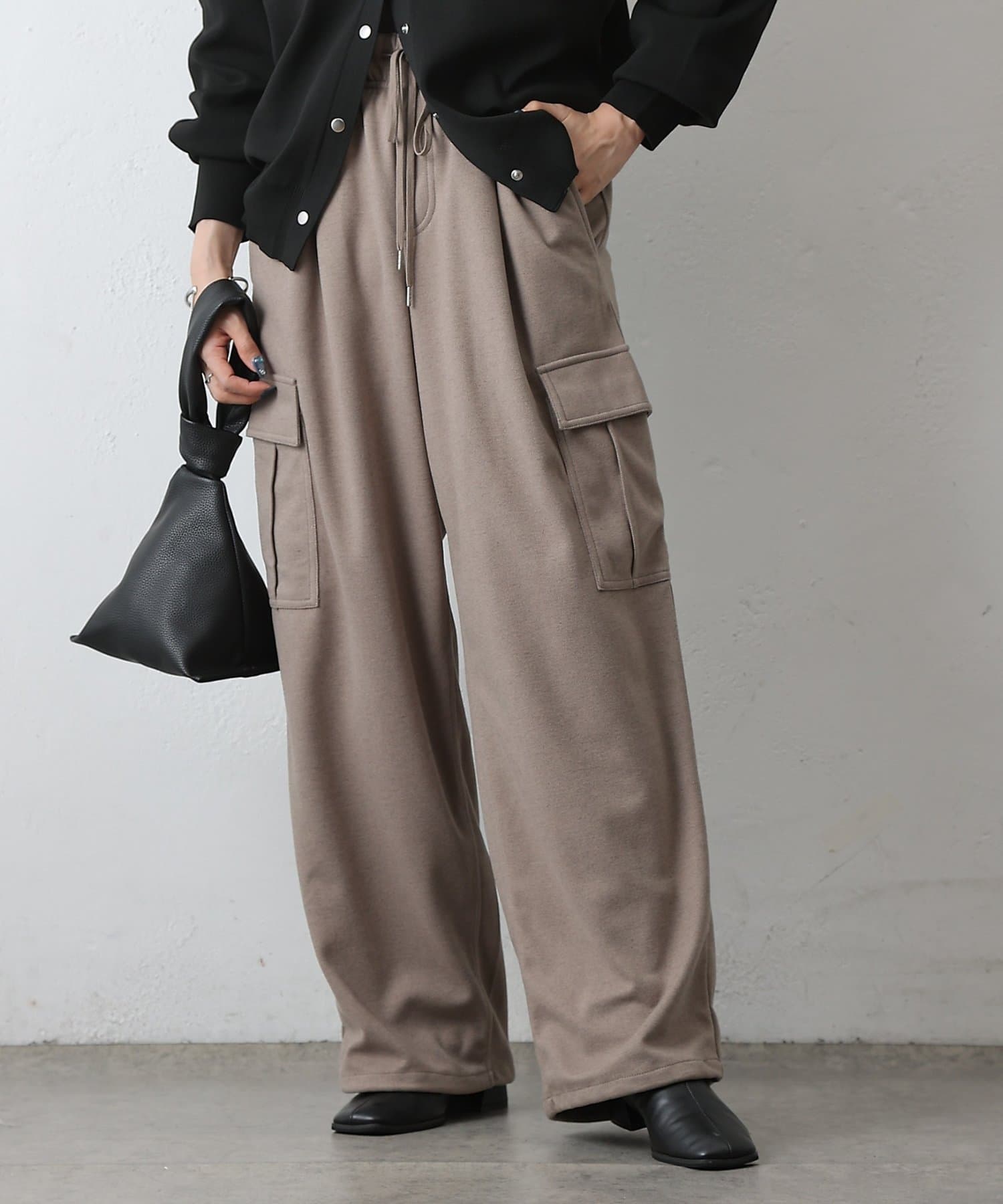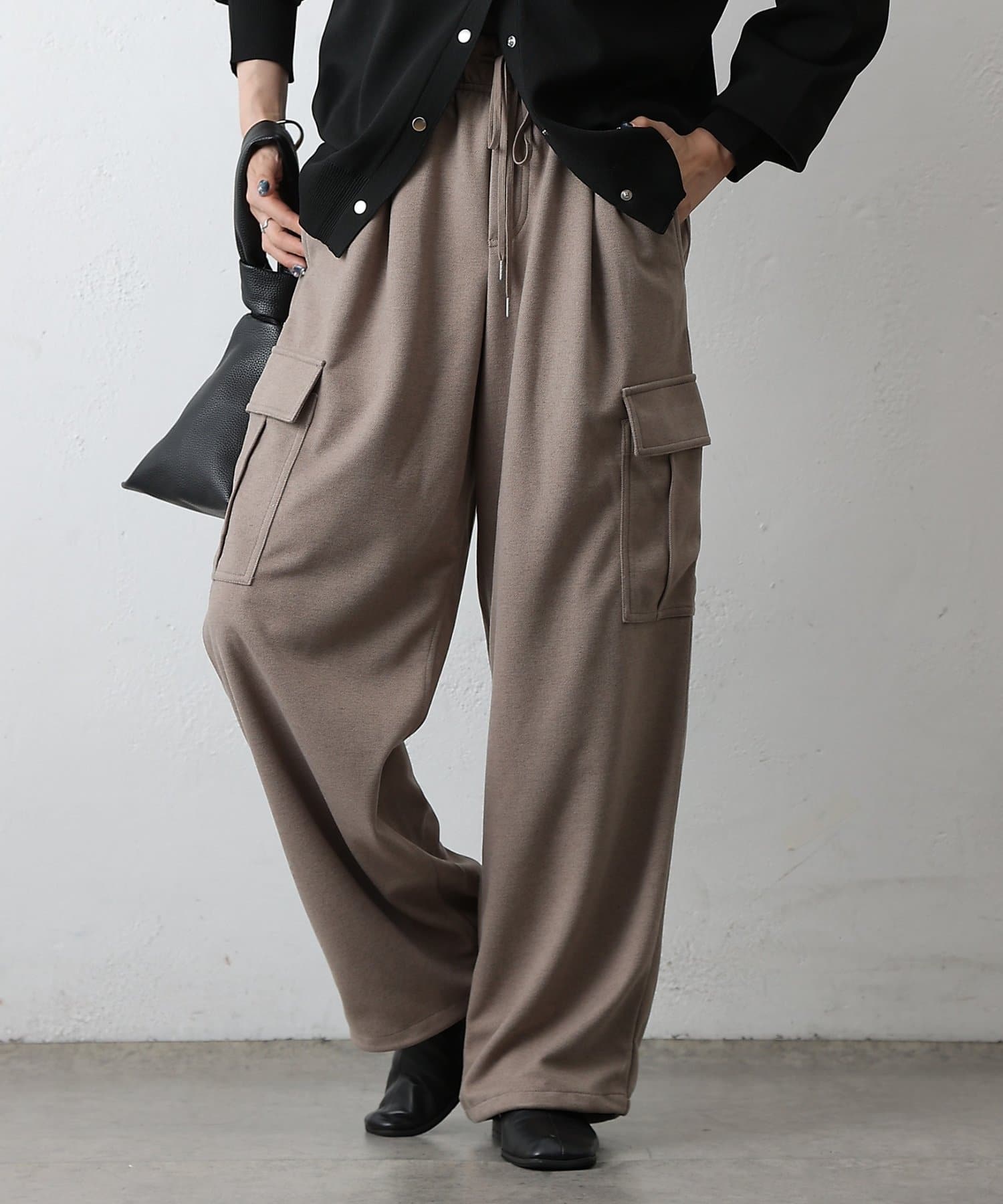 ウールライクな素材感を使ったジャージカーゴパンツです。