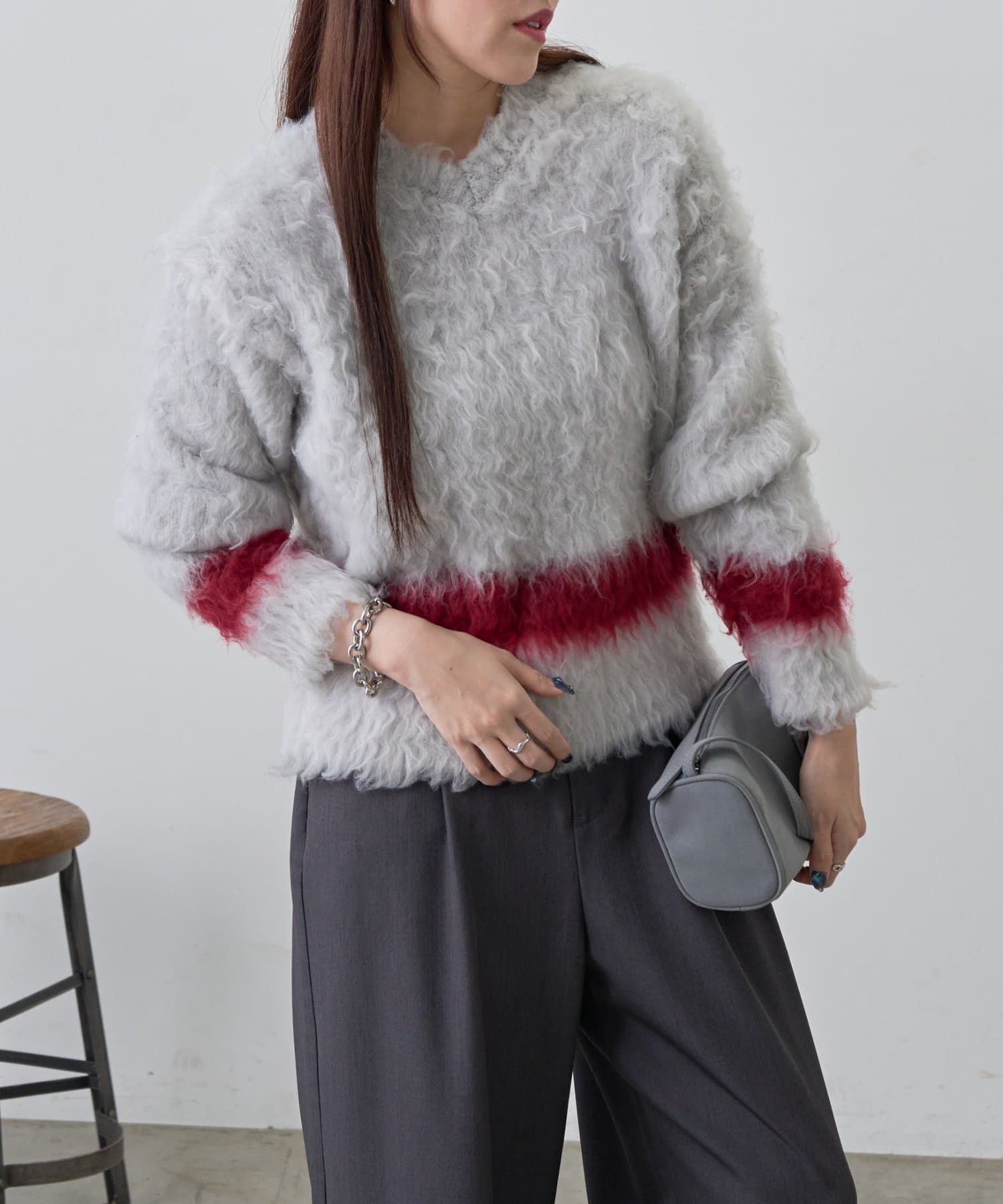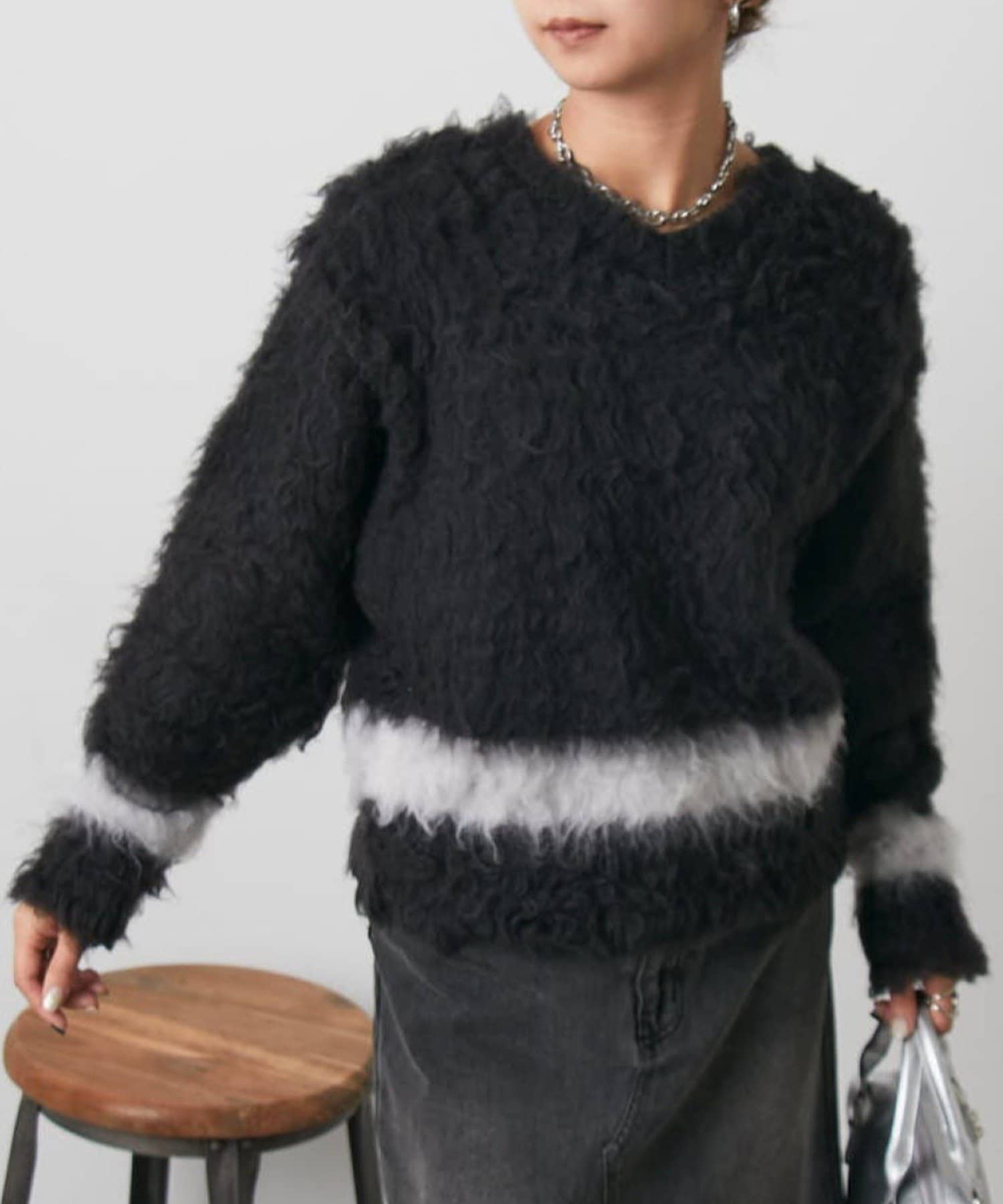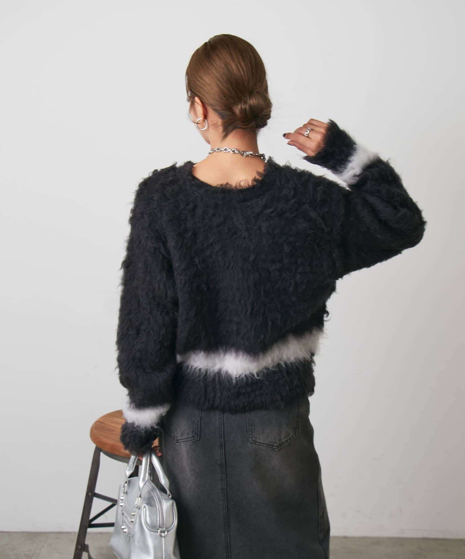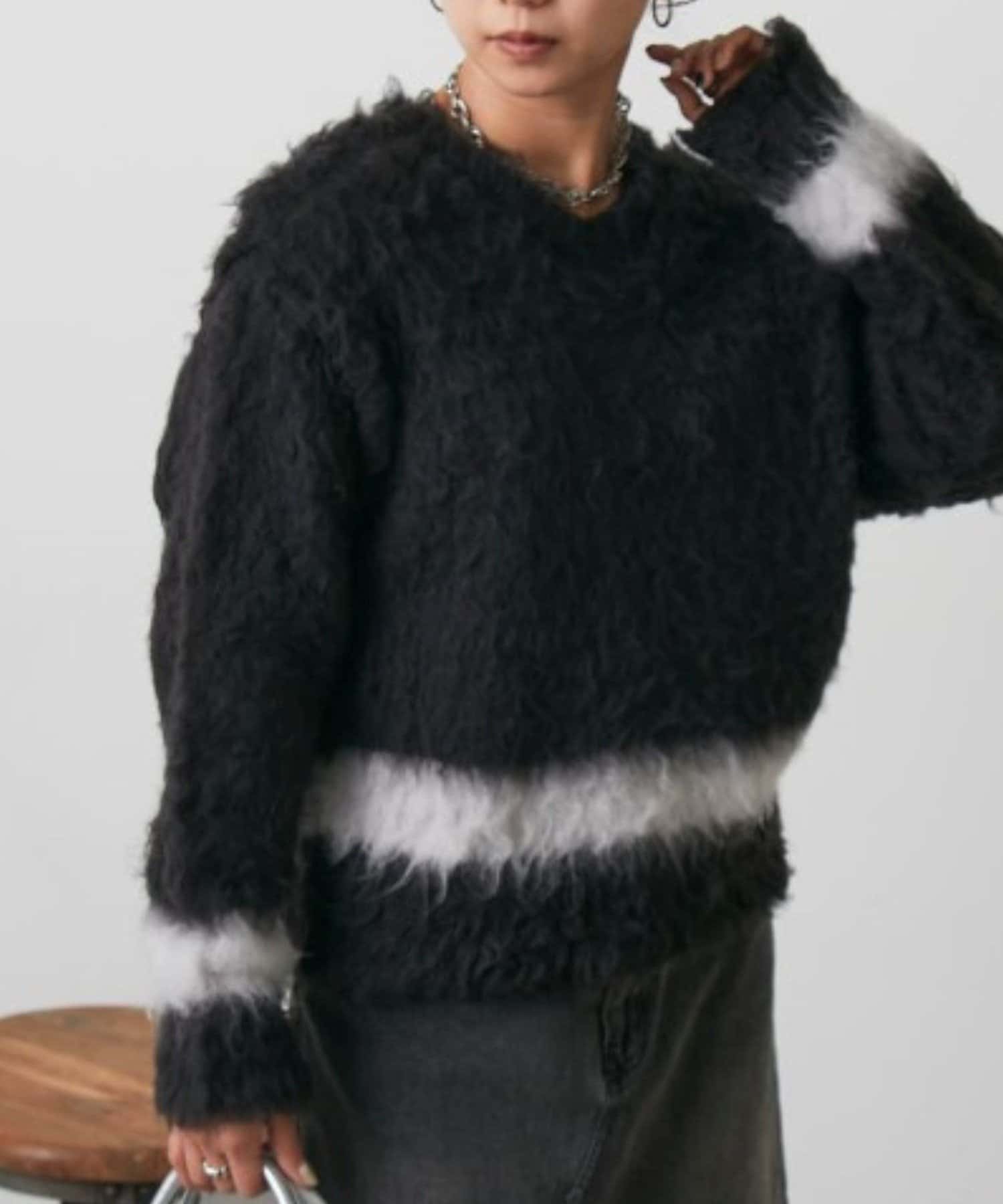 【2パターンの着こなしが叶う。配色シャギー前後2WAYニット】