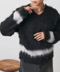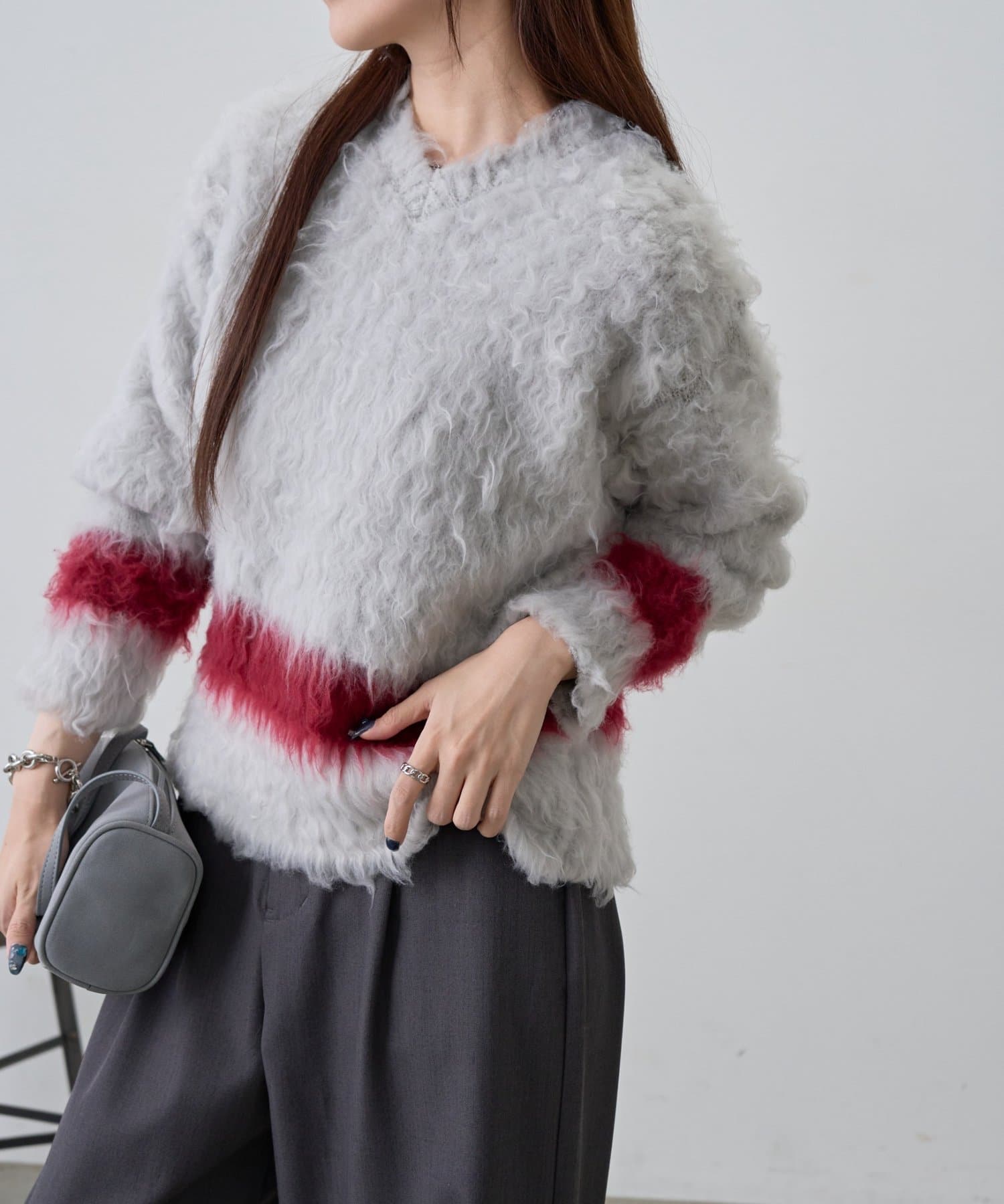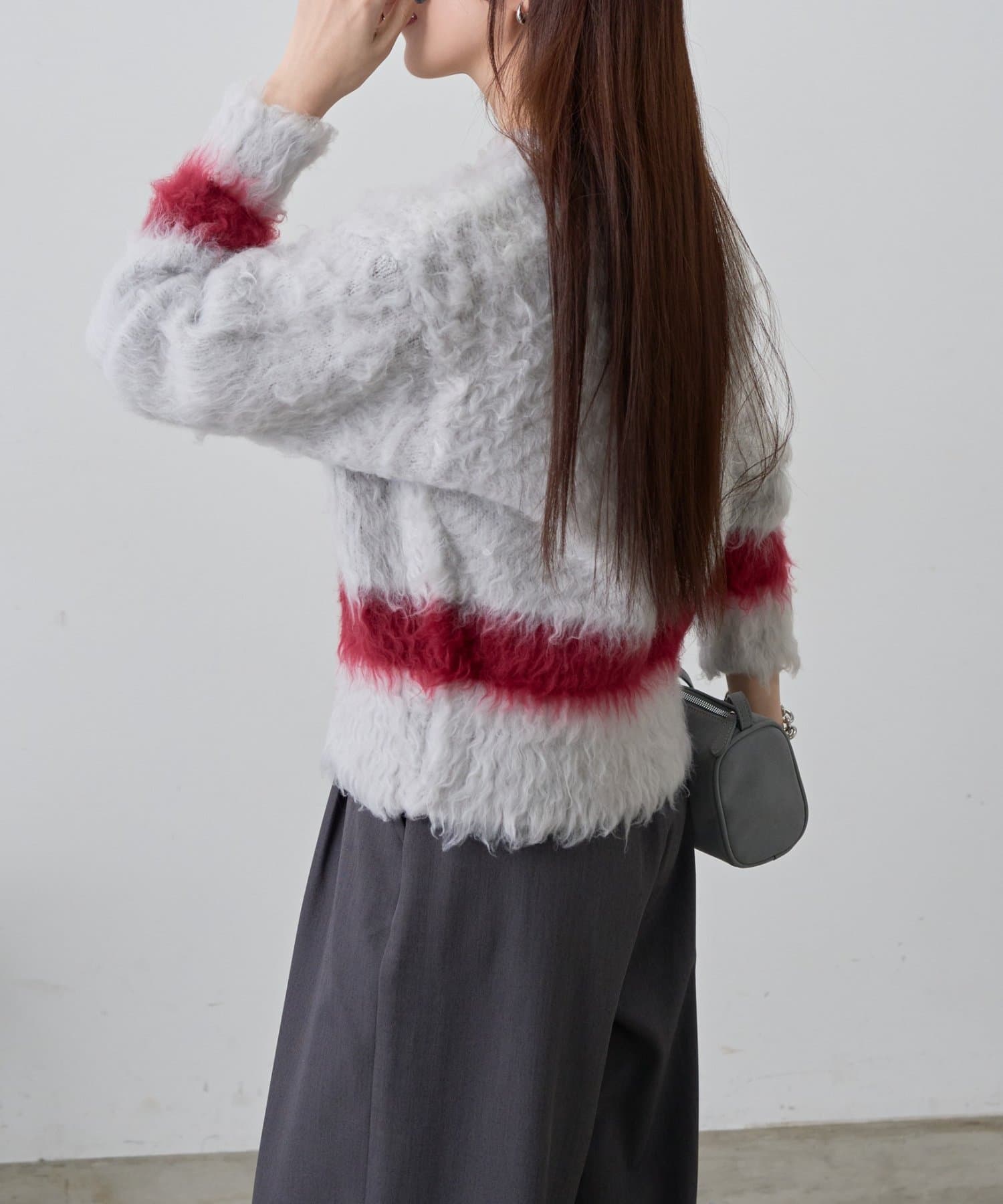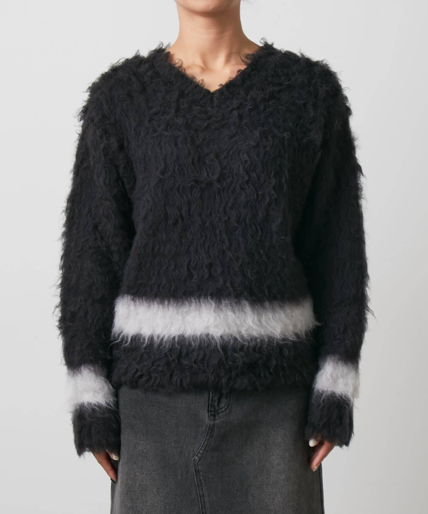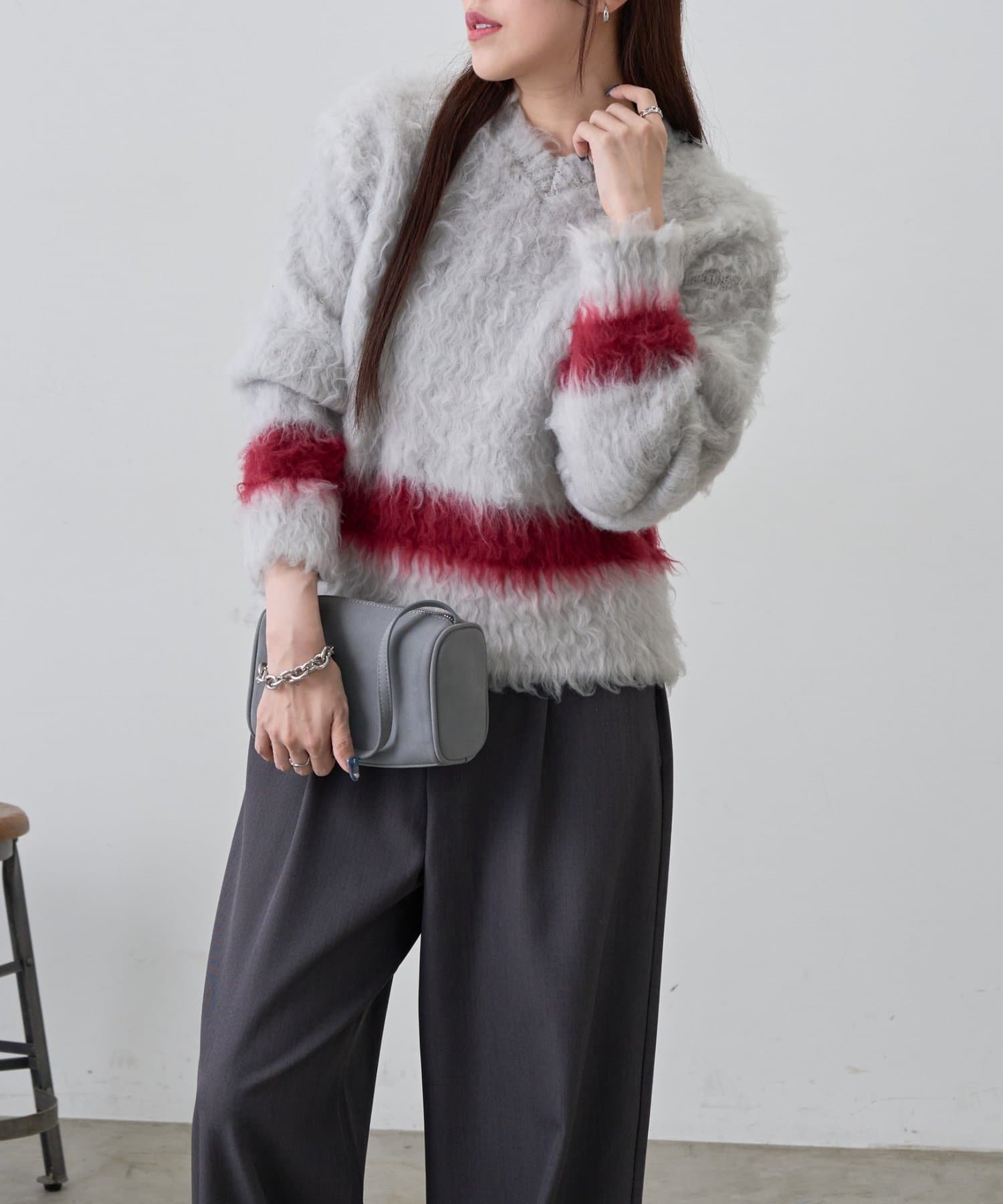 【2パターンの着こなしが叶う。配色シャギー前後2WAYニット】