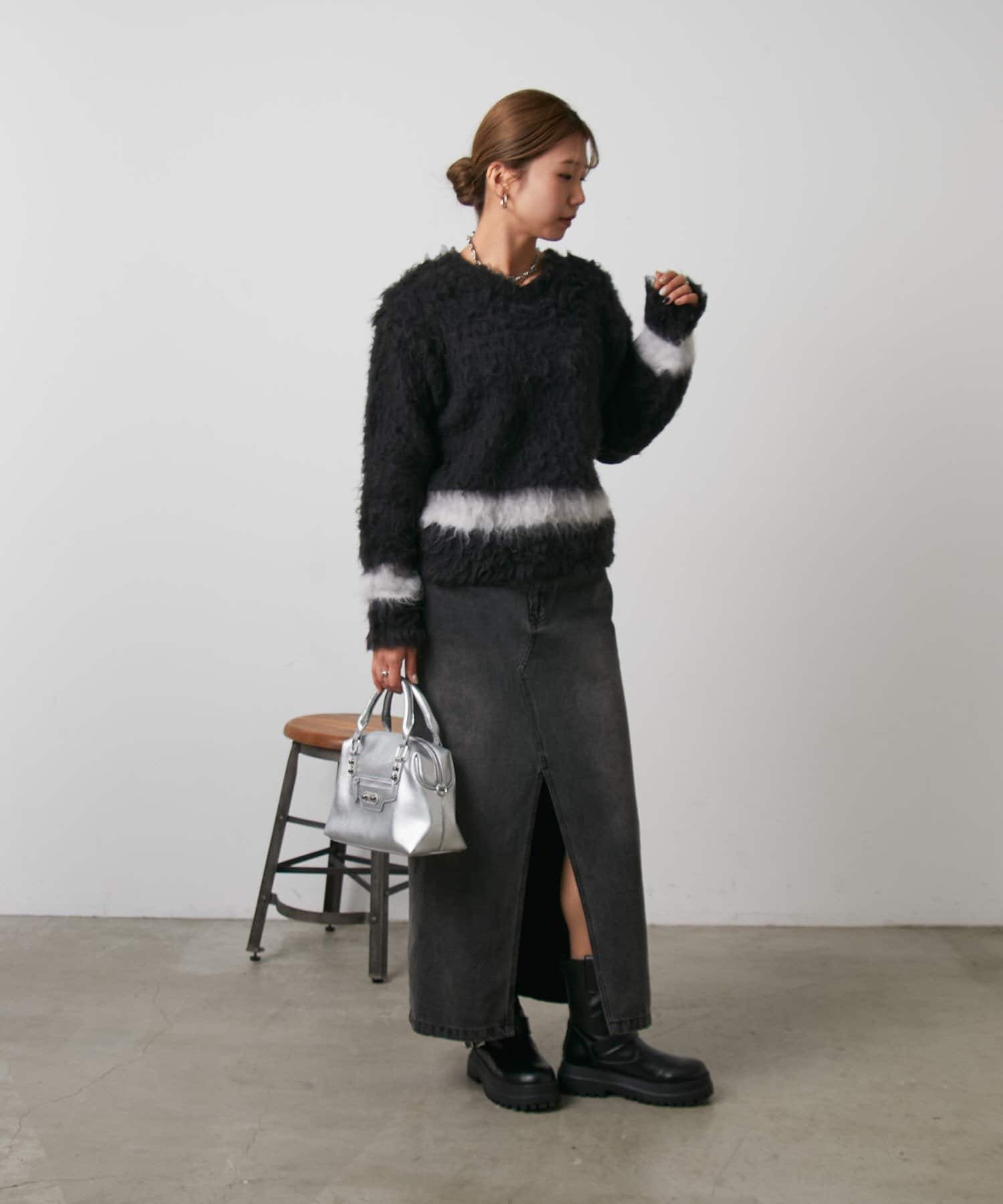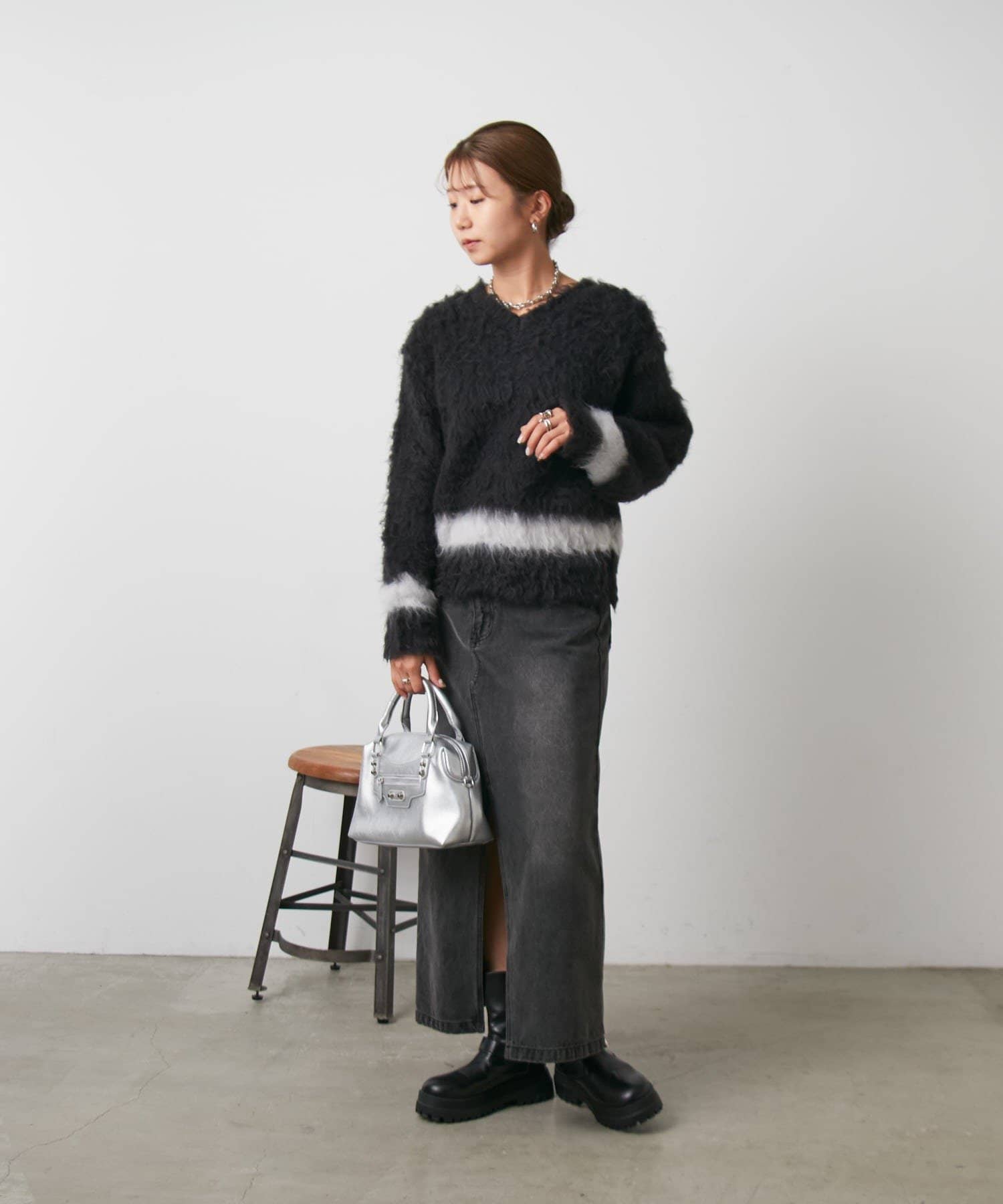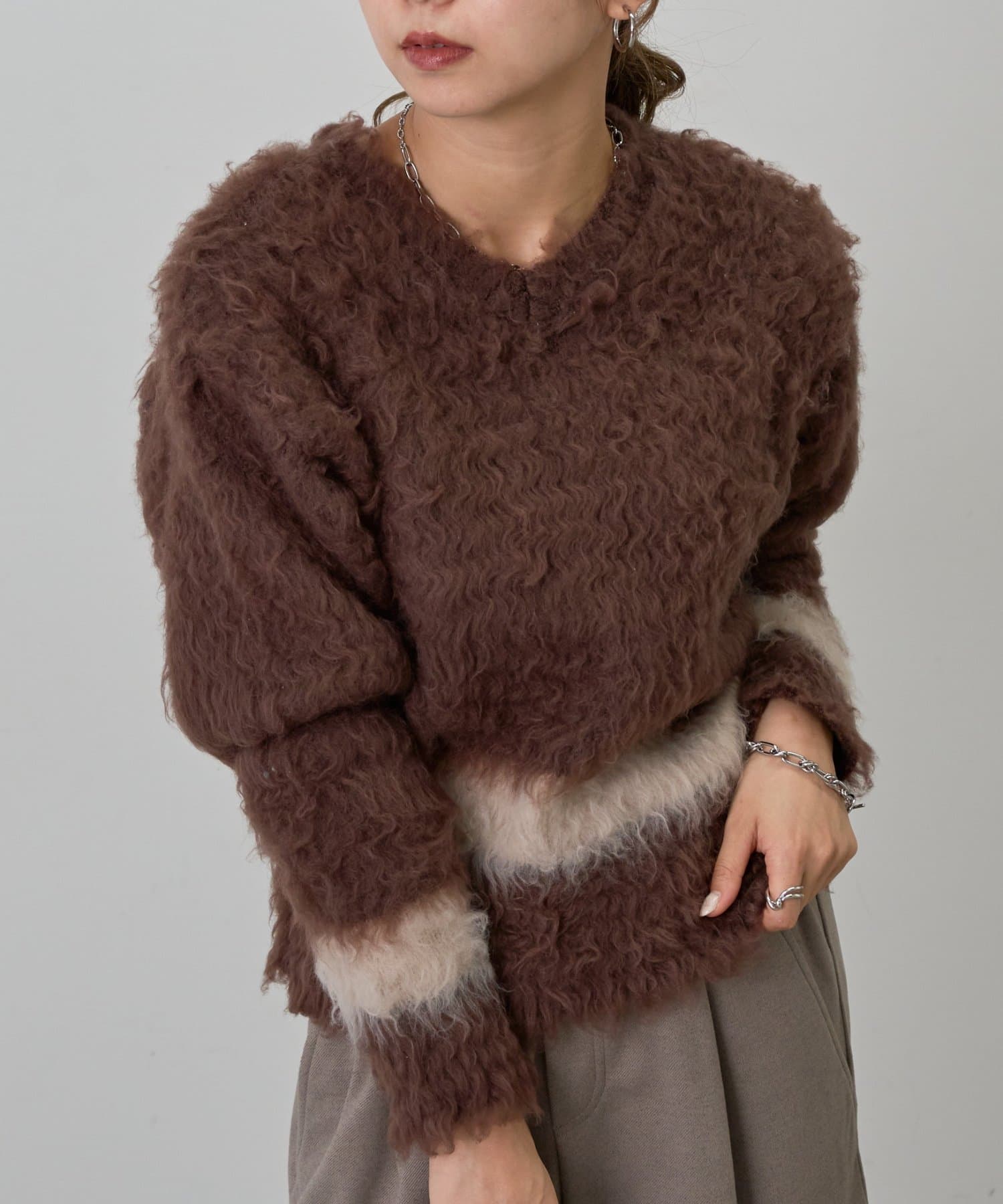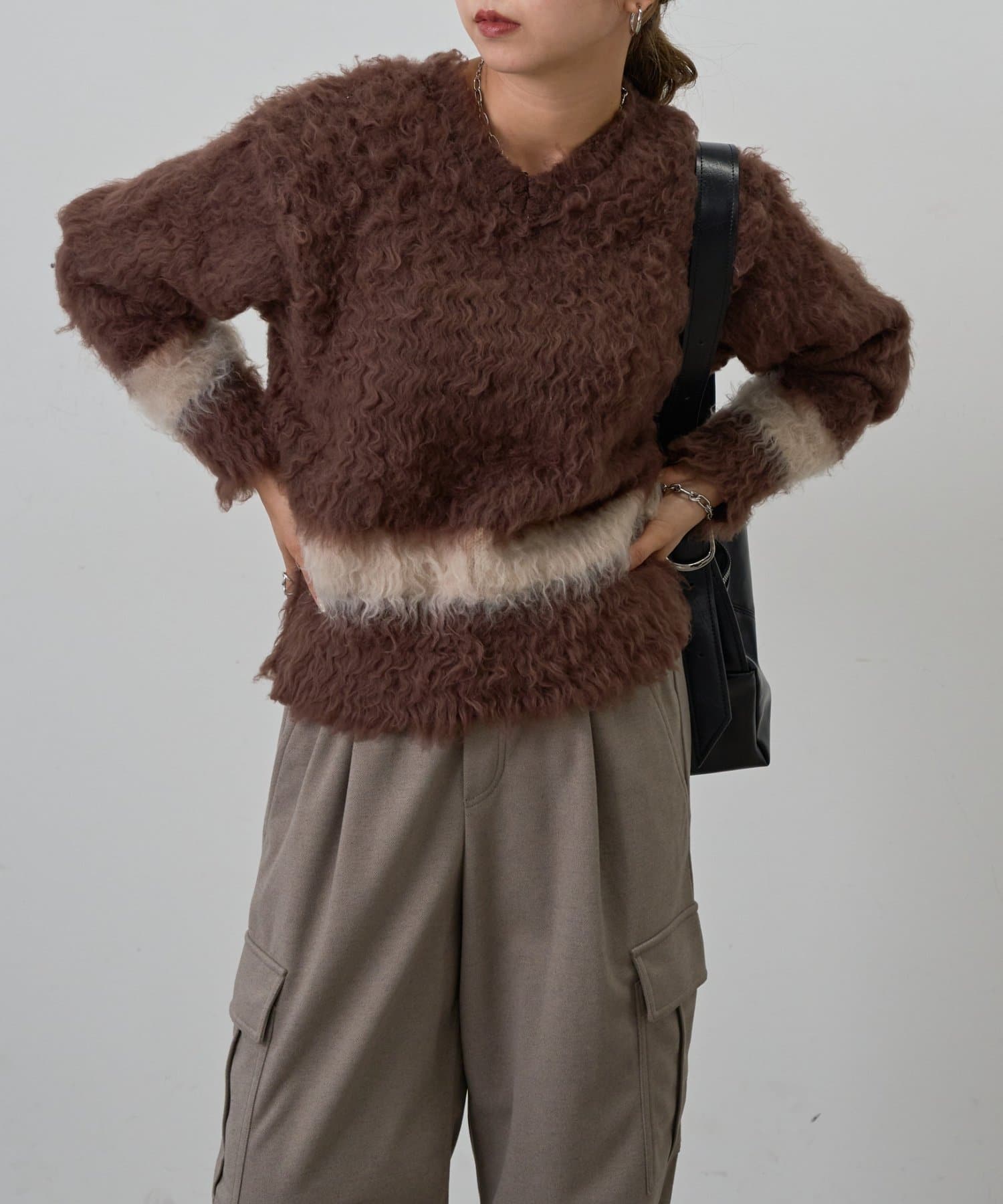 【2パターンの着こなしが叶う。配色シャギー前後2WAYニット】