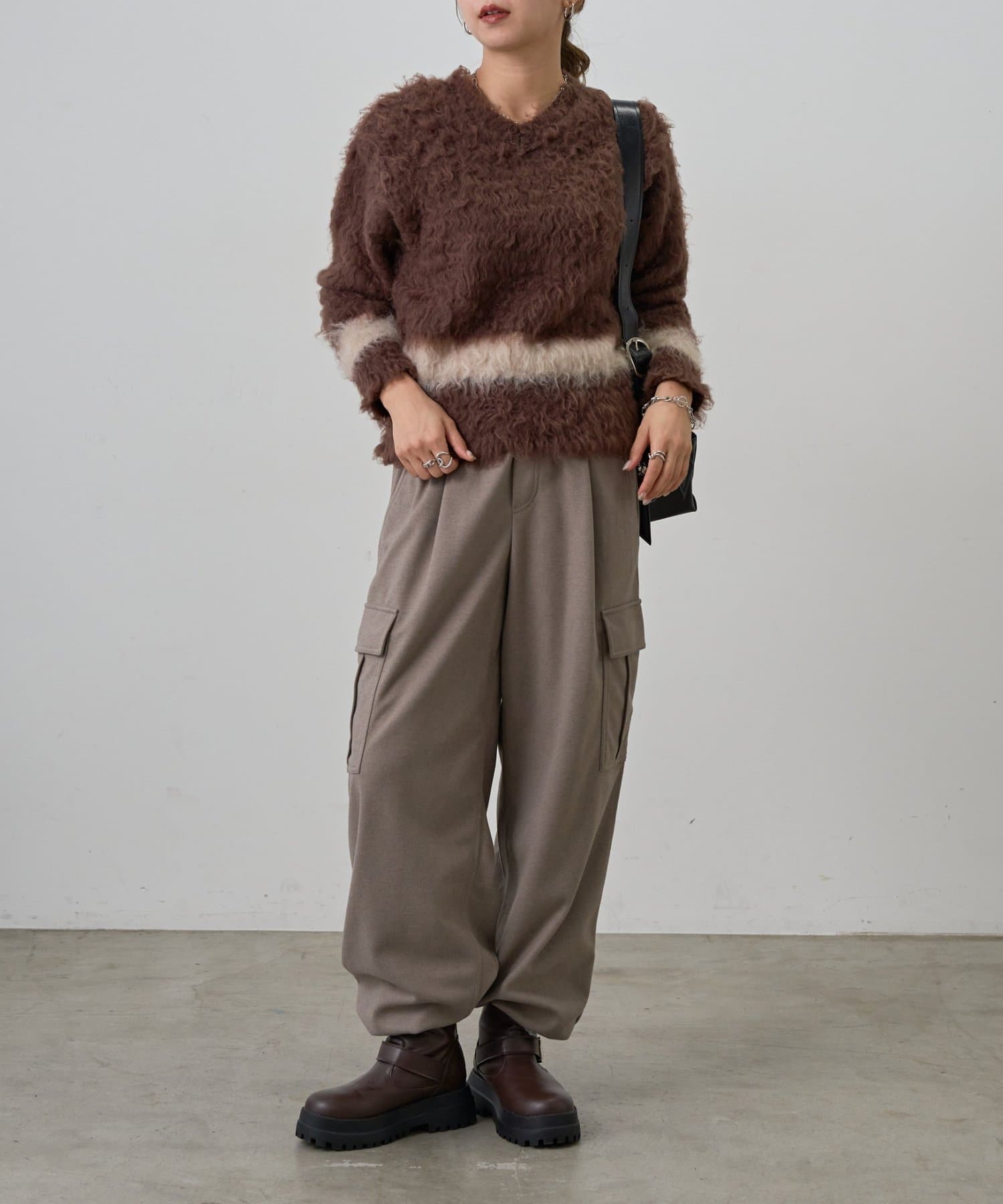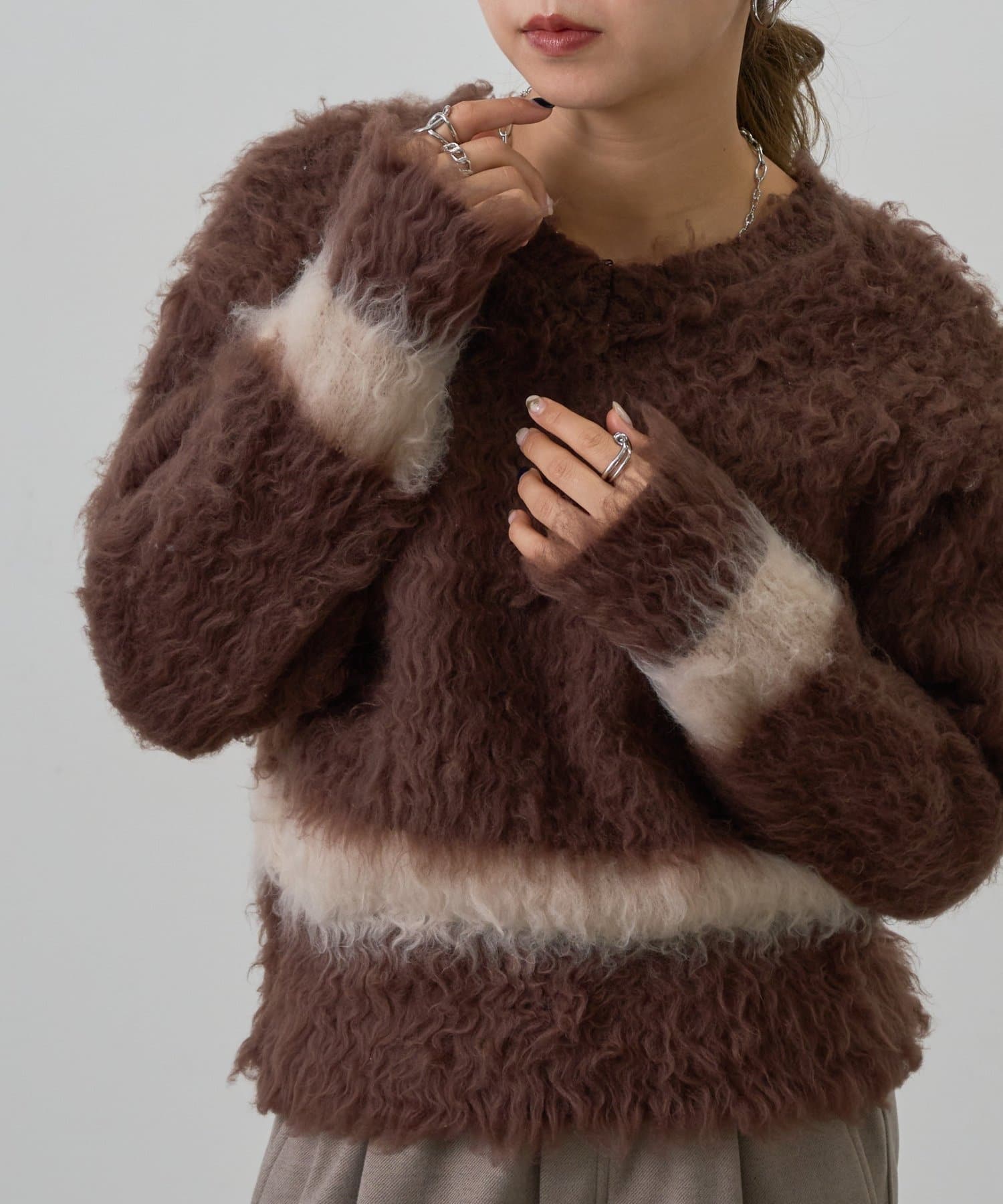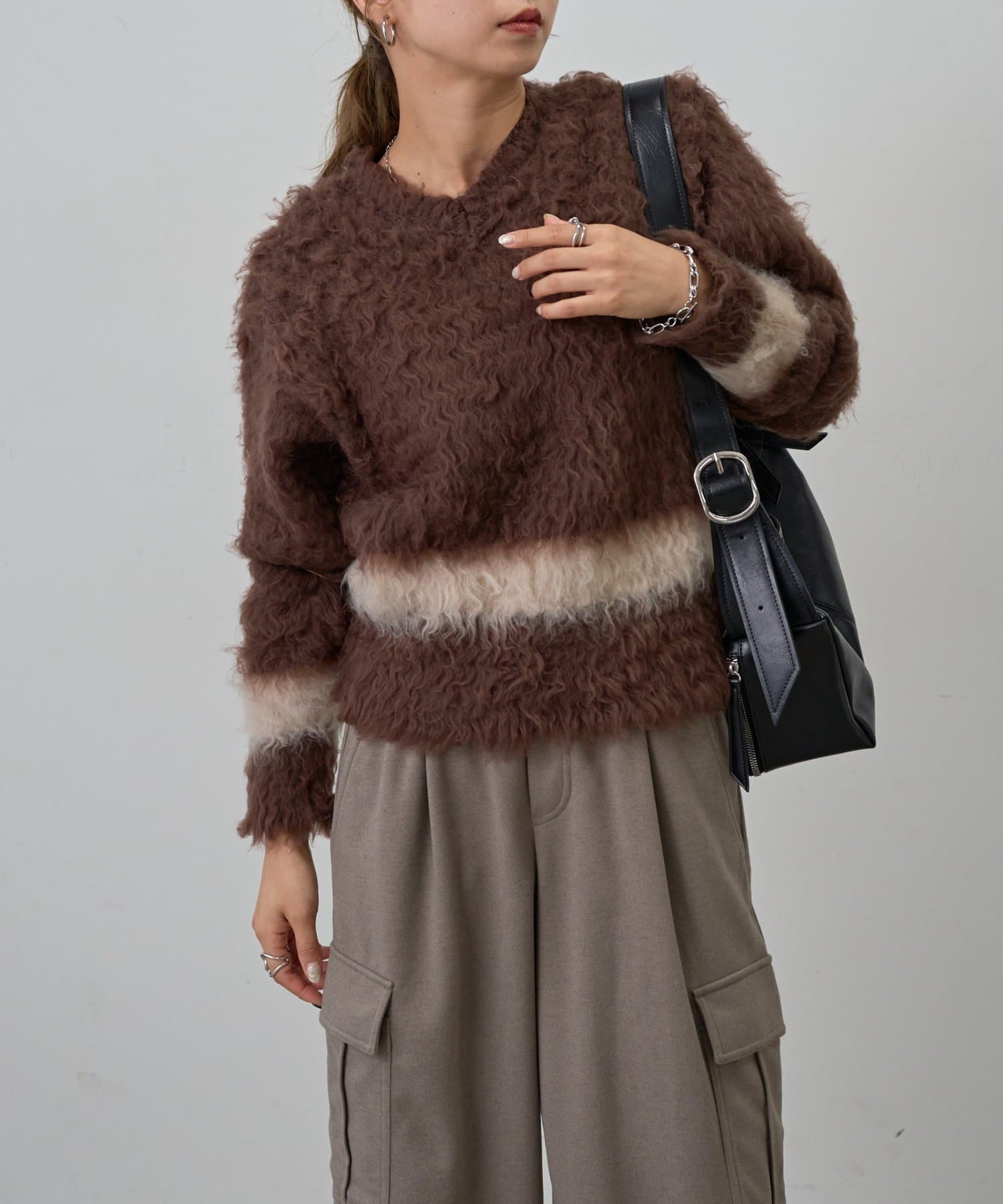 毛足のあるシャギー素材に品よく映える配色デザインがポイントの前後2WAYプルオーバーです。