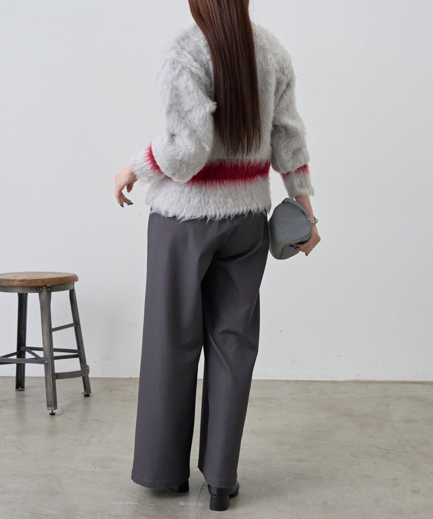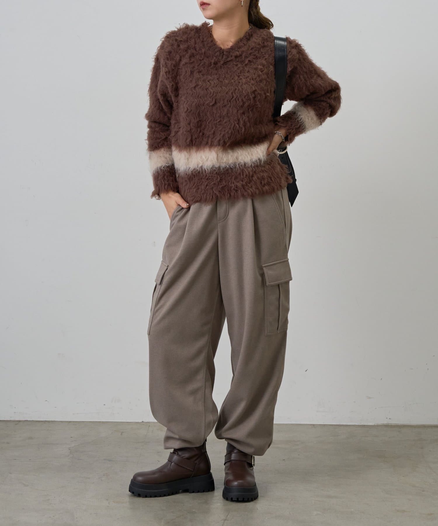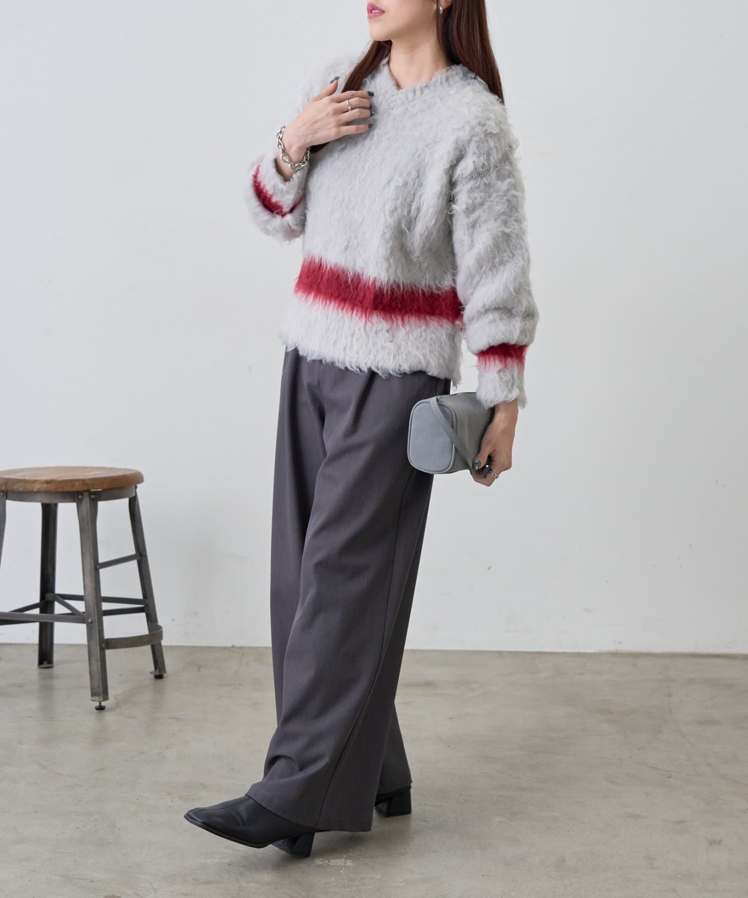 毛足のあるシャギー素材に品よく映える配色デザインがポイントの前後2WAYプルオーバーです。