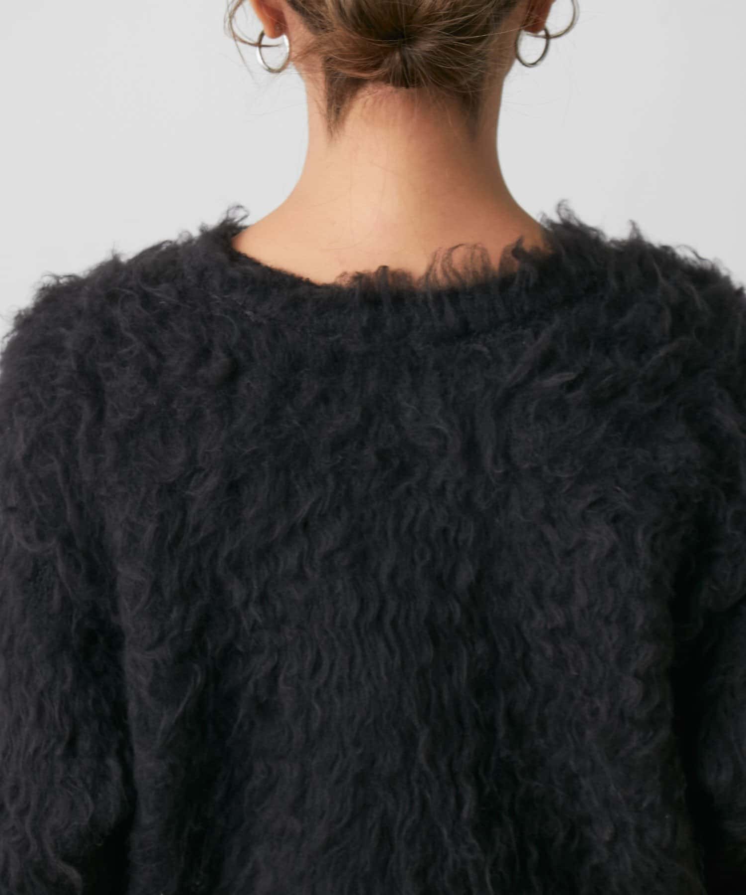 肌ざわりが柔らかく見た目以上に軽やかな着心地で、ほんのり光沢のある毛足が冬のコーディネートに奥行きを与え大人の余裕を感じさせる一枚です。