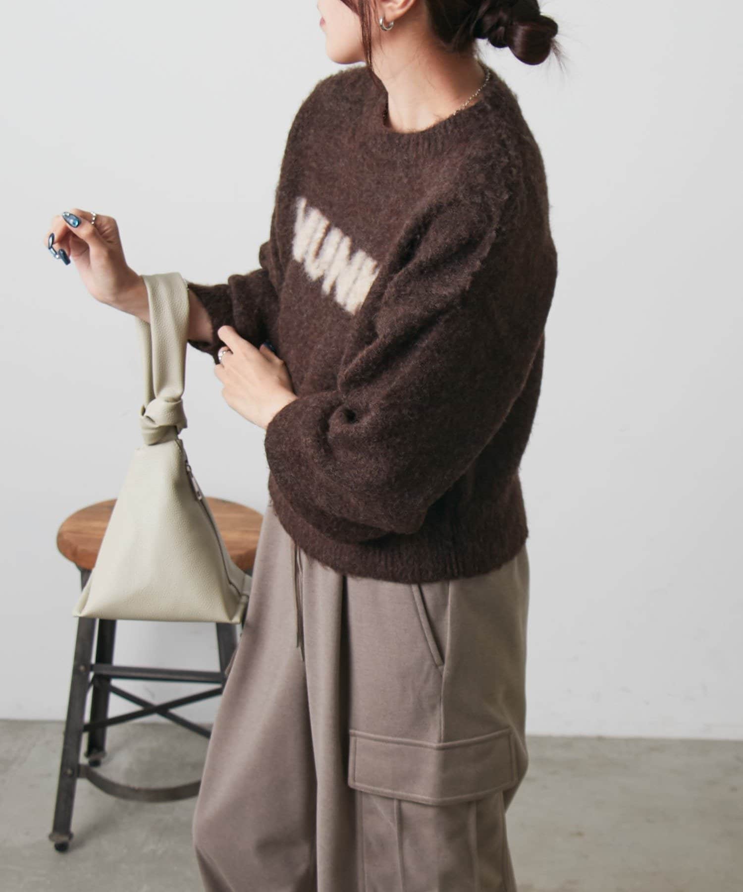 【存在感のあるロゴデザインで着映えるトレンドニット】