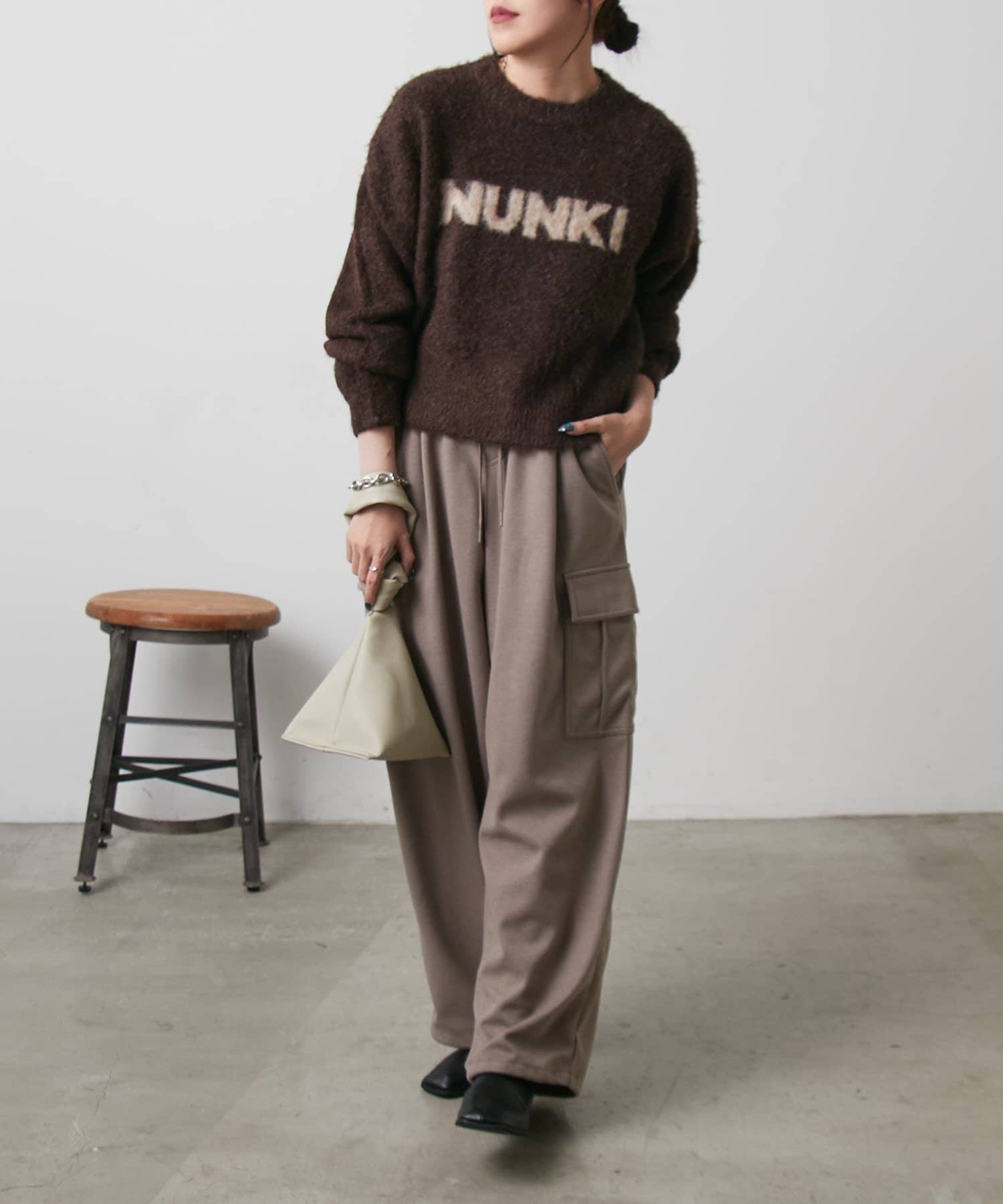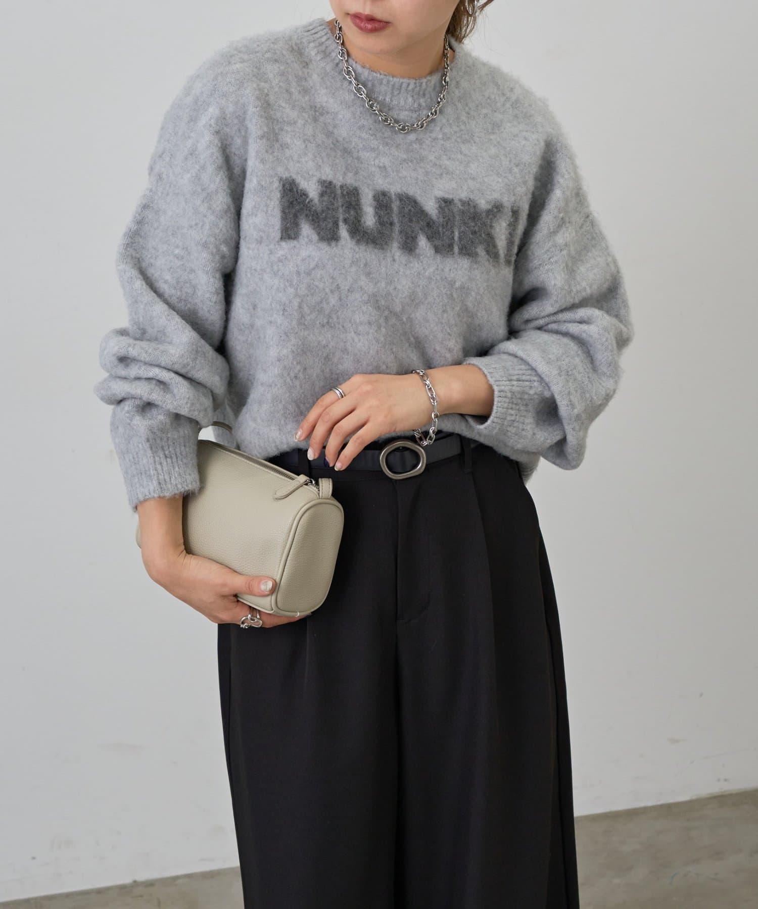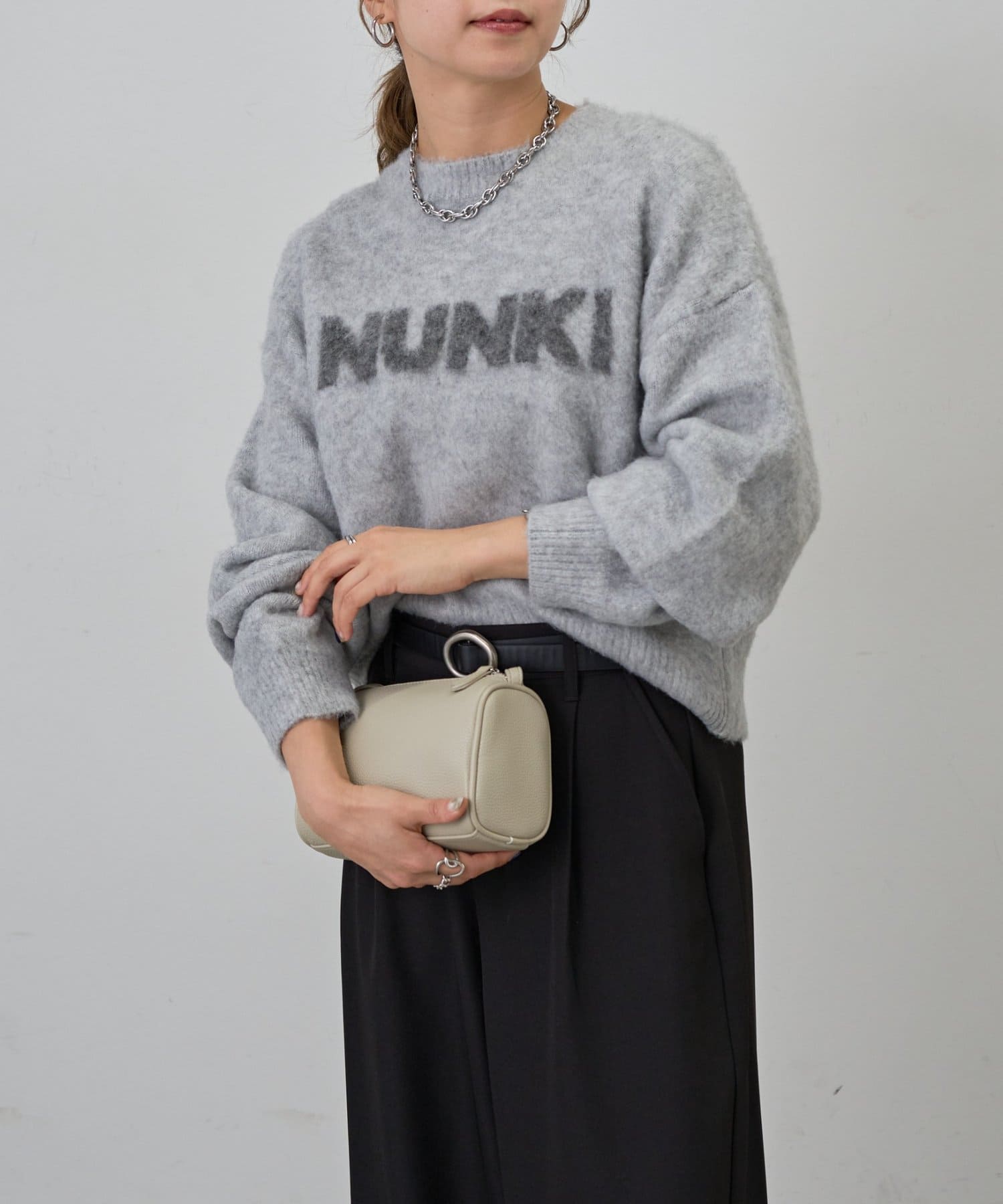 フロントに施された、シュメール語で”海の印”という意味の「NUNKI」のデザインがポイントのニットプルオーバーです。