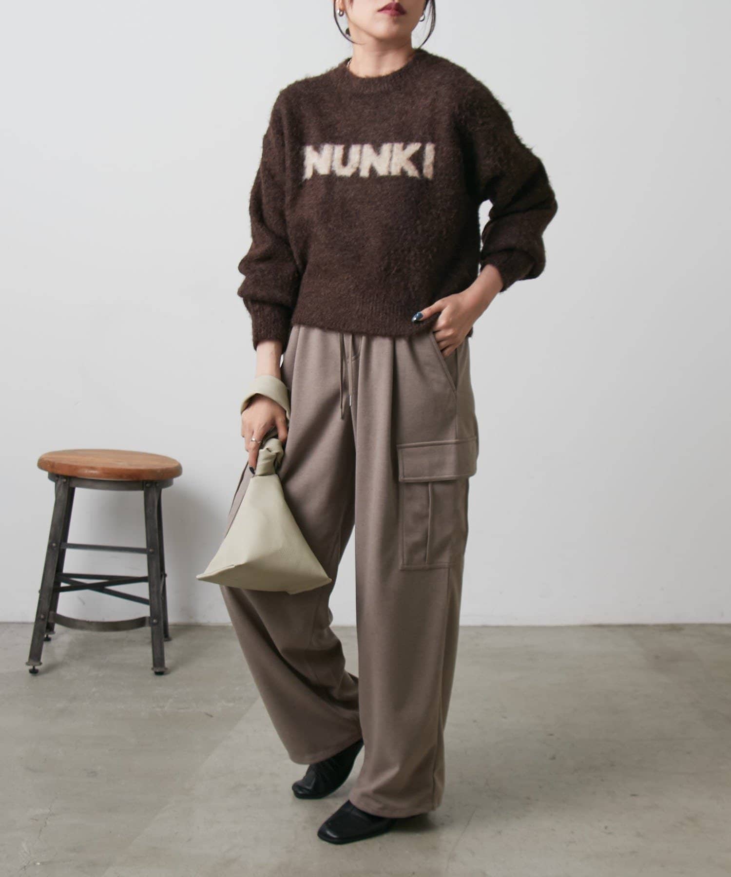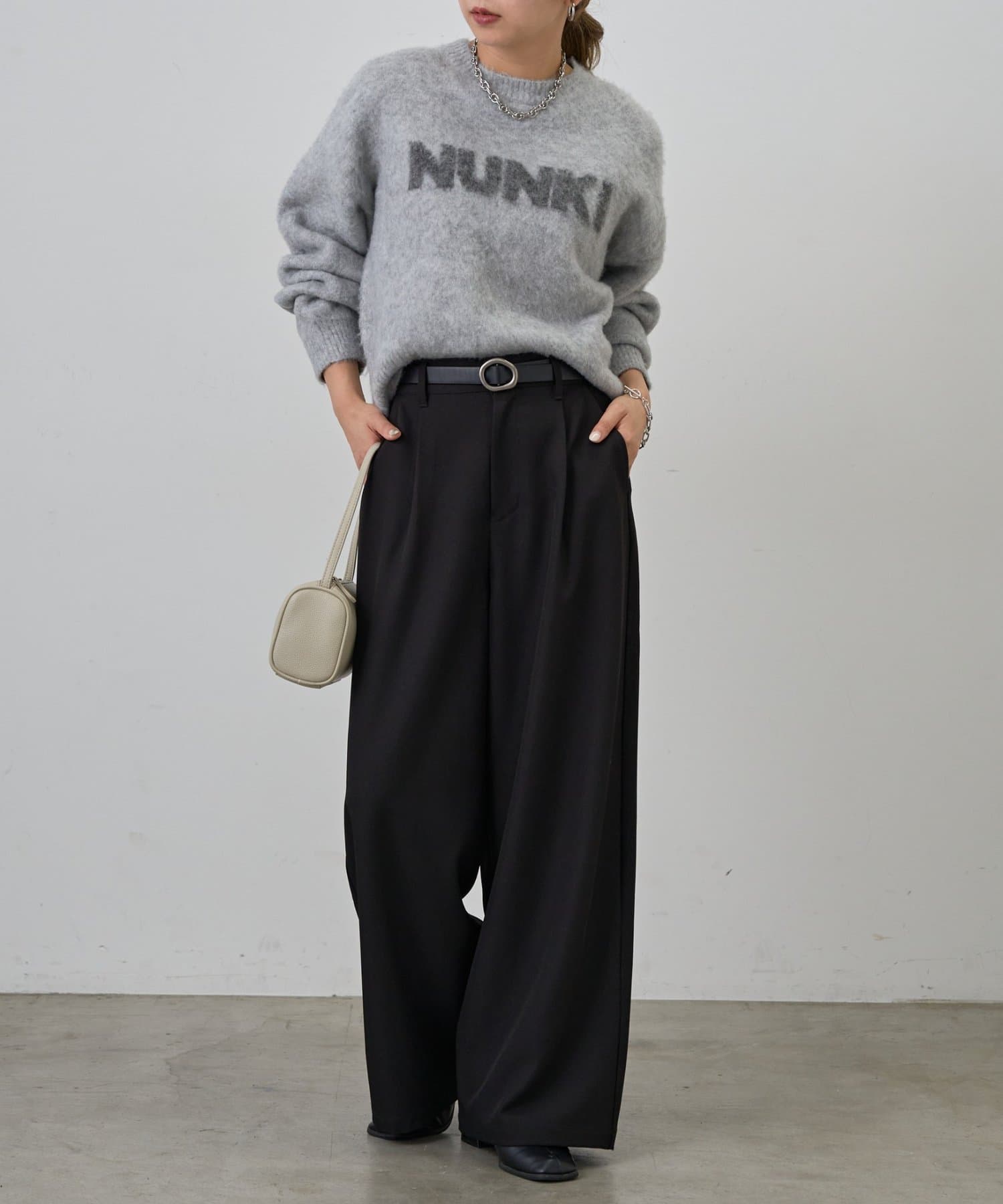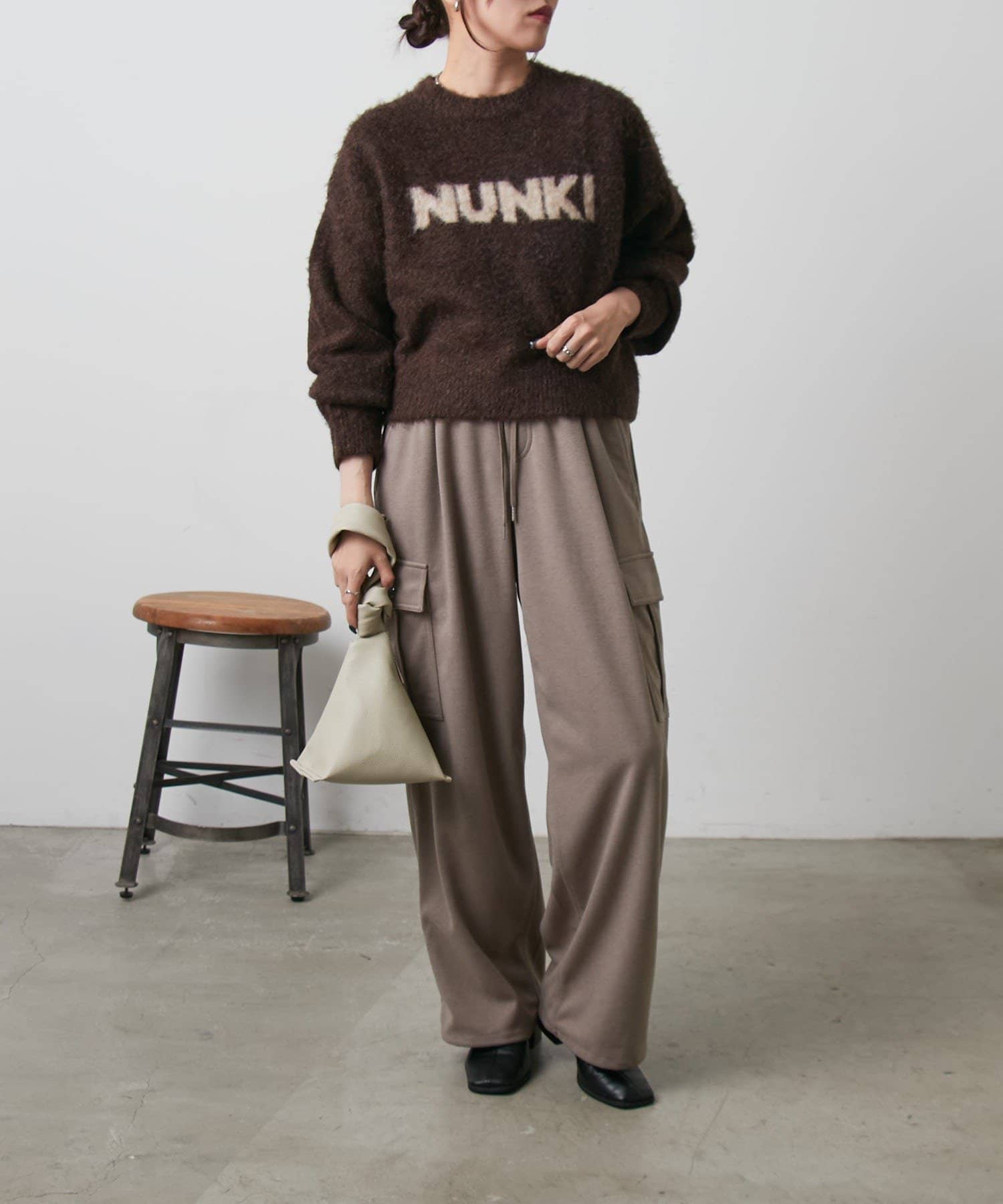 フロントに施された、シュメール語で”海の印”という意味の「NUNKI」のデザインがポイントのニットプルオーバーです。