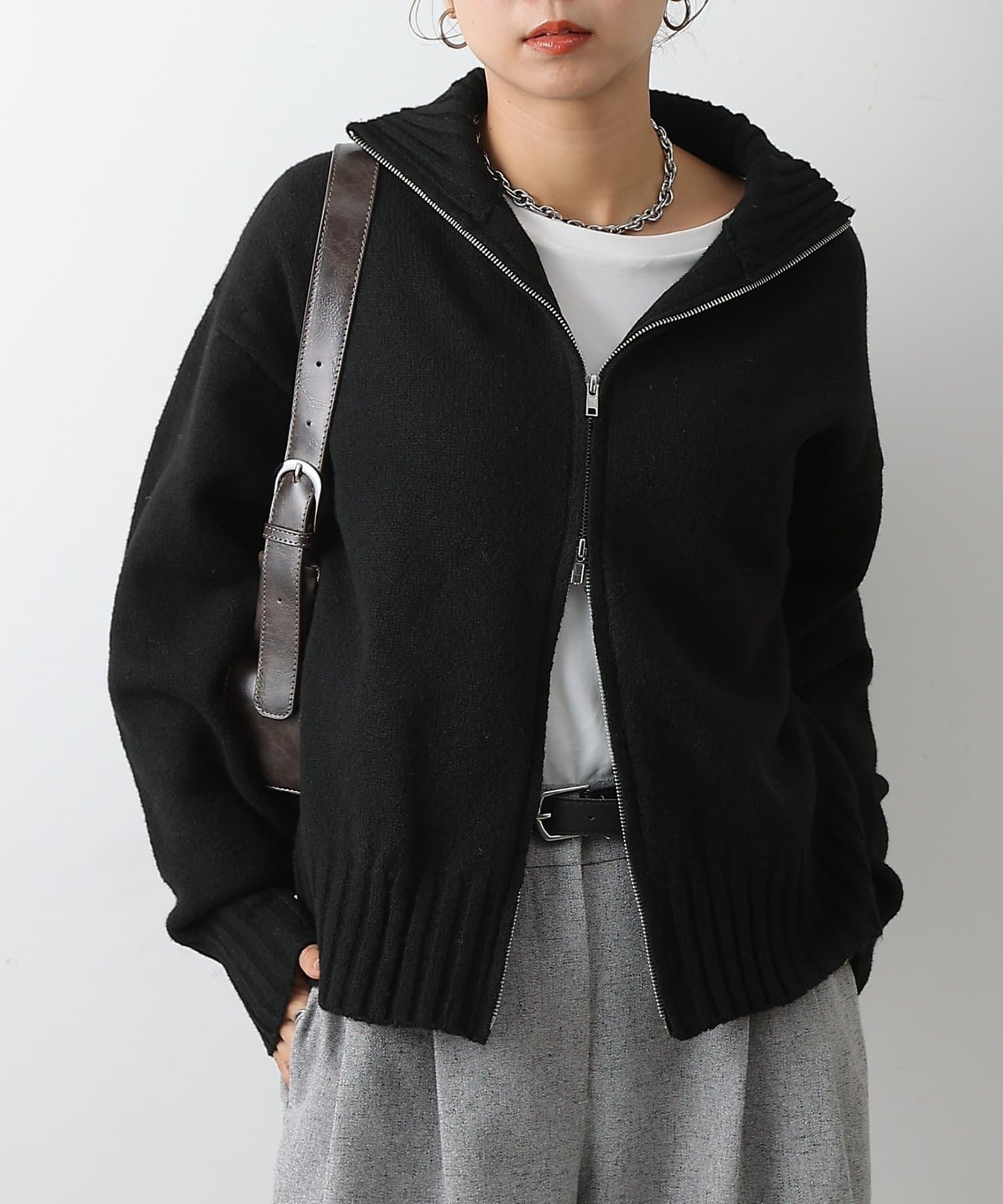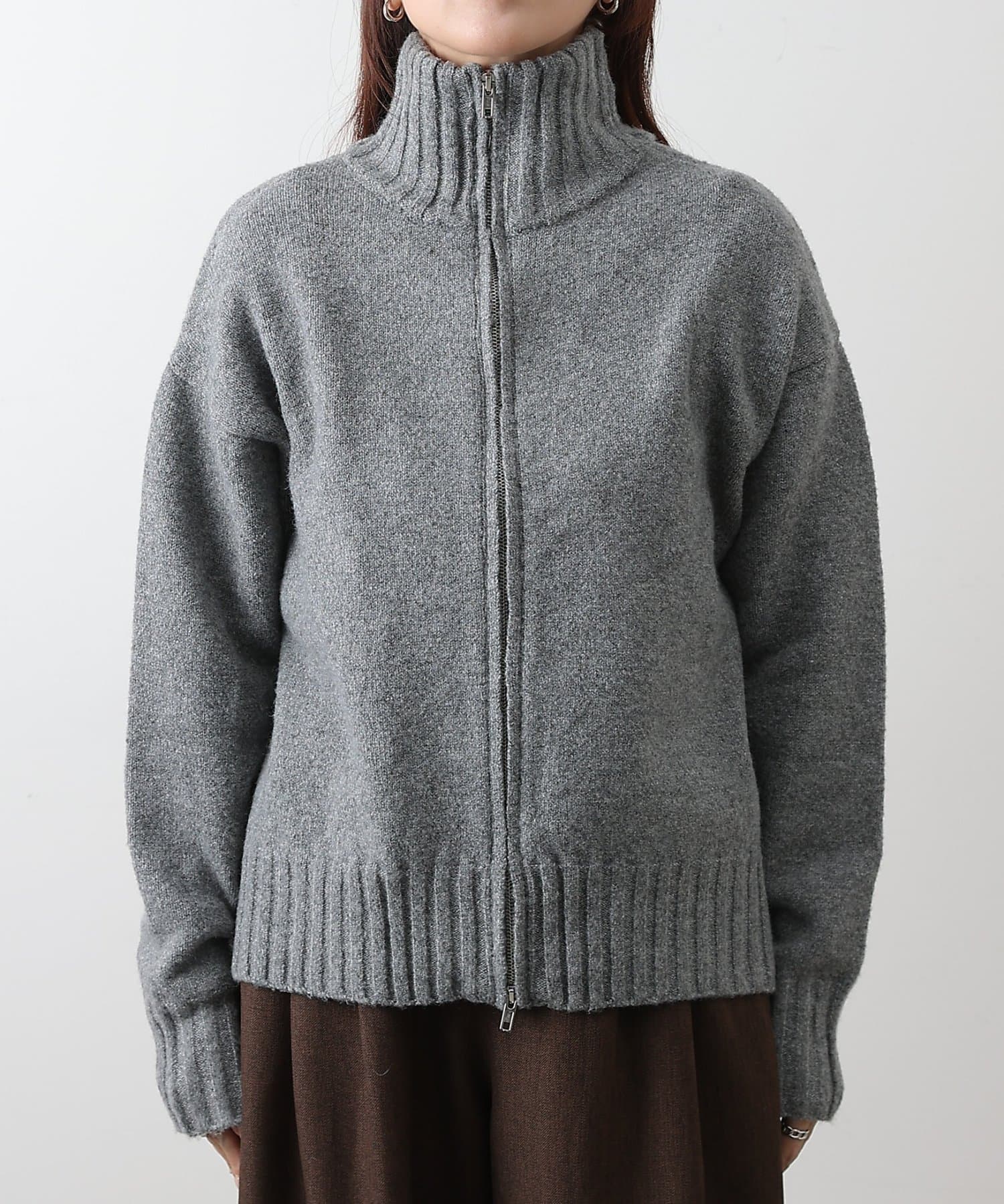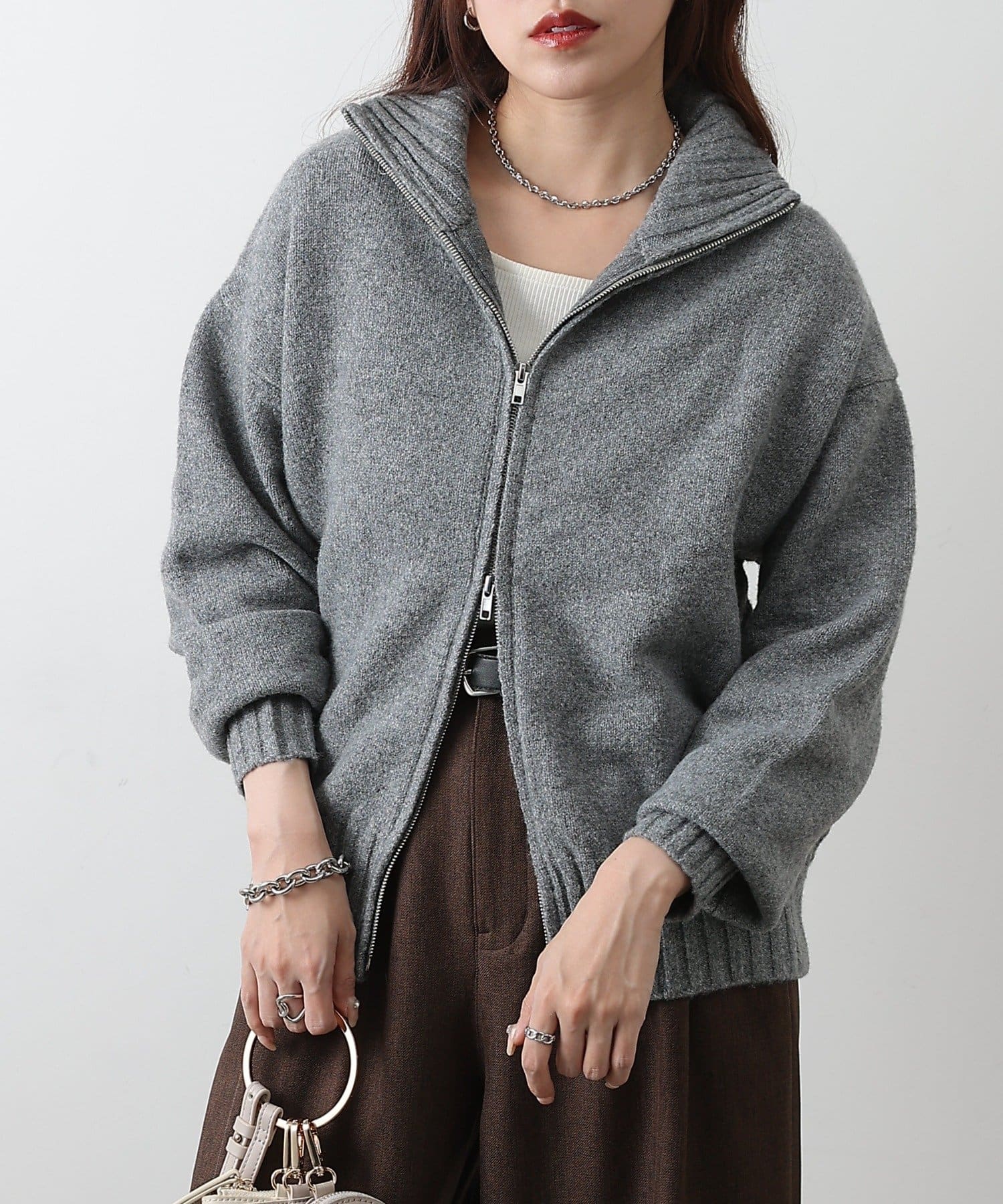 【スタンドネックとダブルジップで楽しむ万能ニットカーディガン】