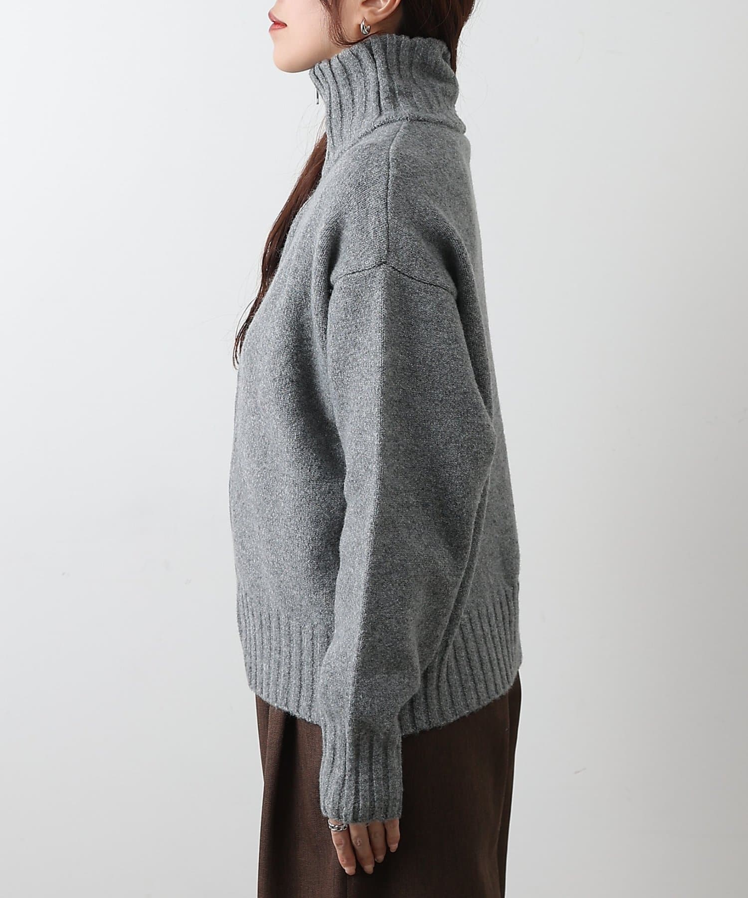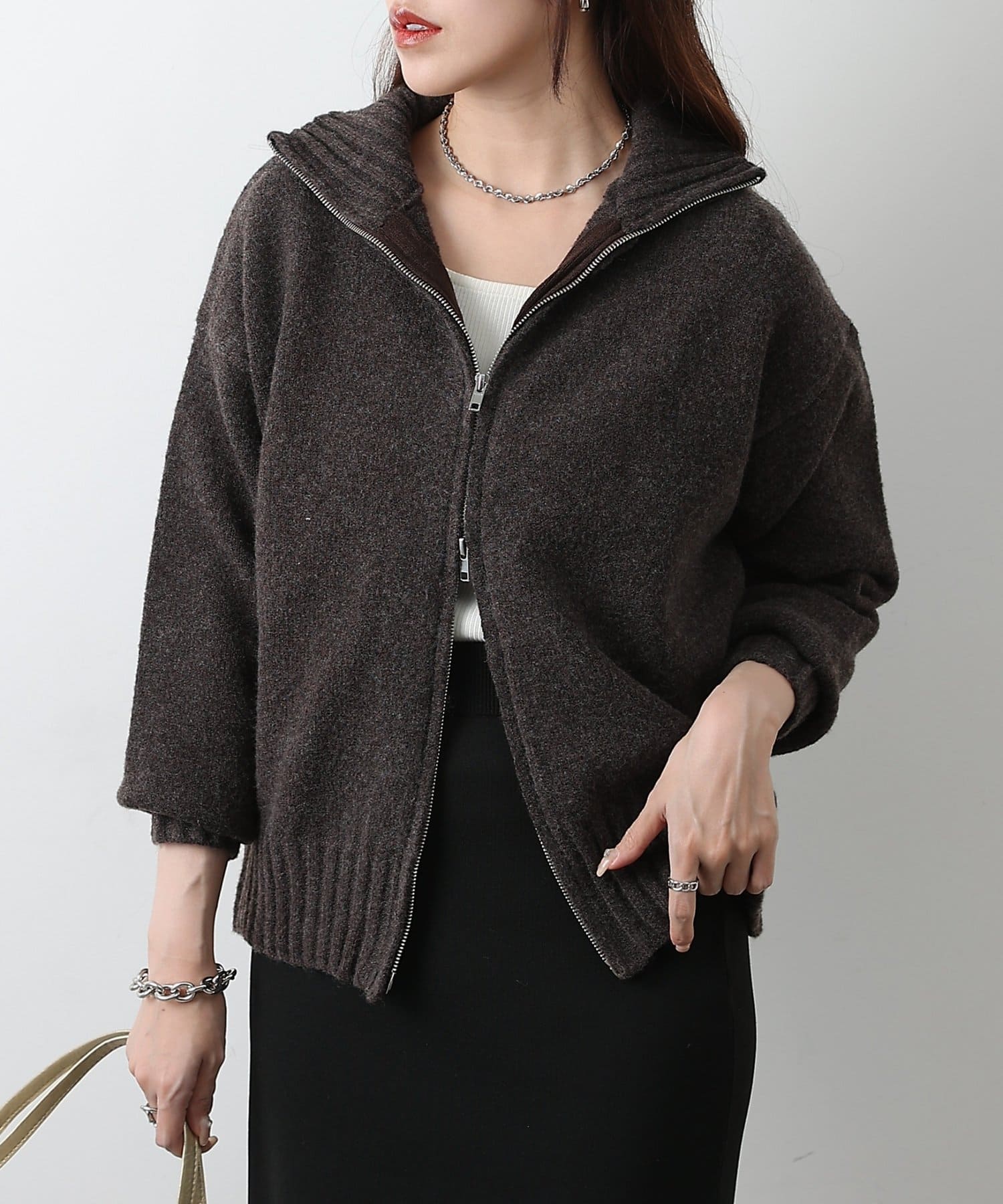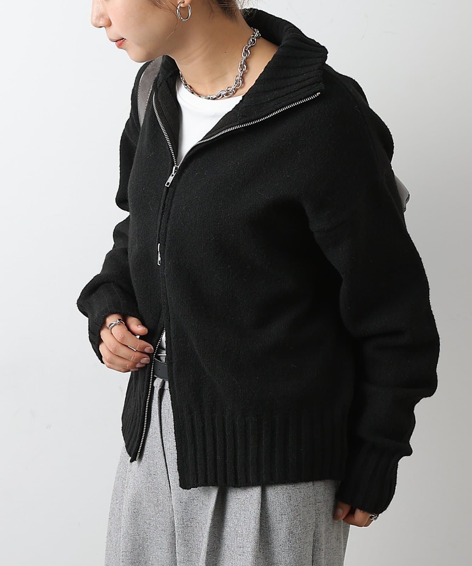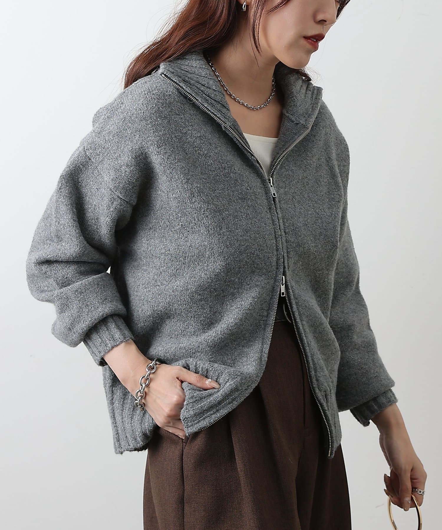 【スタンドネックとダブルジップで楽しむ万能ニットカーディガン】