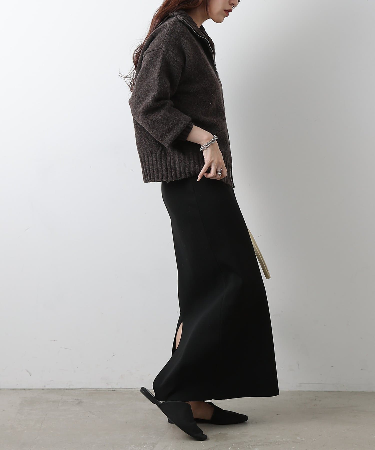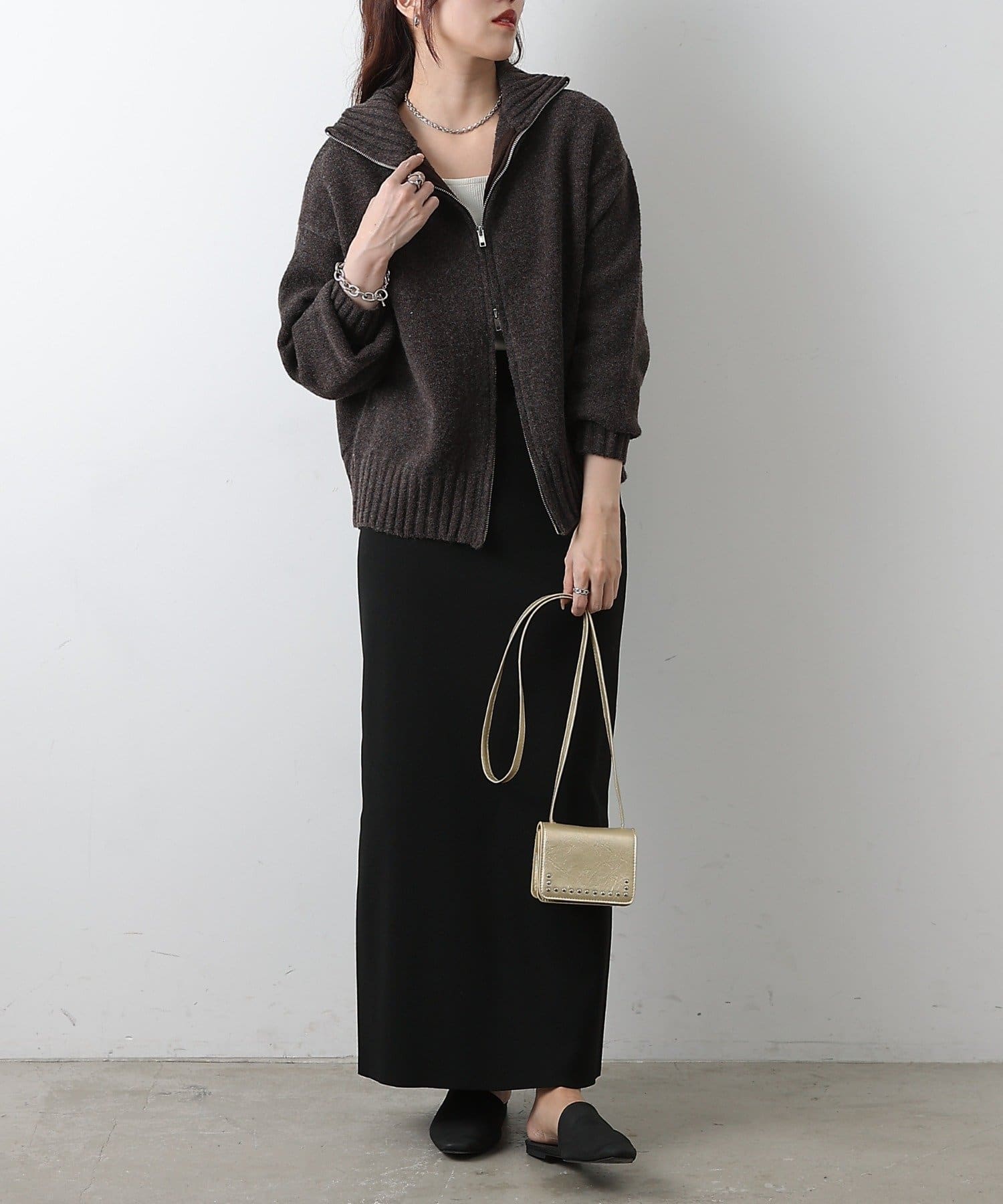 開閉自在のダブルジップはレイヤードスタイルの幅を広げ、上下どちらからも開けられることで抜け感のある今っぽい着こなしに◎