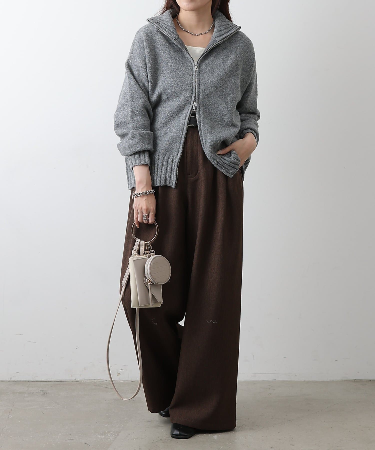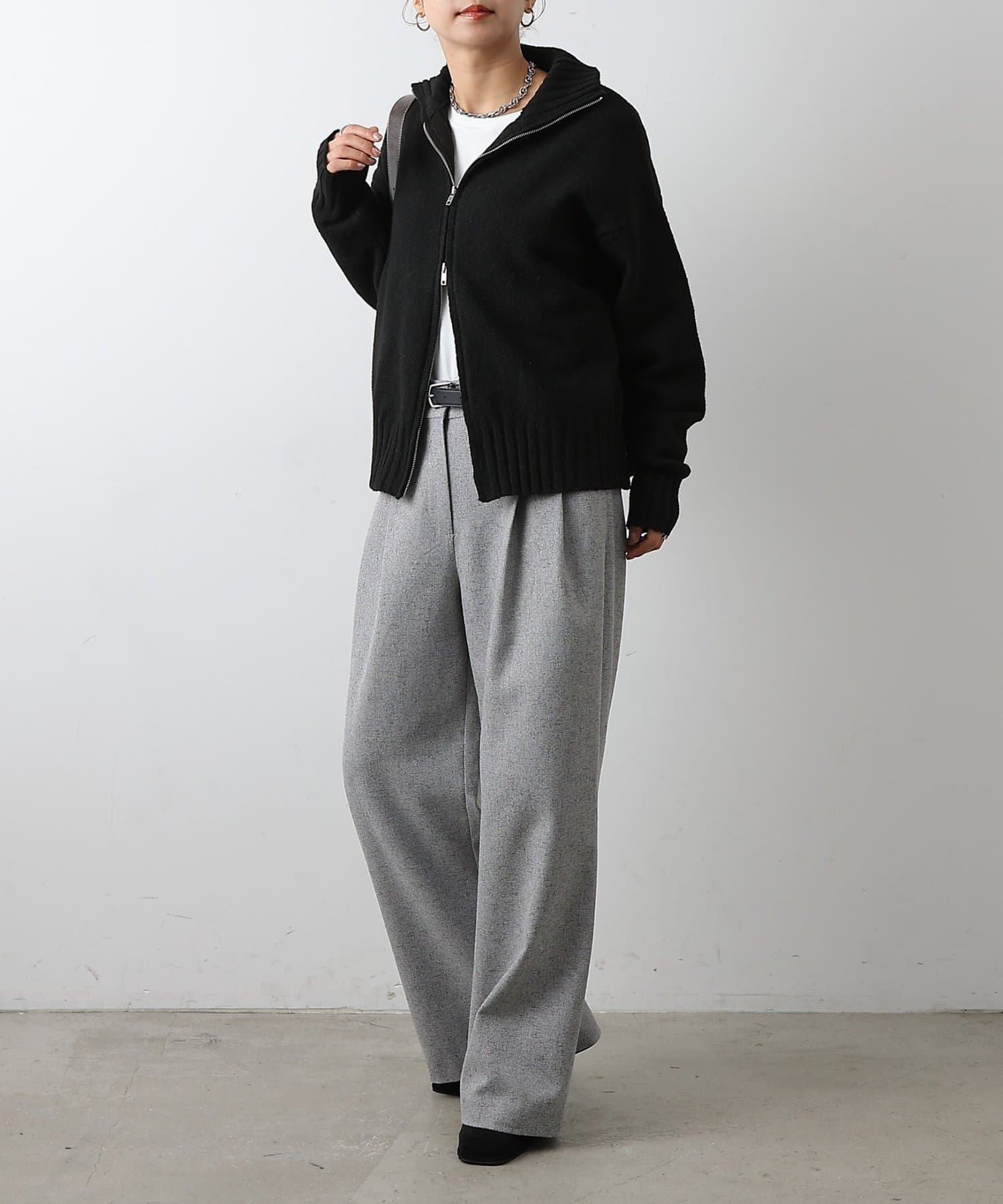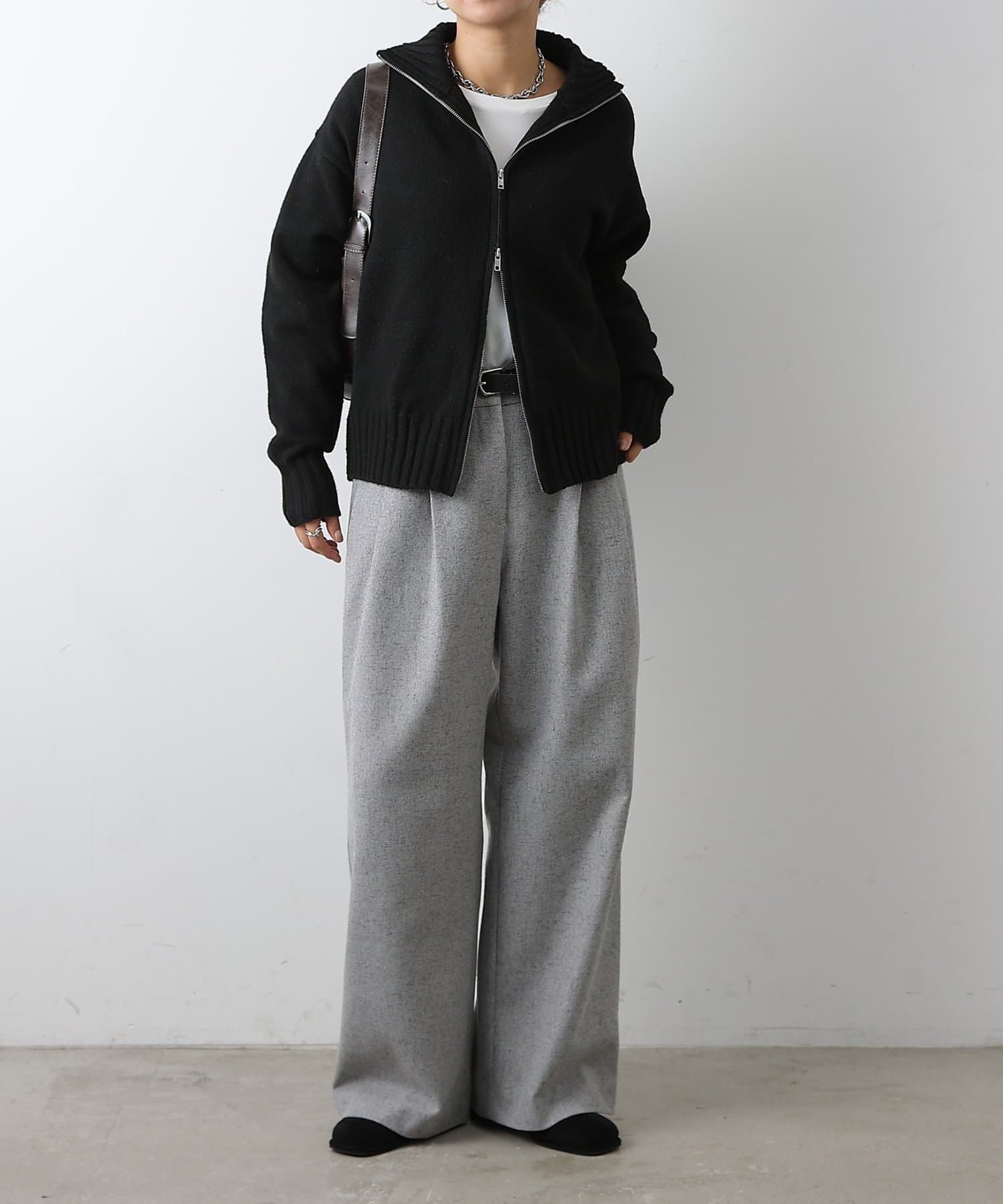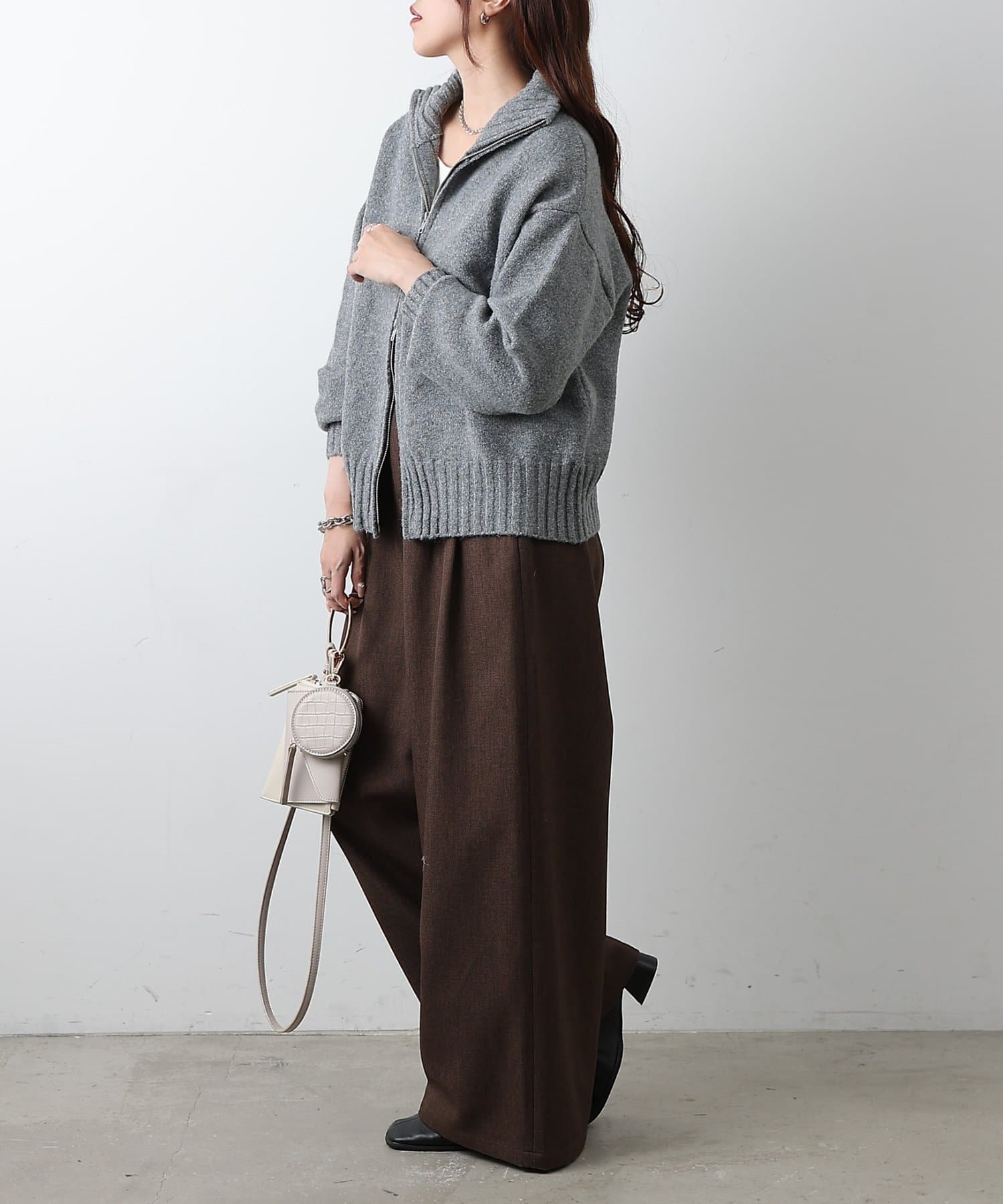 【WEB限定】ウール混スタンドリブWジップカーディガン