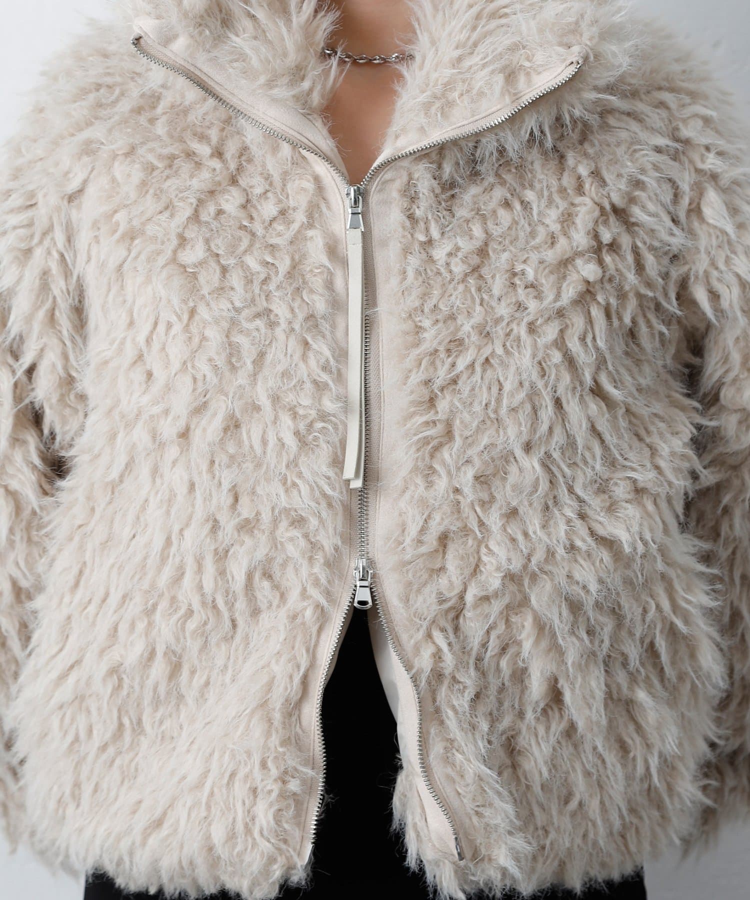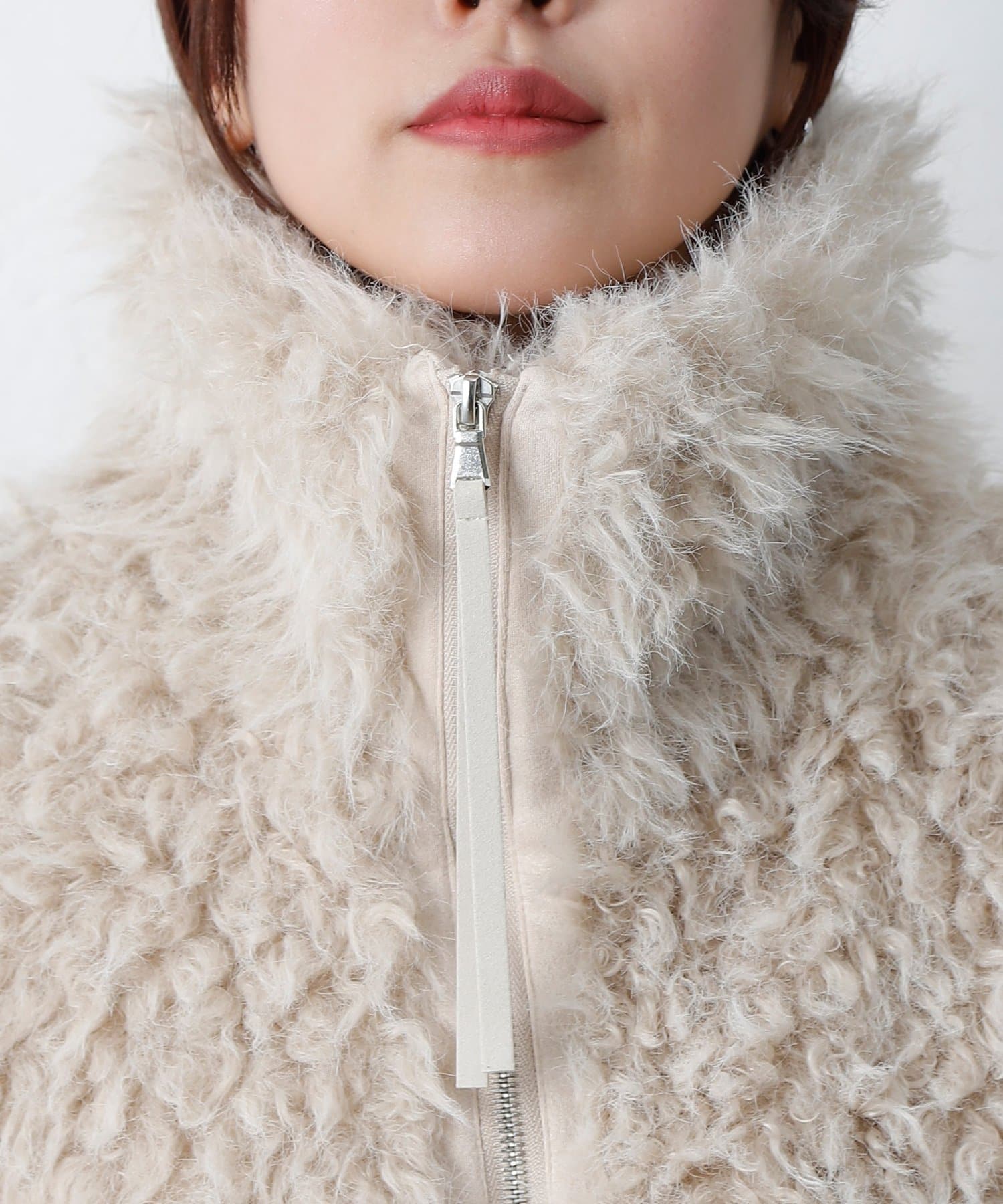 ふわふわのシープファーが贅沢にあしらわれたやさしい肌触りのスタンドブルゾンです。