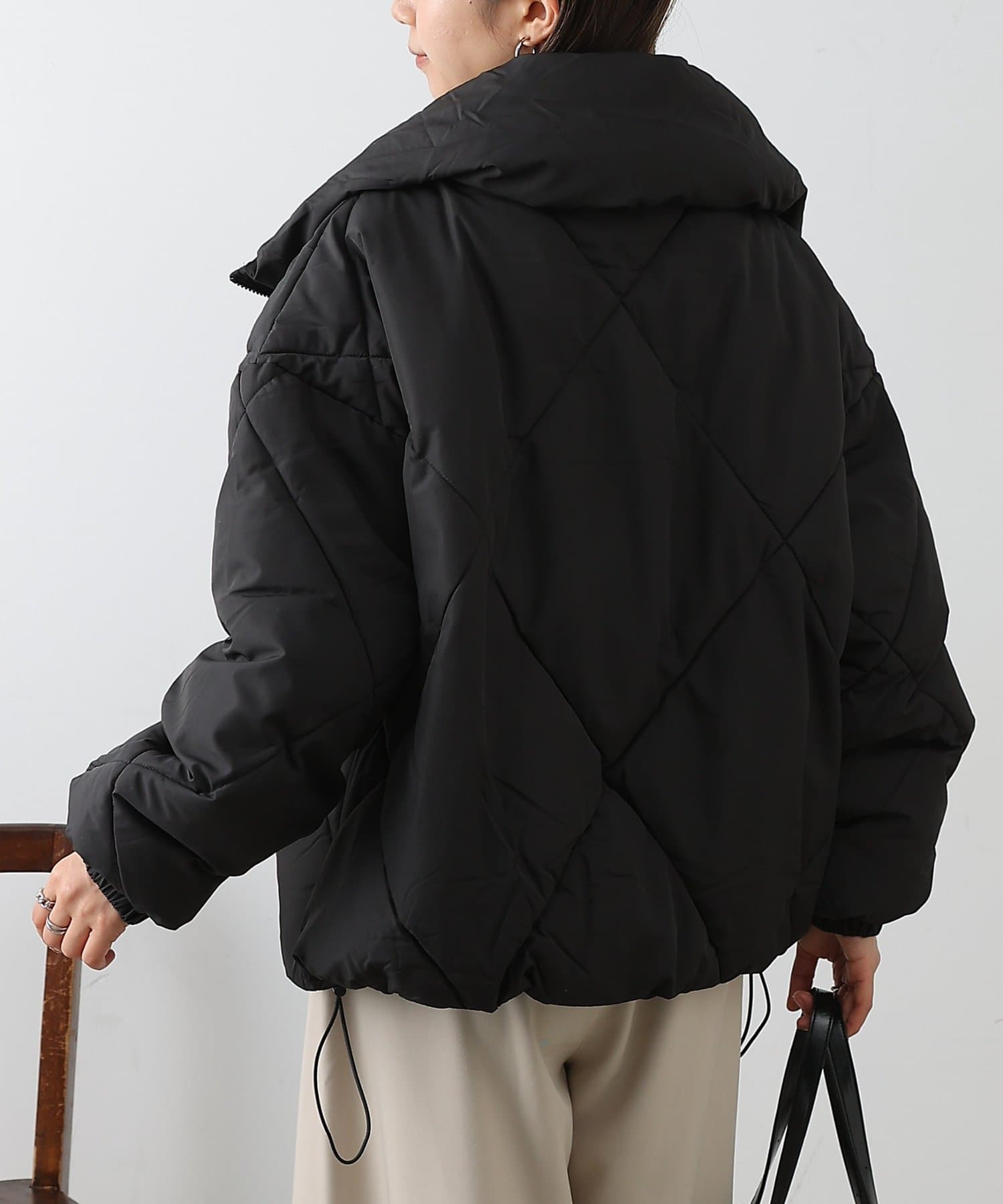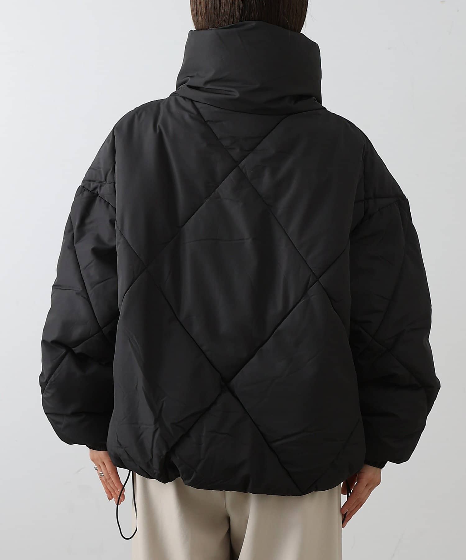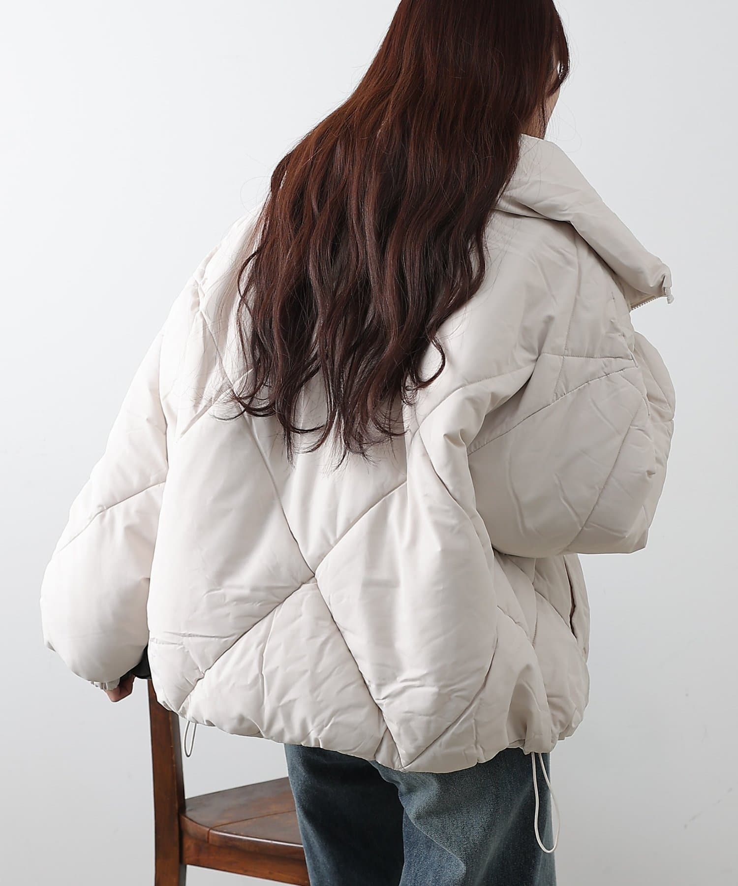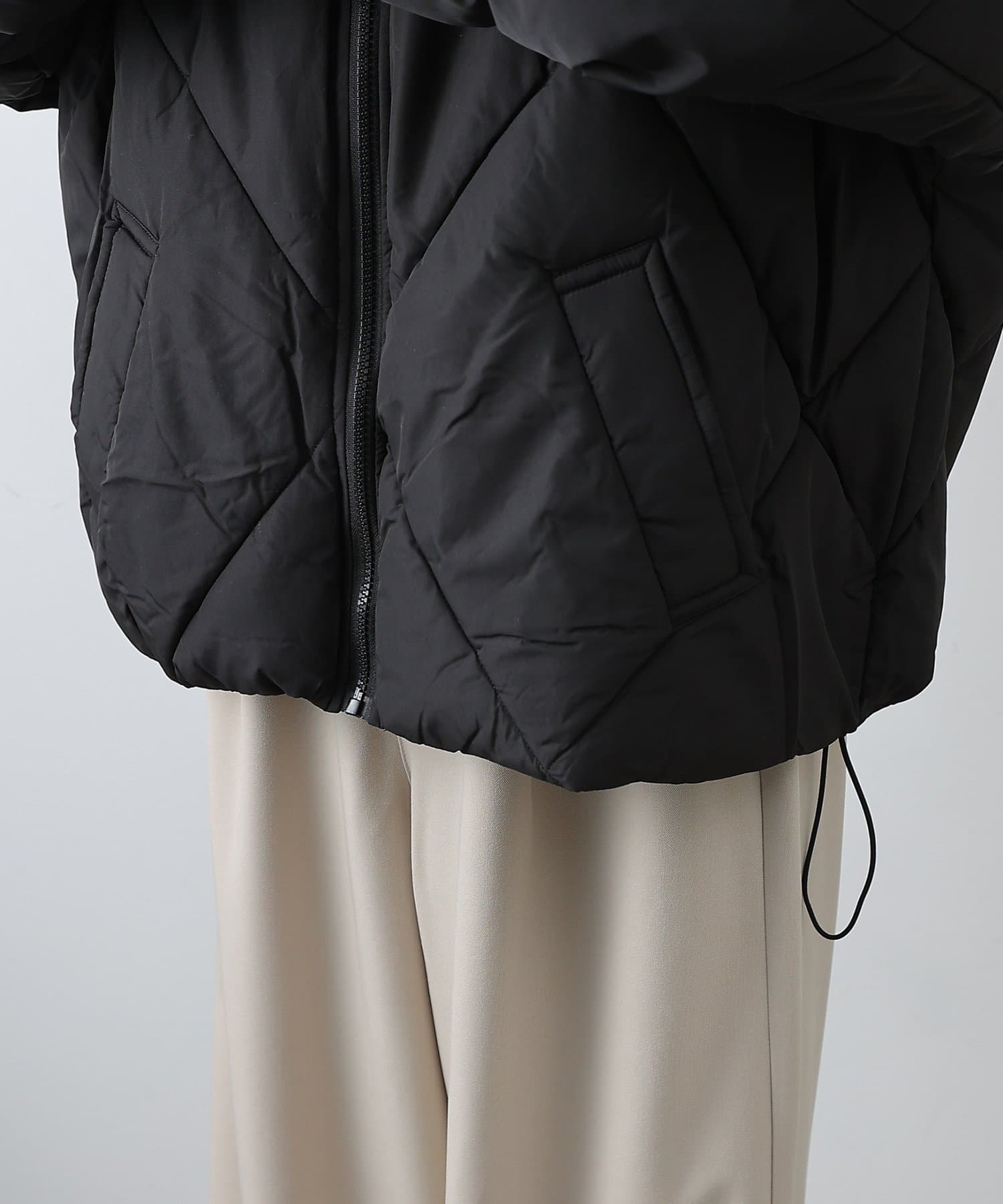 大きめのダイヤキルトの中綿ショートコートです。