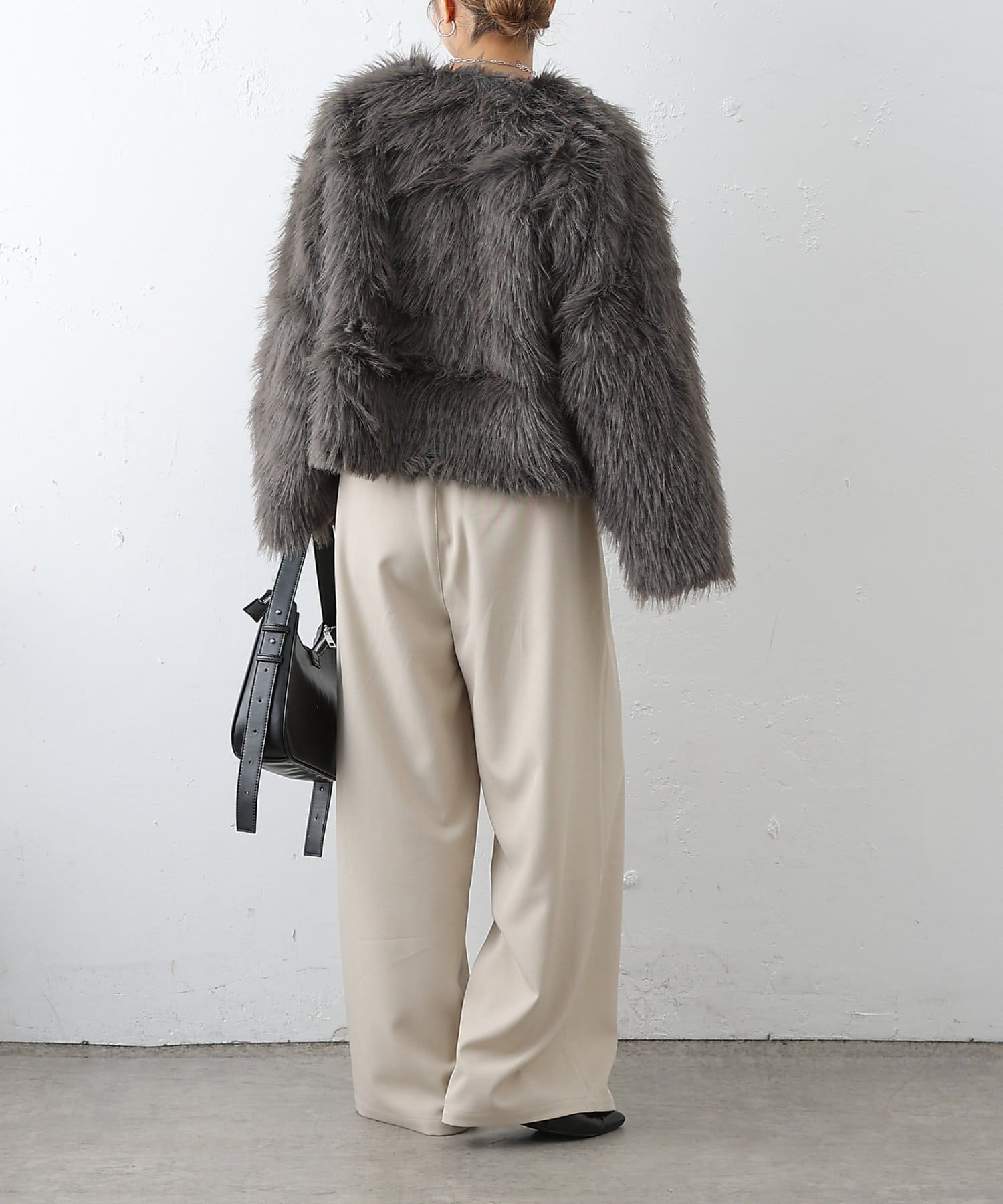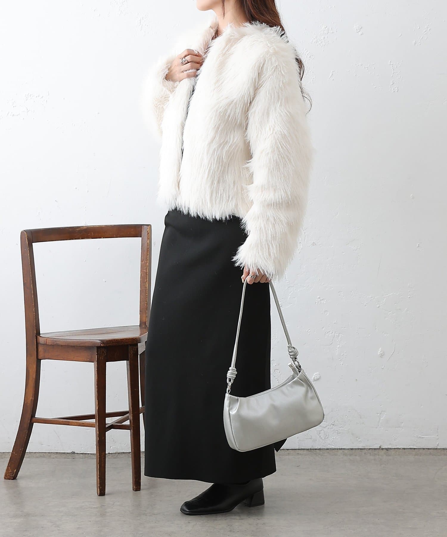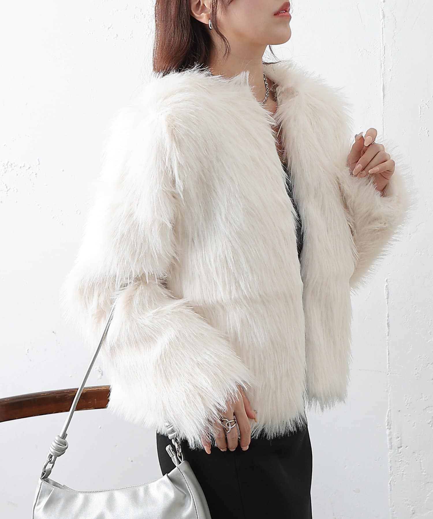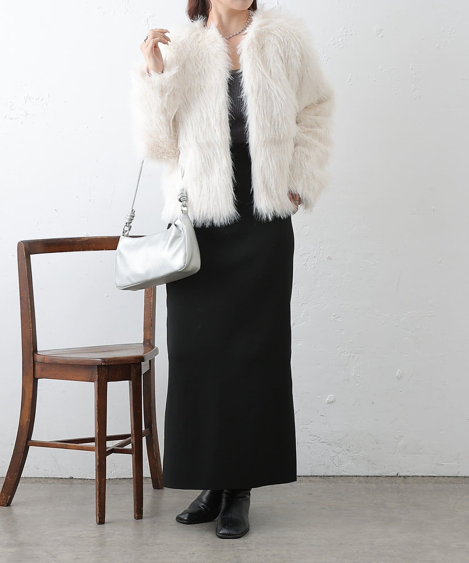 毛足の長いロングファーが、大人の女性らしい上品さと遊び心のあるトレンド感を演出します。