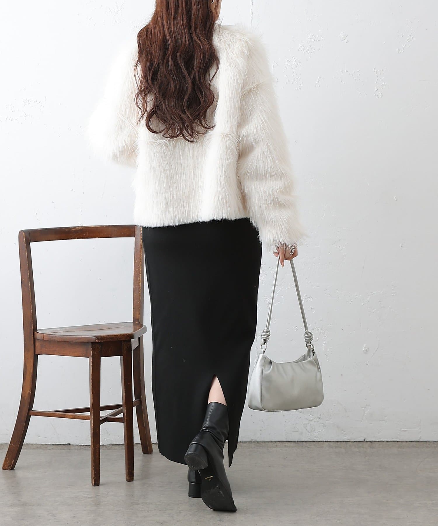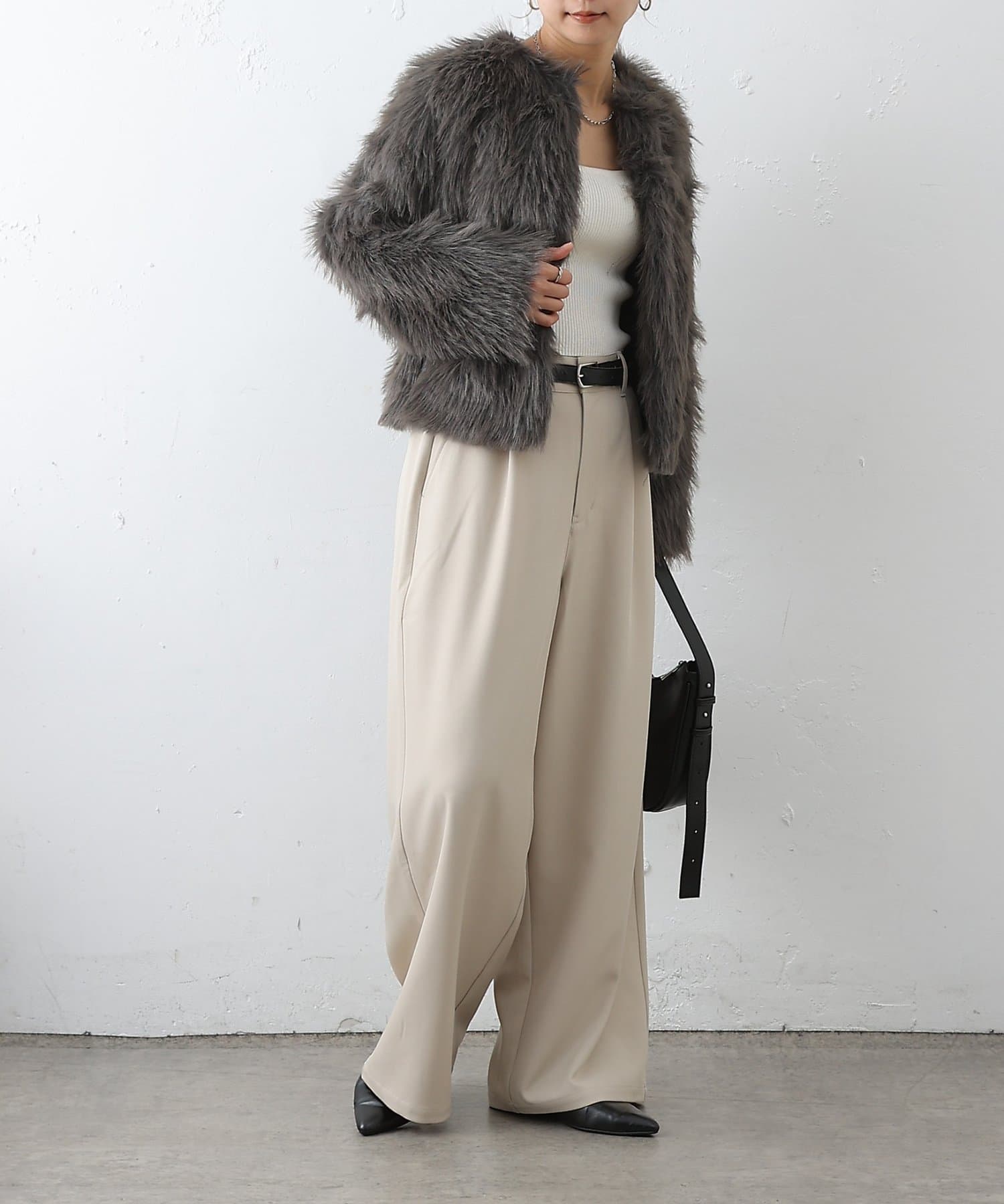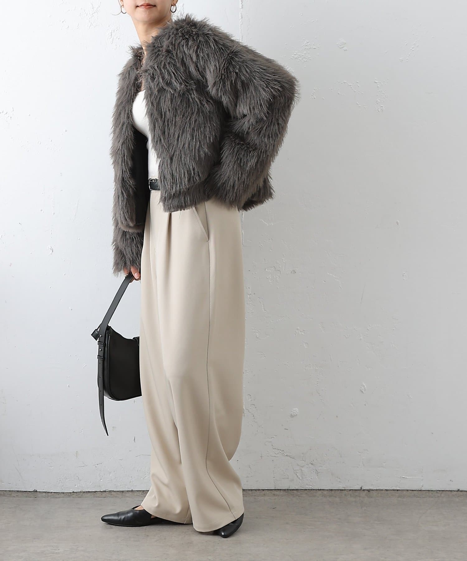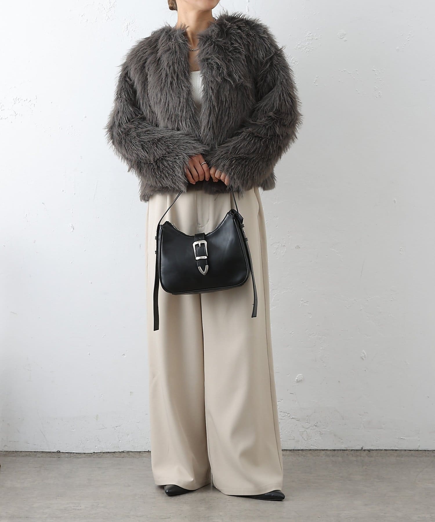 毛足の長いロングファーが、大人の女性らしい上品さと遊び心のあるトレンド感を演出します。