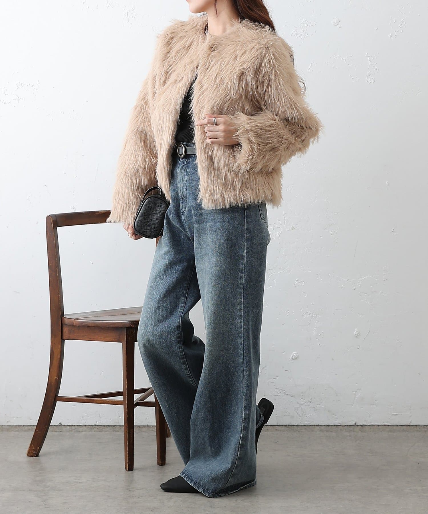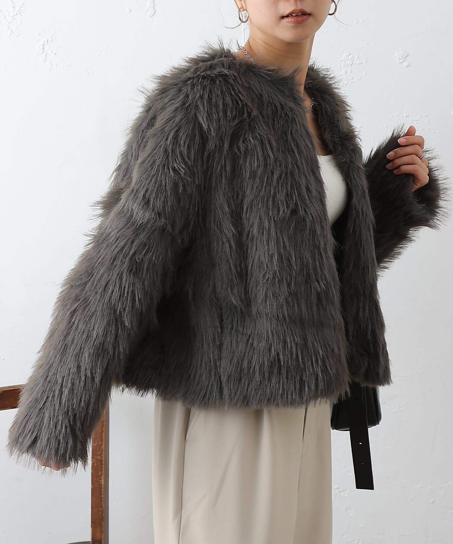 • COLONY 2139(コロニー トゥーワンスリーナイン) ロングファーノーカラーショートコート