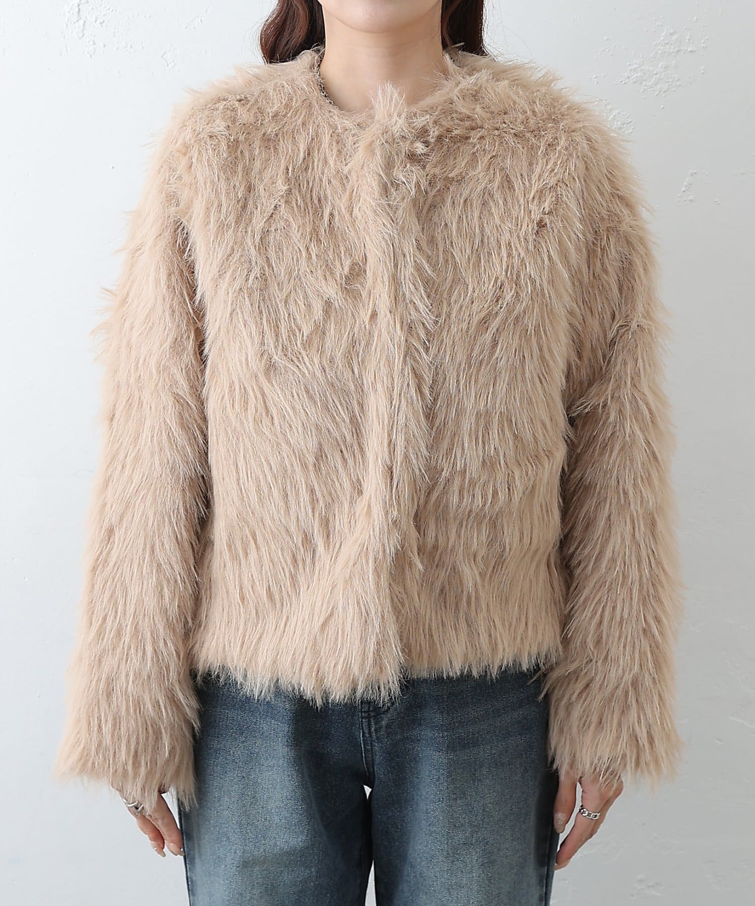 TOP > COLONY 2139 > レディース > ジャケット/アウター > その他ジャケット/ブルゾン > ロングファーノーカラーショートコート