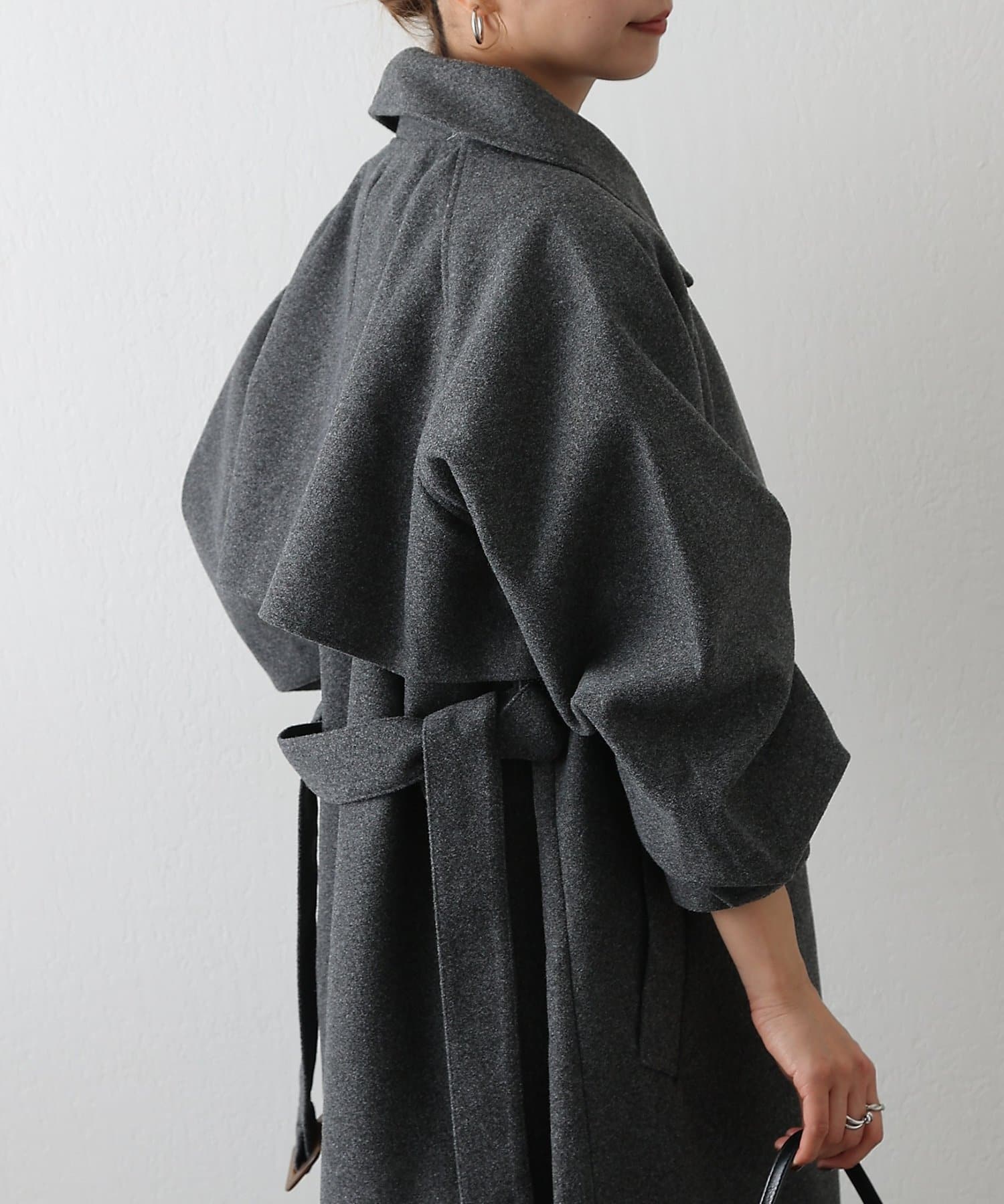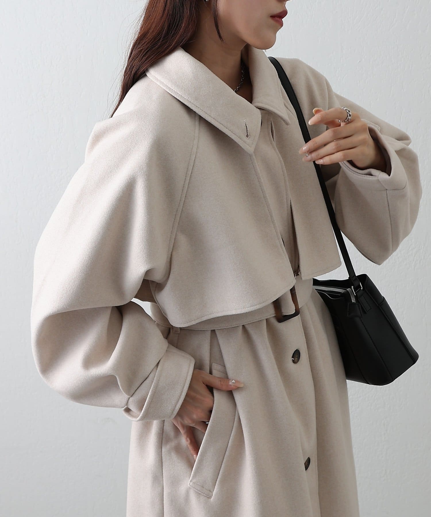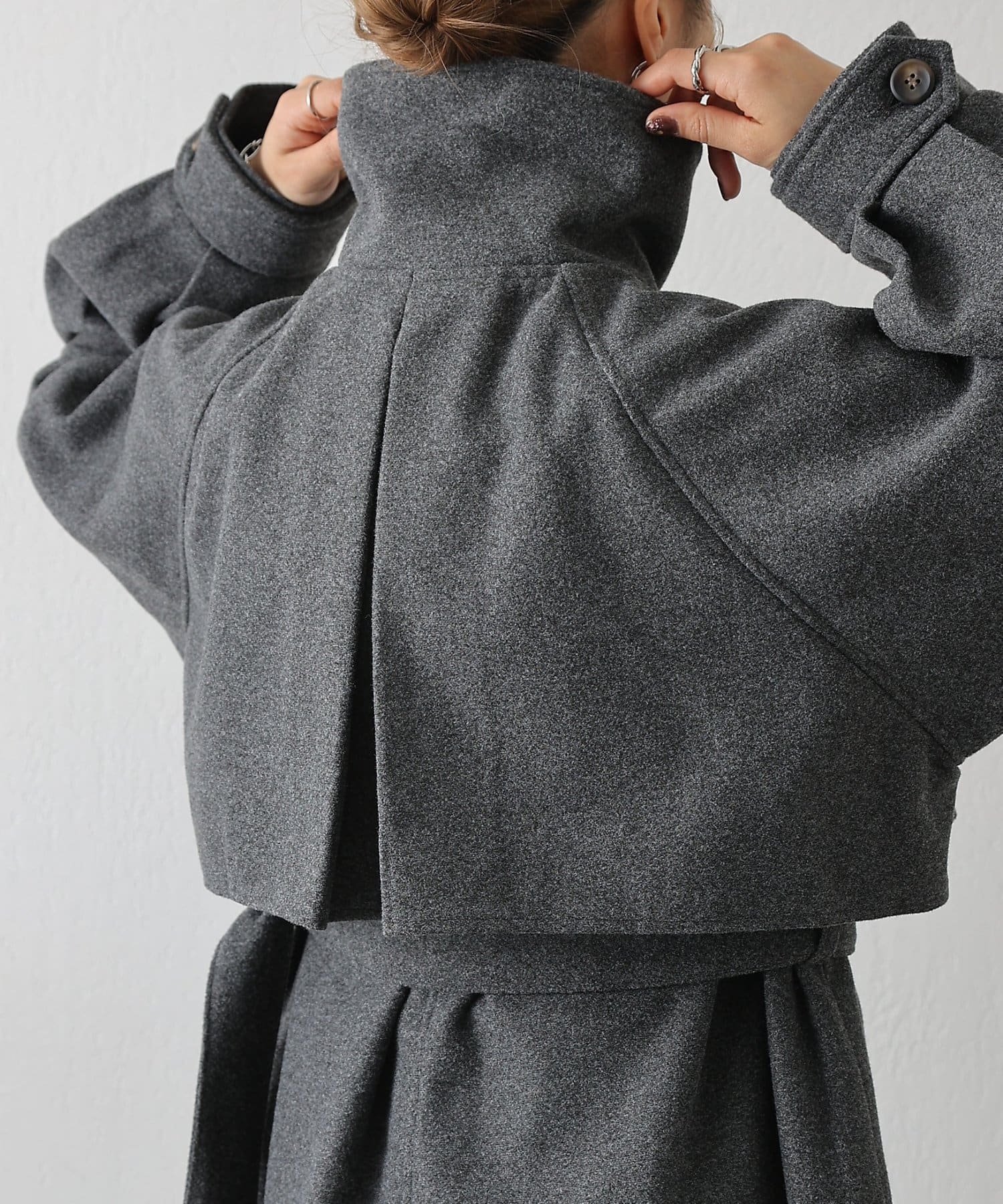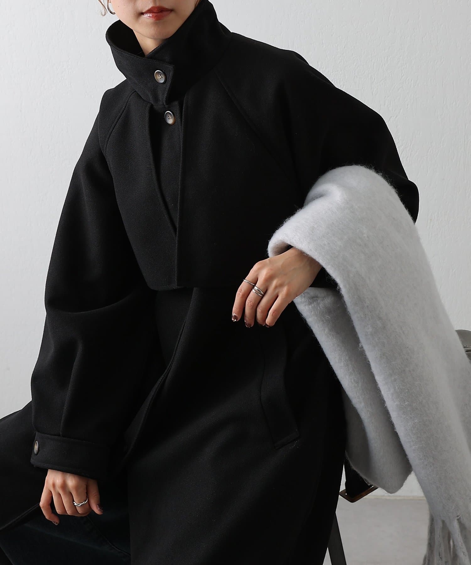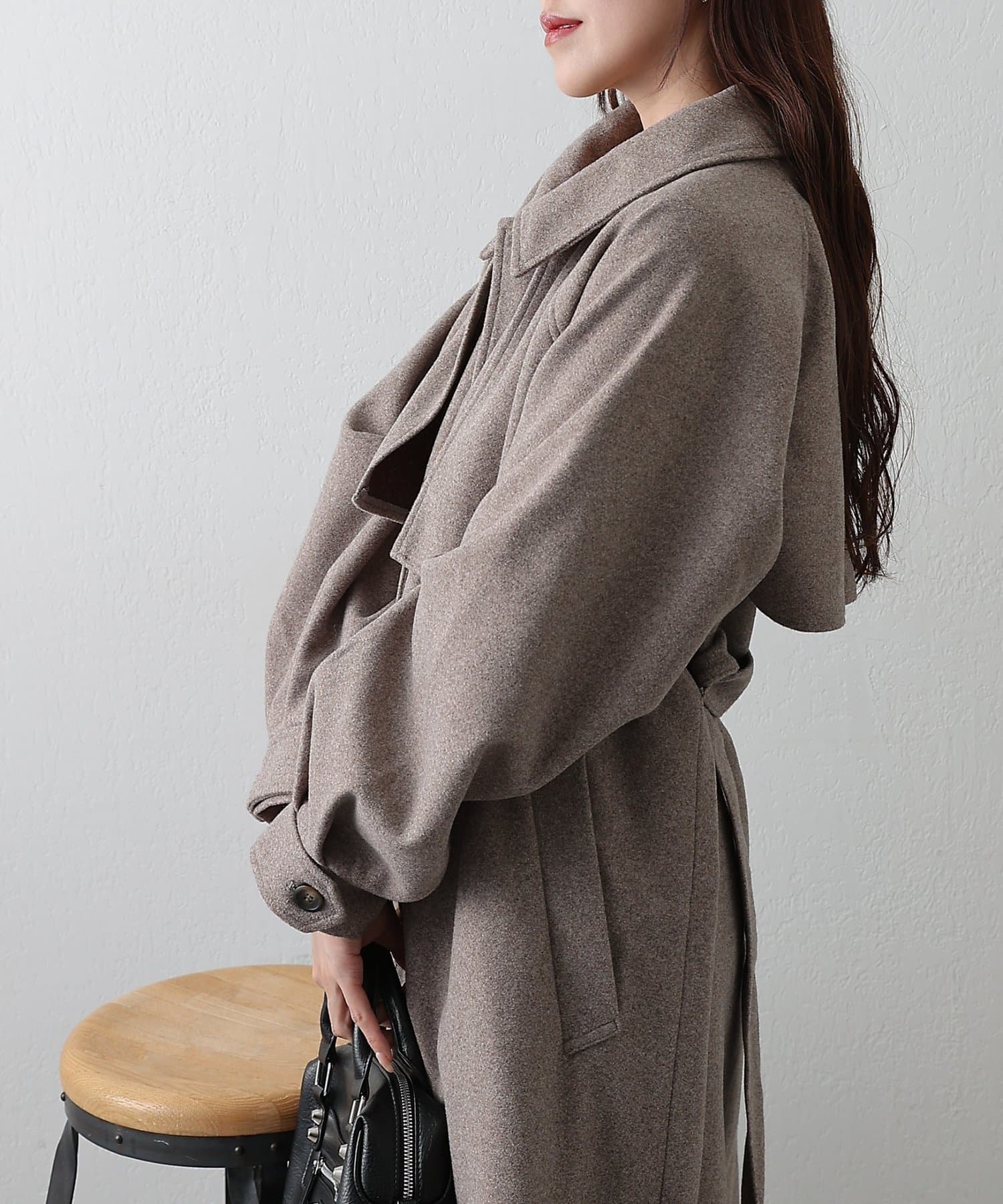 その日の気分に合わせて衿を寝かせて上品に、ハイネックにして防寒&シャープにと印象を自在に変えられるデザインがポイントです。