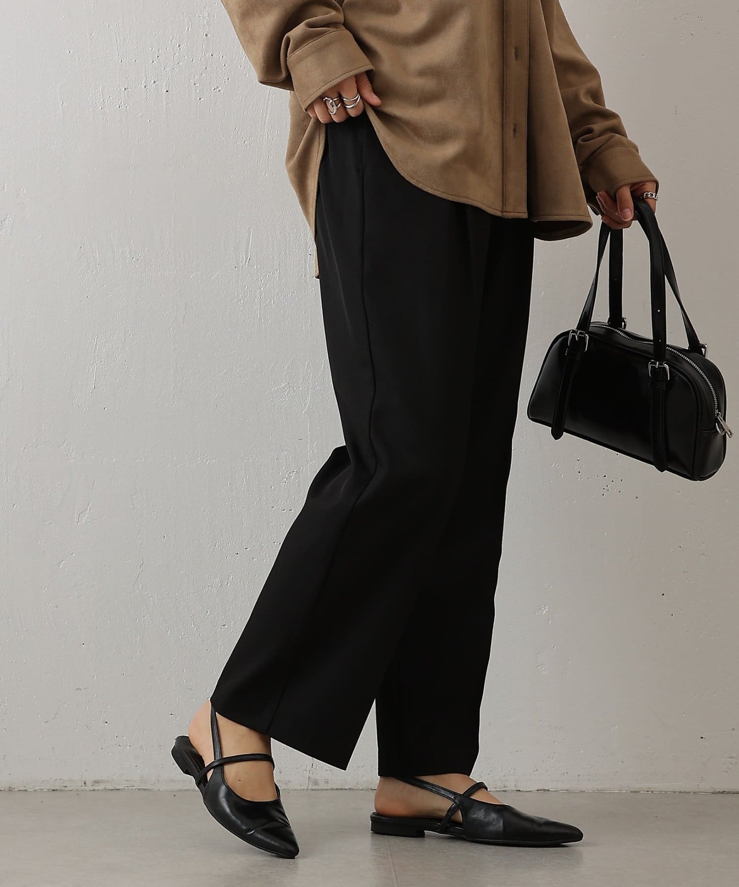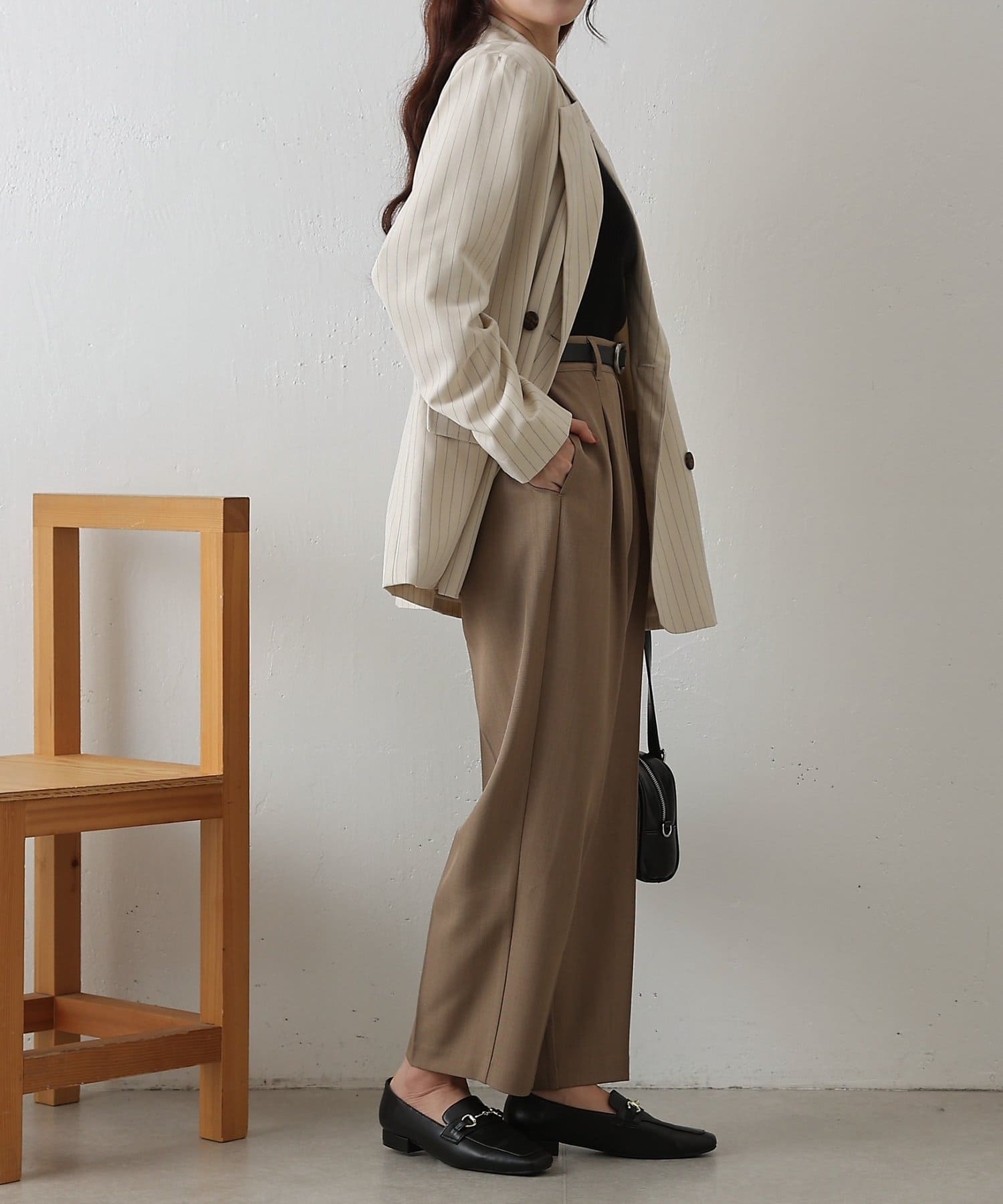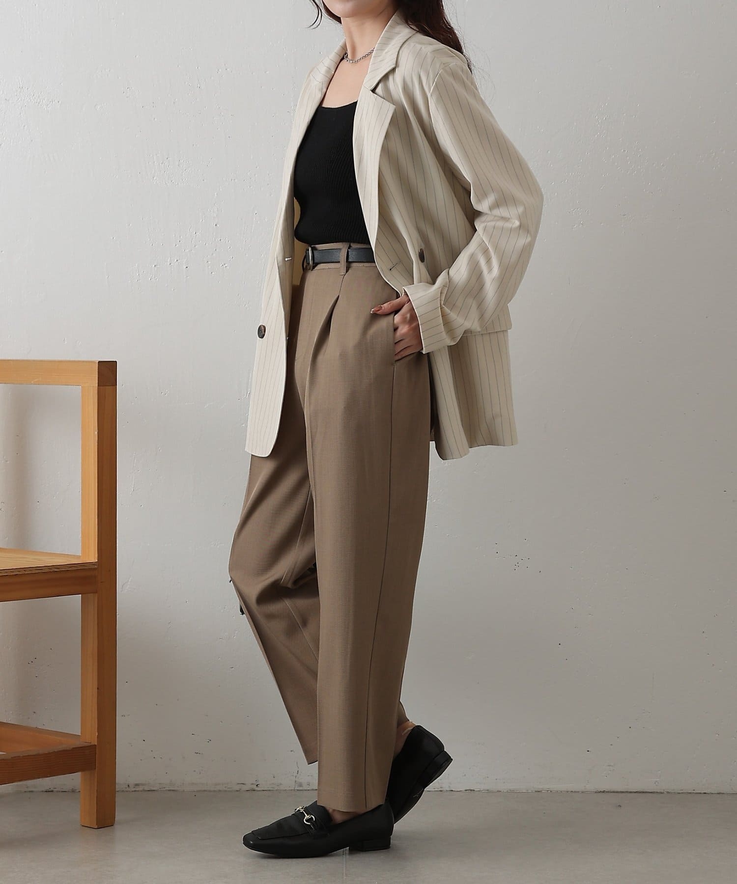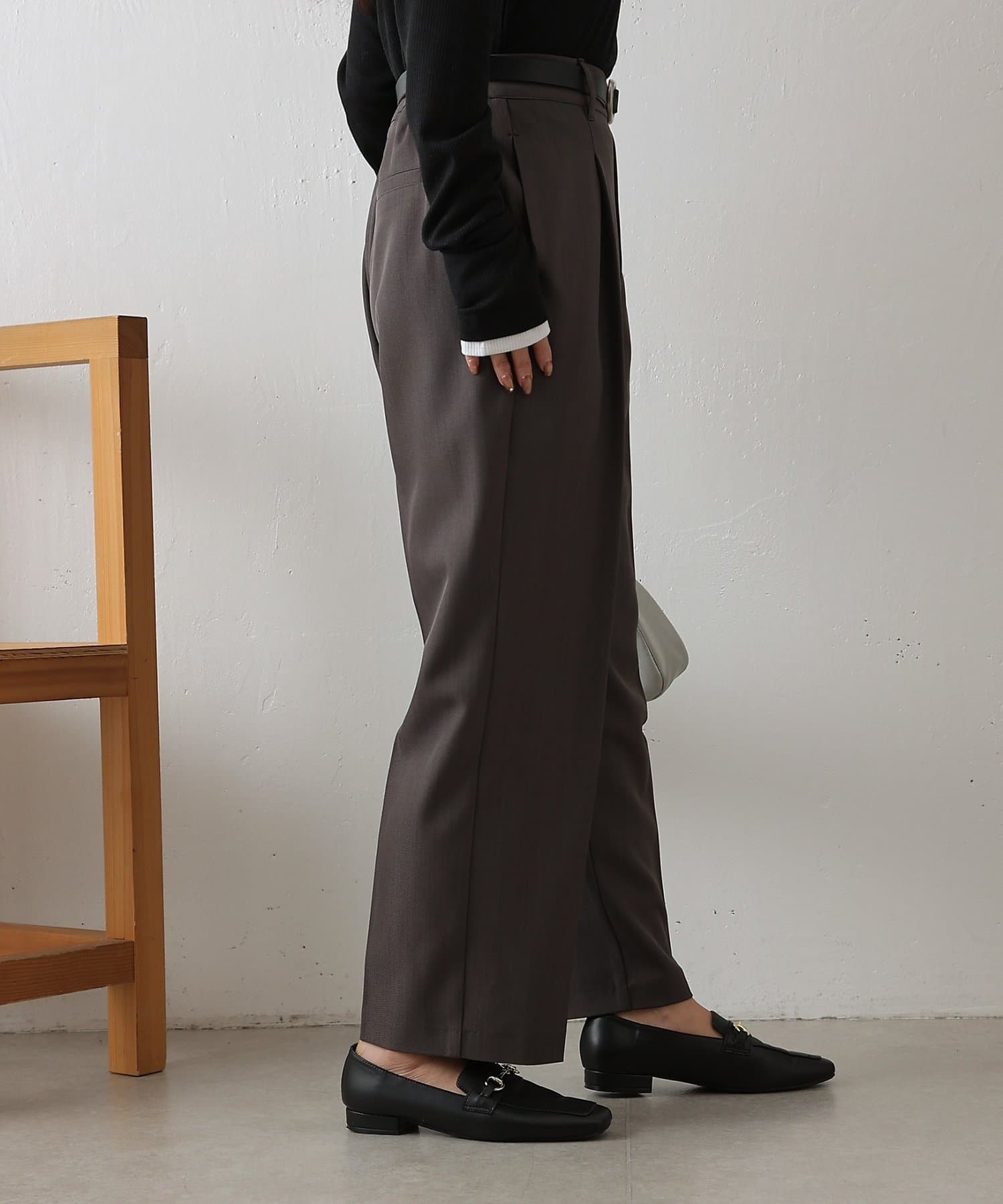 腰まわりから太ももにかけて程よくゆとりを持たせつつ裾に向かって細くなるシルエットで、きちんと感と履きやすさを両立しました。
