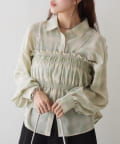 絶妙なシアー感がかわいいチャックシャツとビスチェのセットアイテムです。