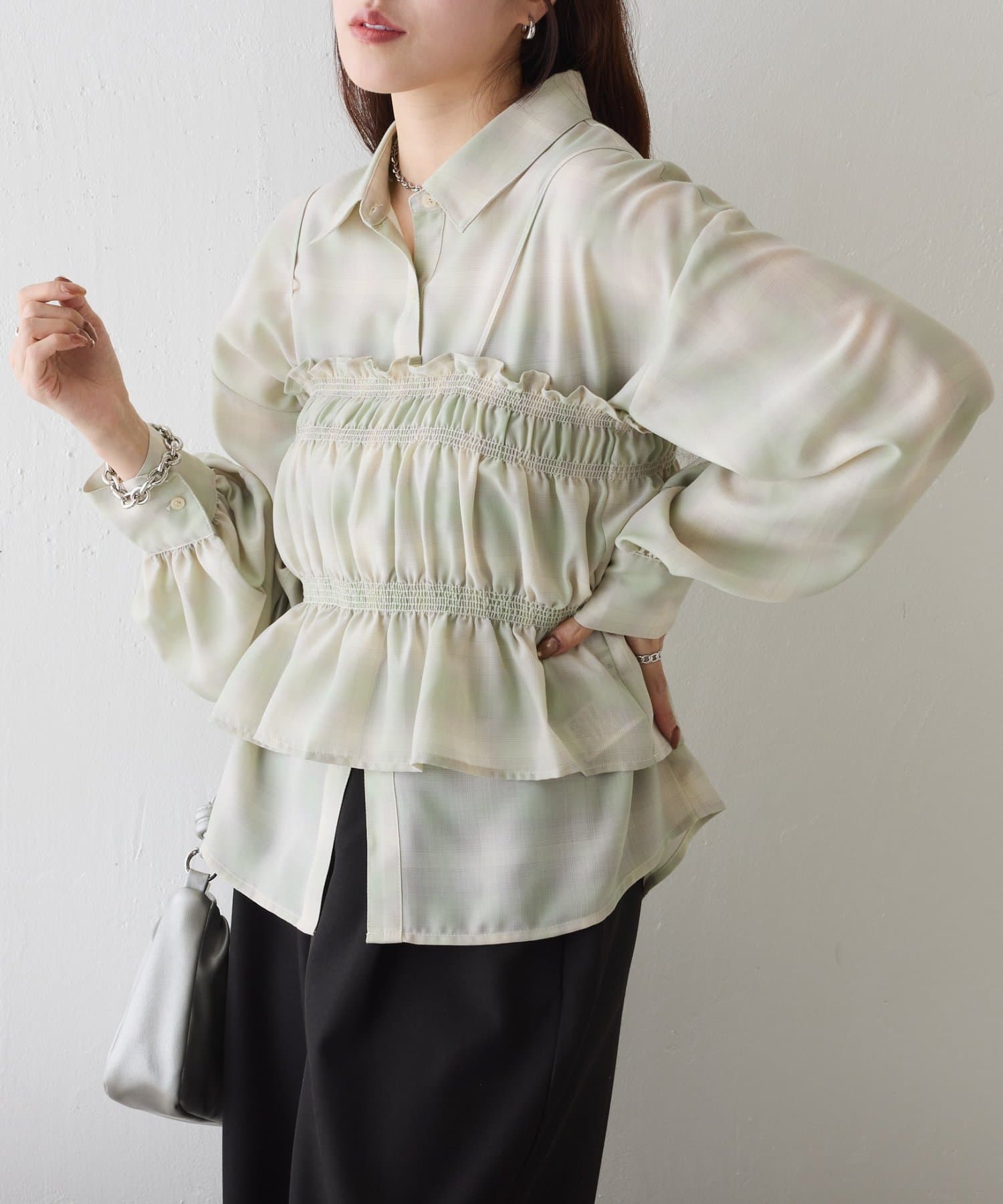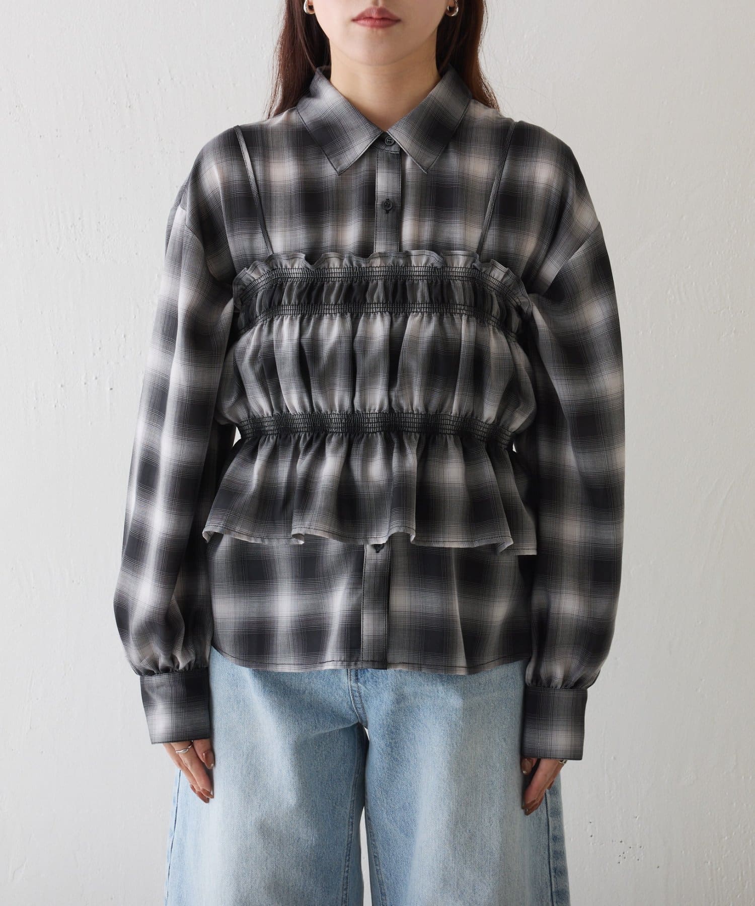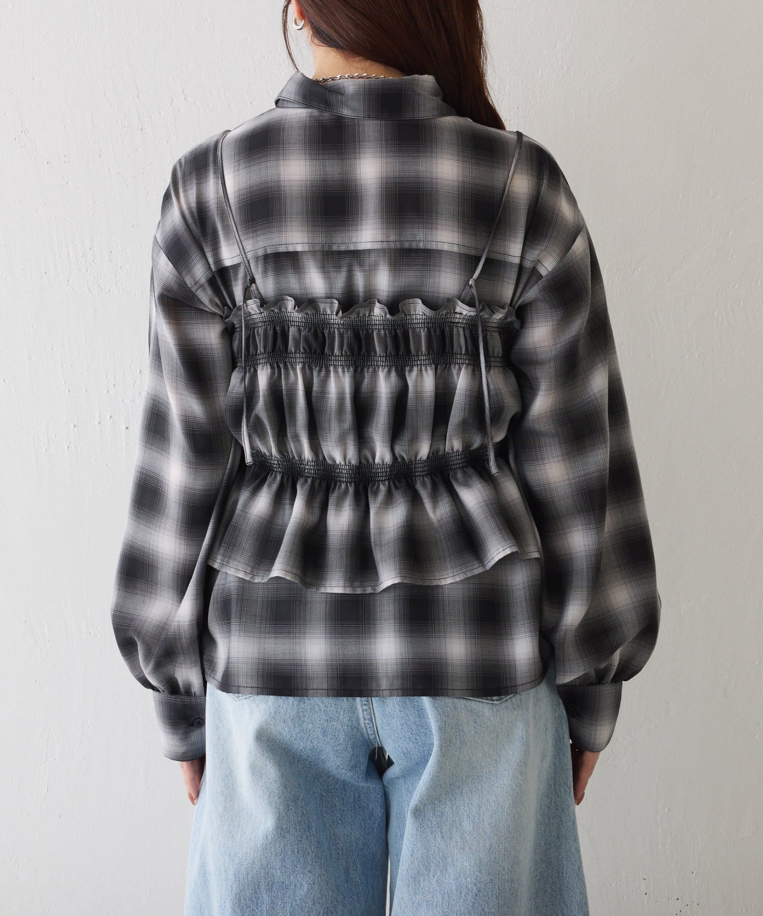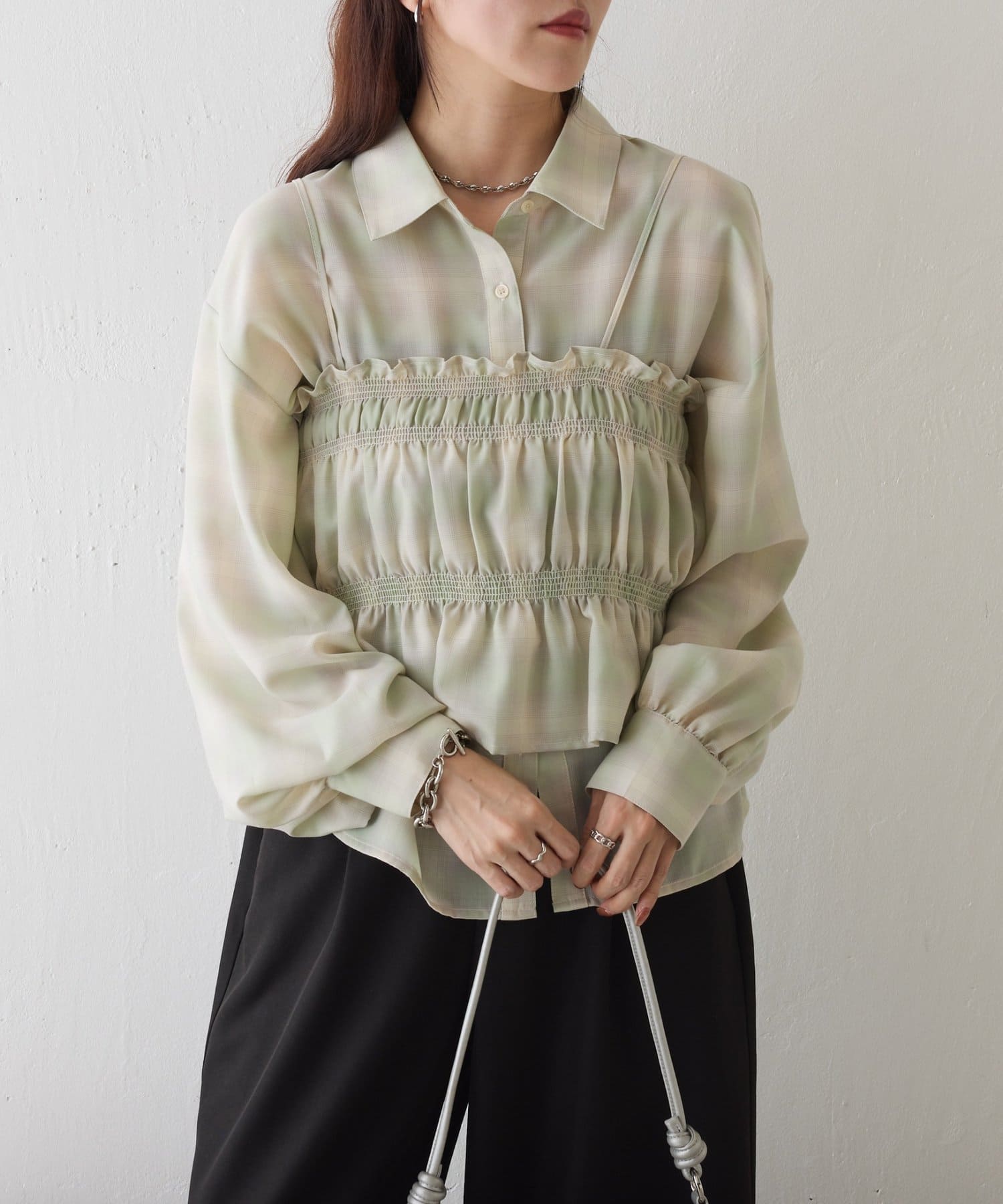 【WEB限定】オンブレチェックビスチェセットシャツ