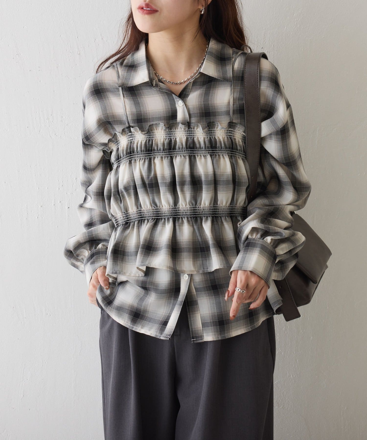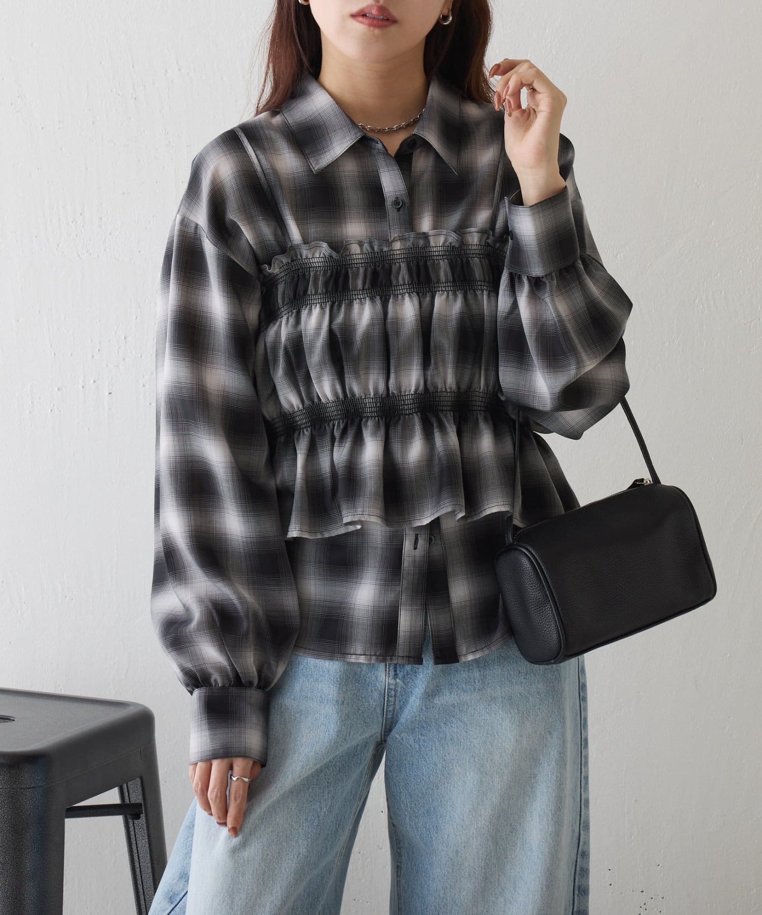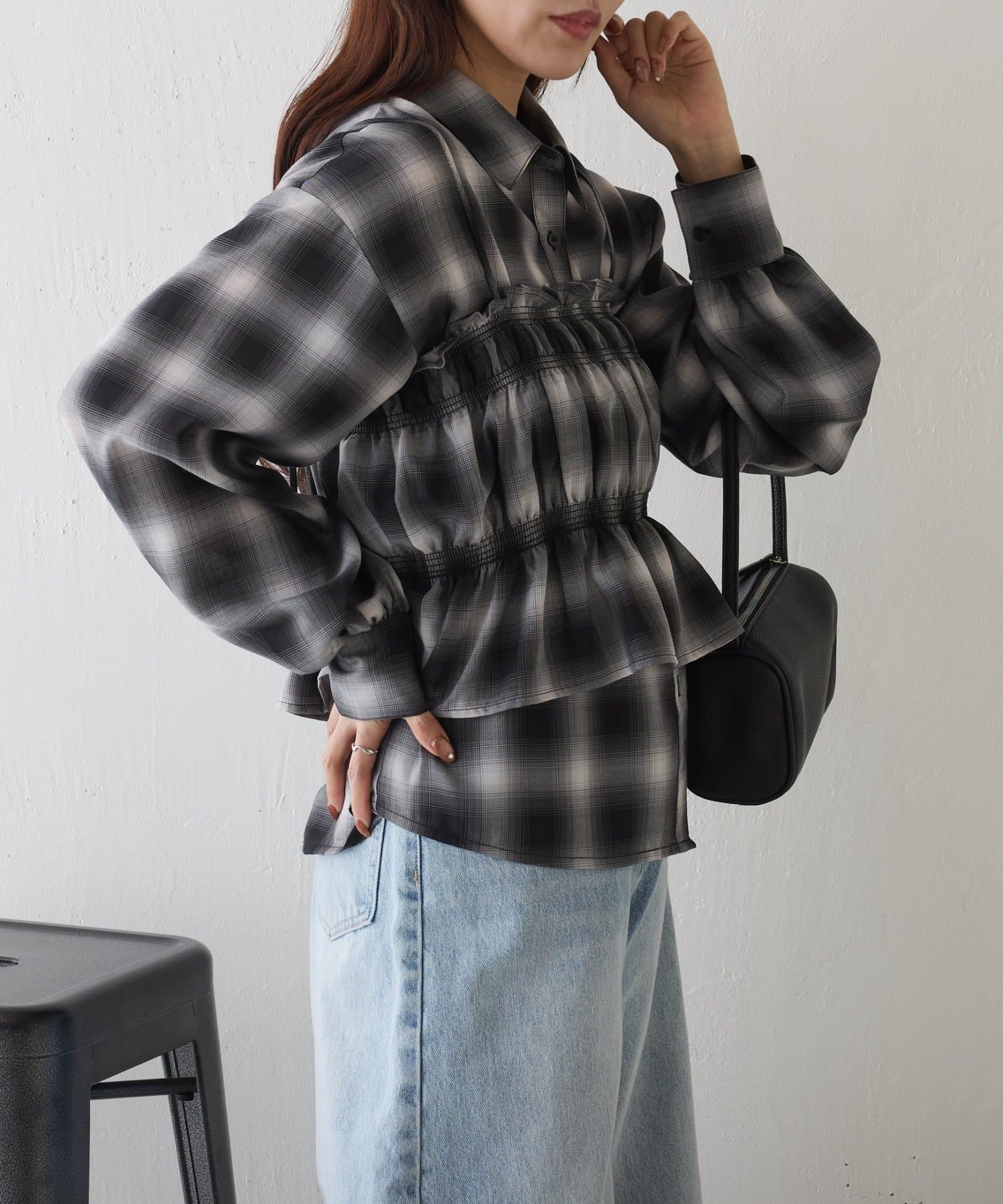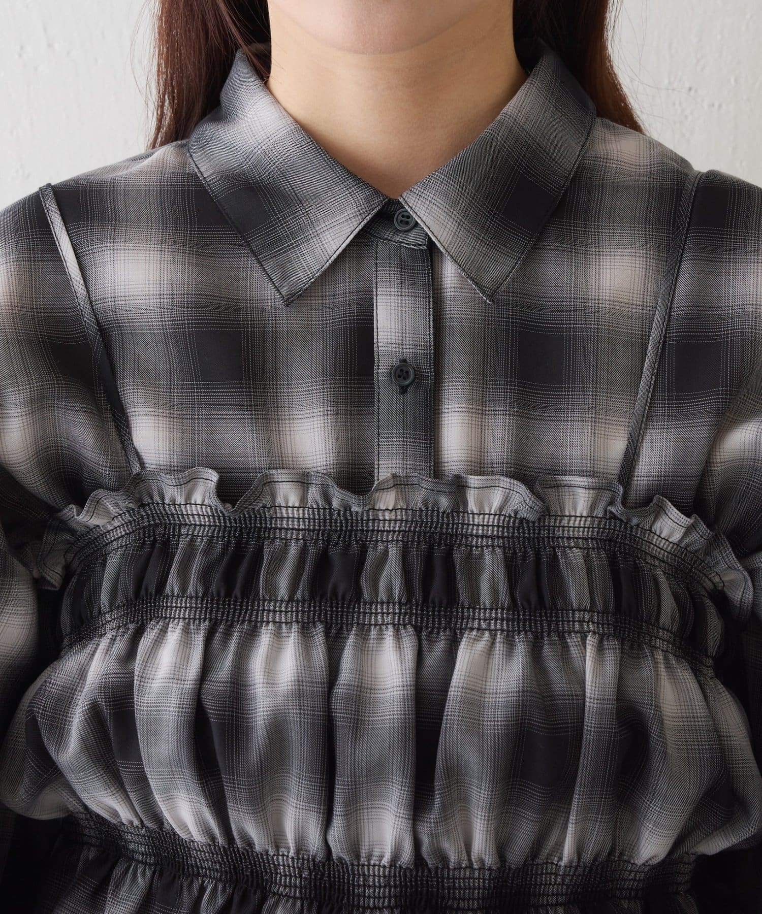 【WEB限定】オンブレチェックビスチェセットシャツ