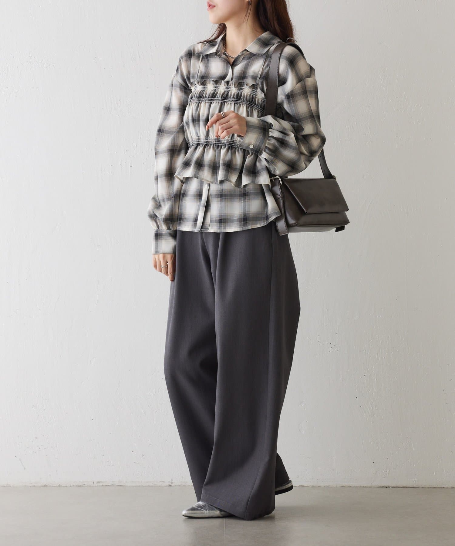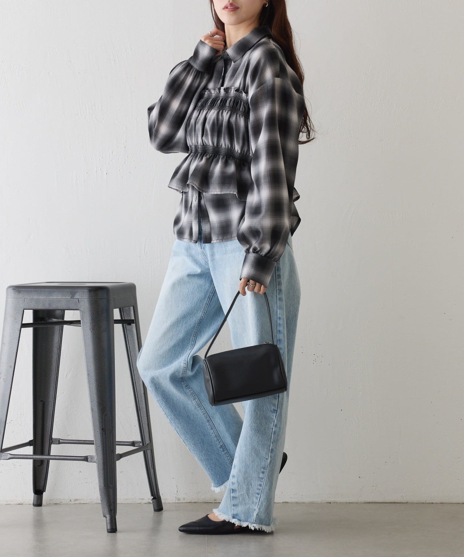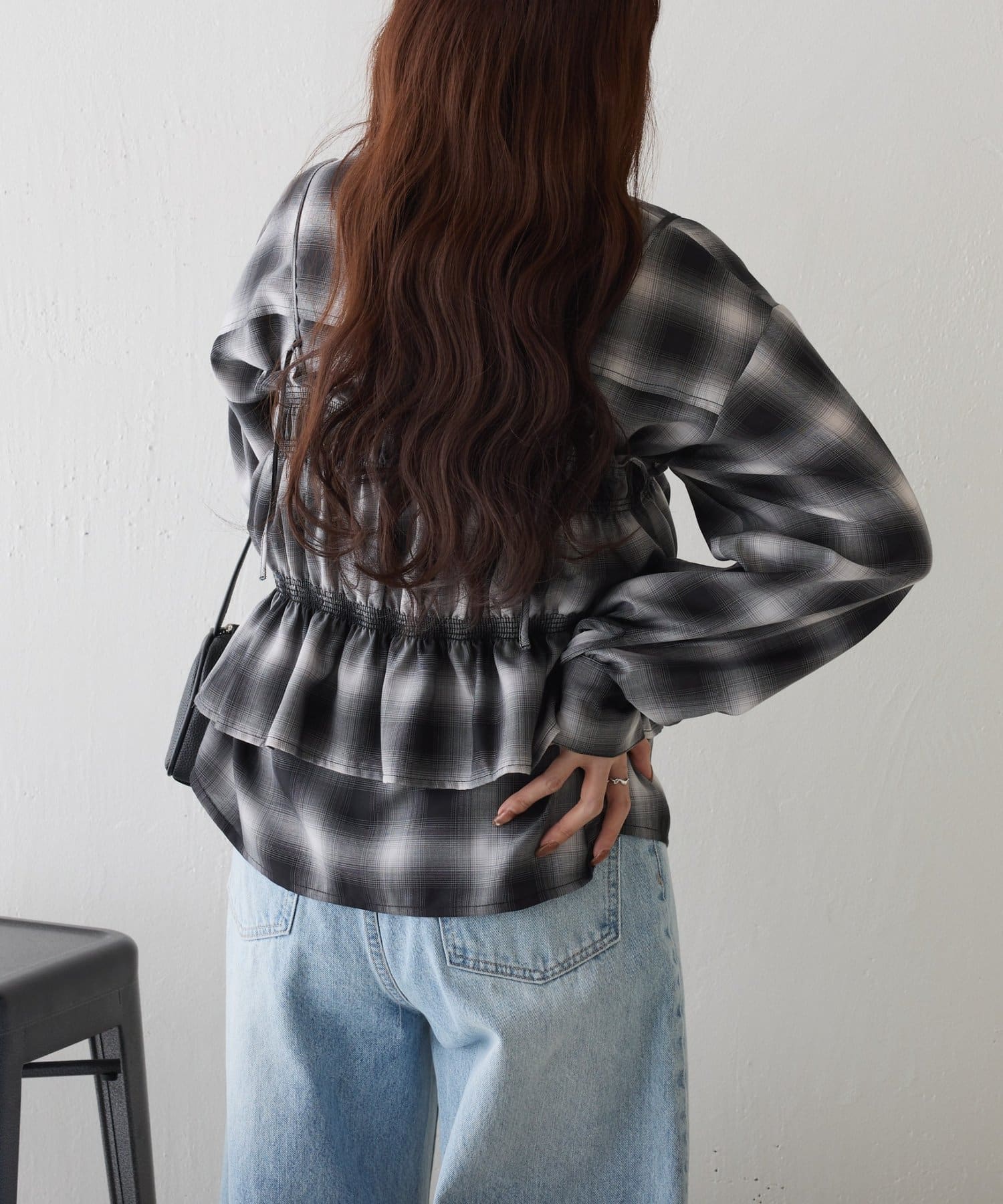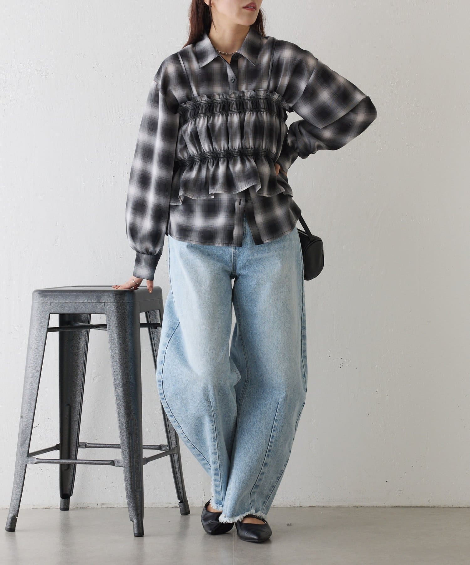 【WEB限定】オンブレチェックビスチェセットシャツ