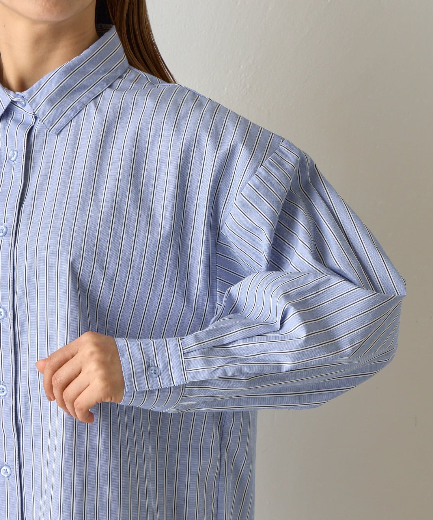 大きめなサイズ感がかわいいビッグシルエットのストライプシャツです。
