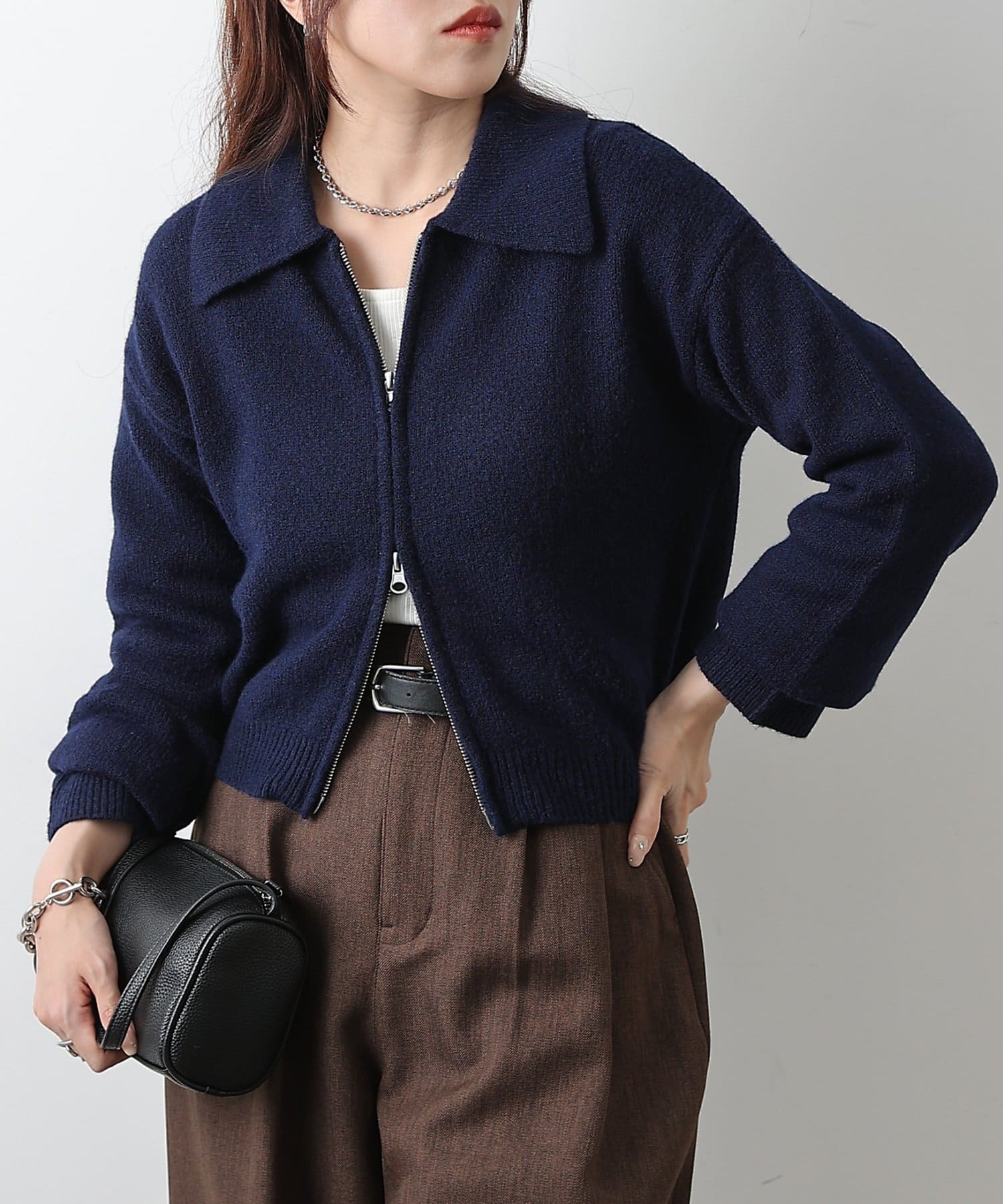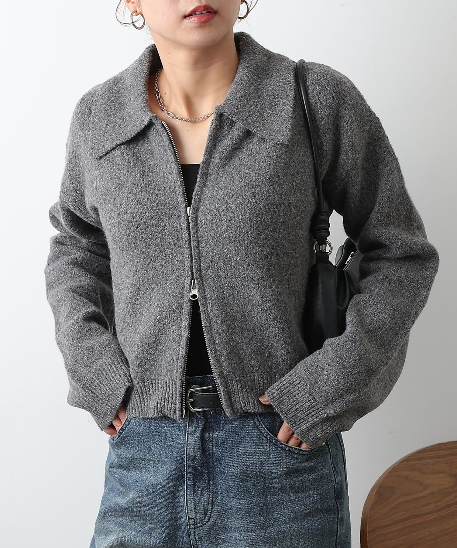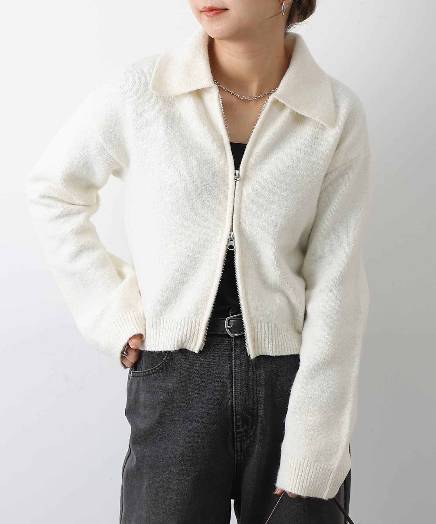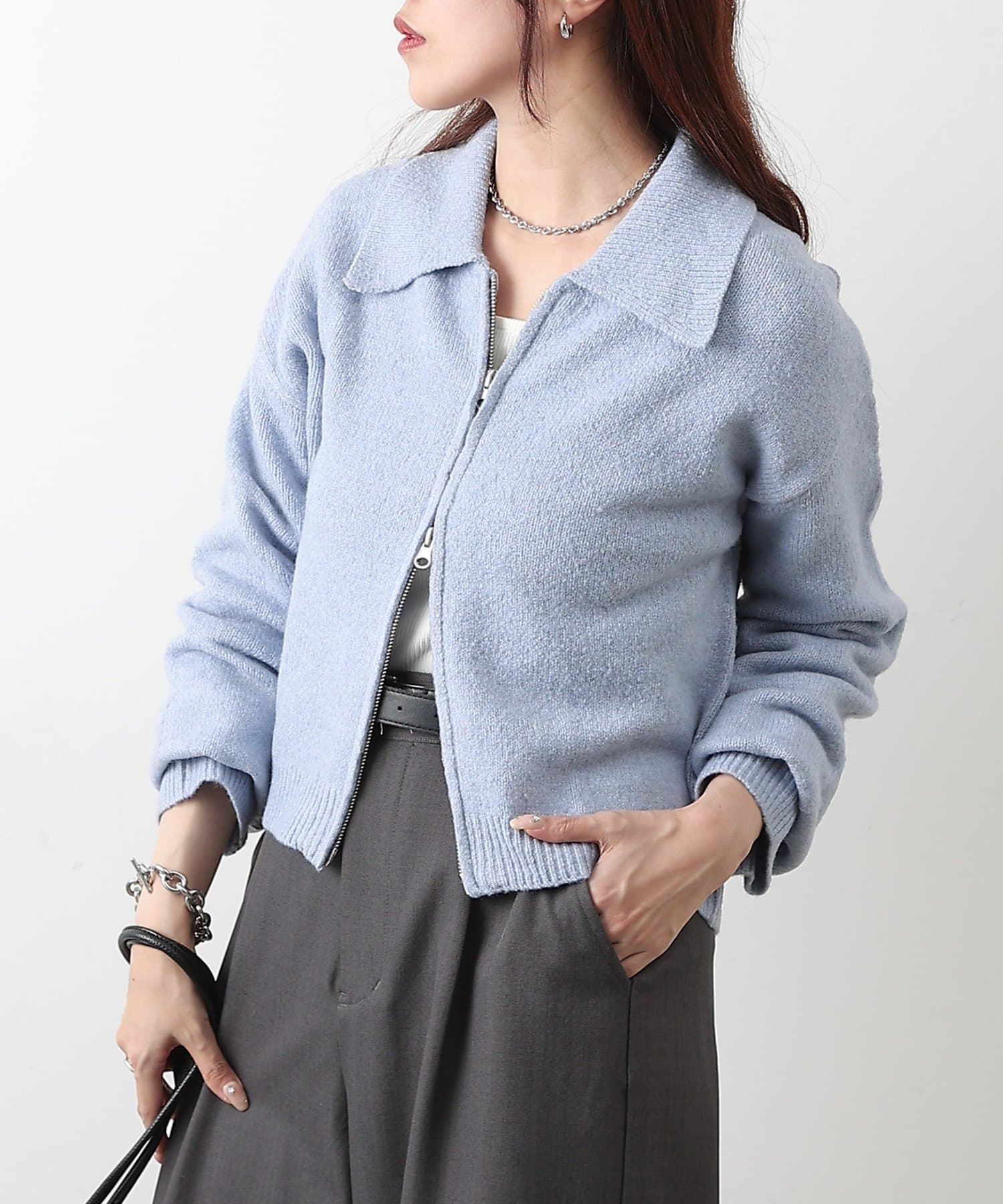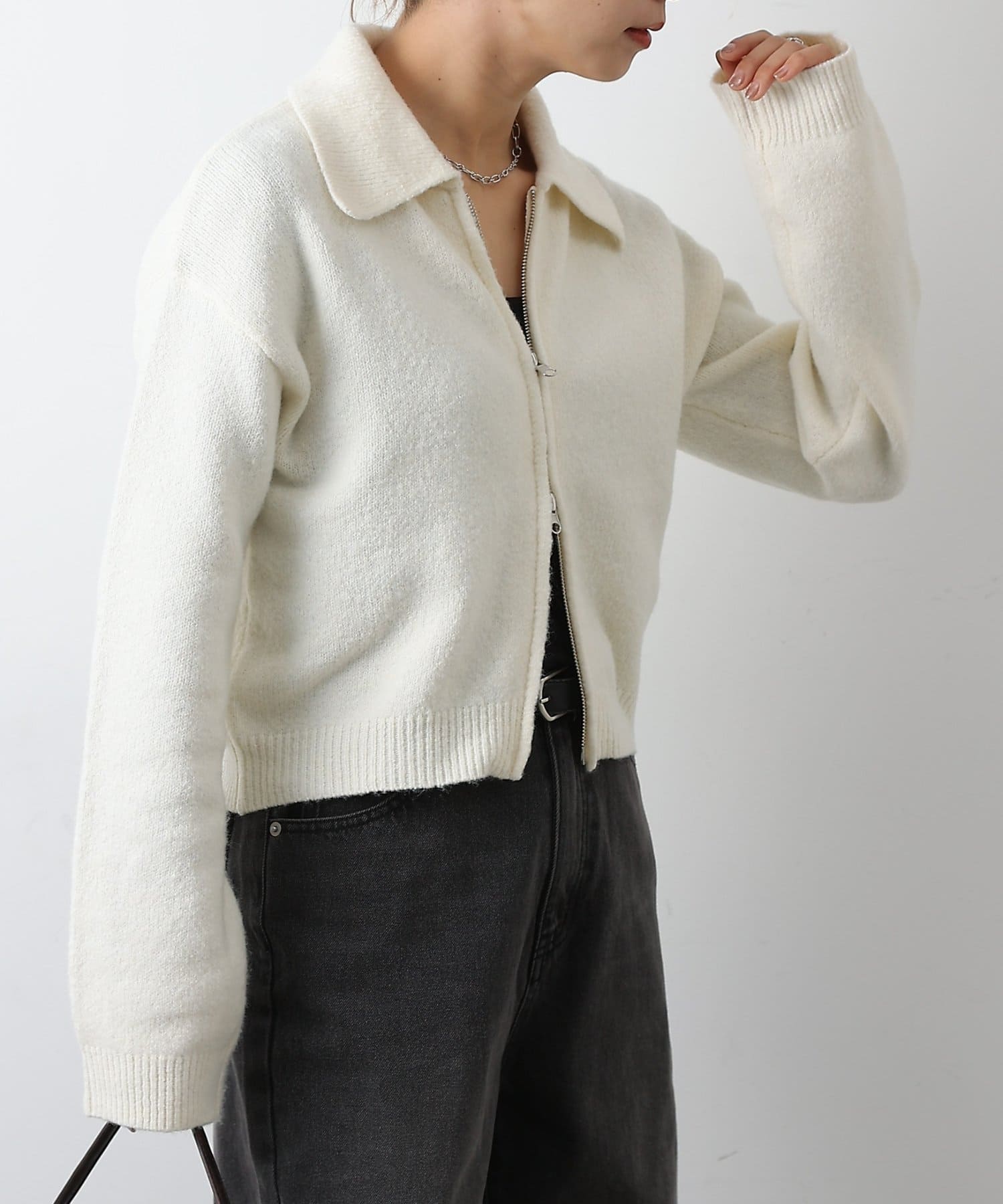 ふんわりとした柔らかな風合いが魅力のジップカーディガン。