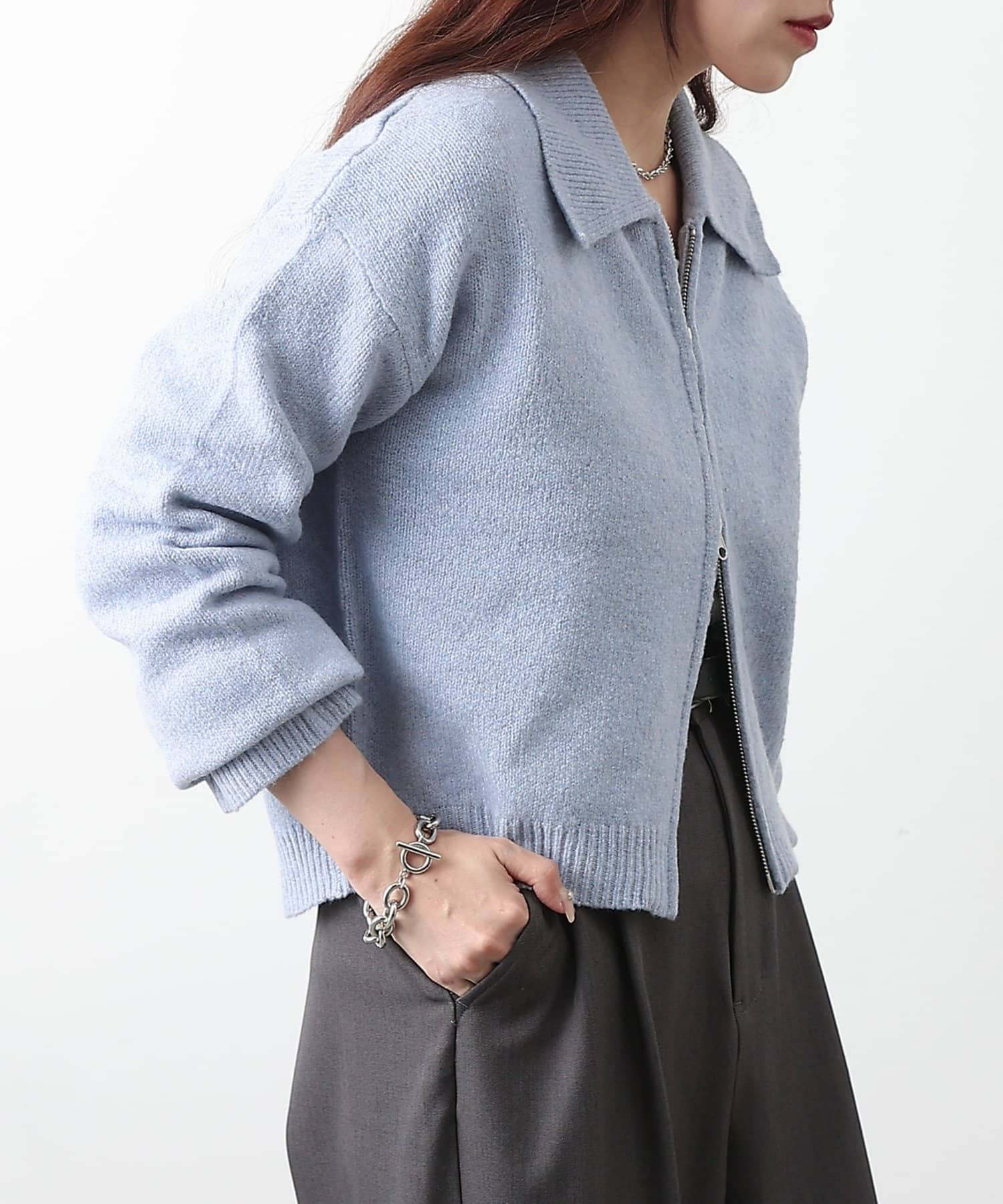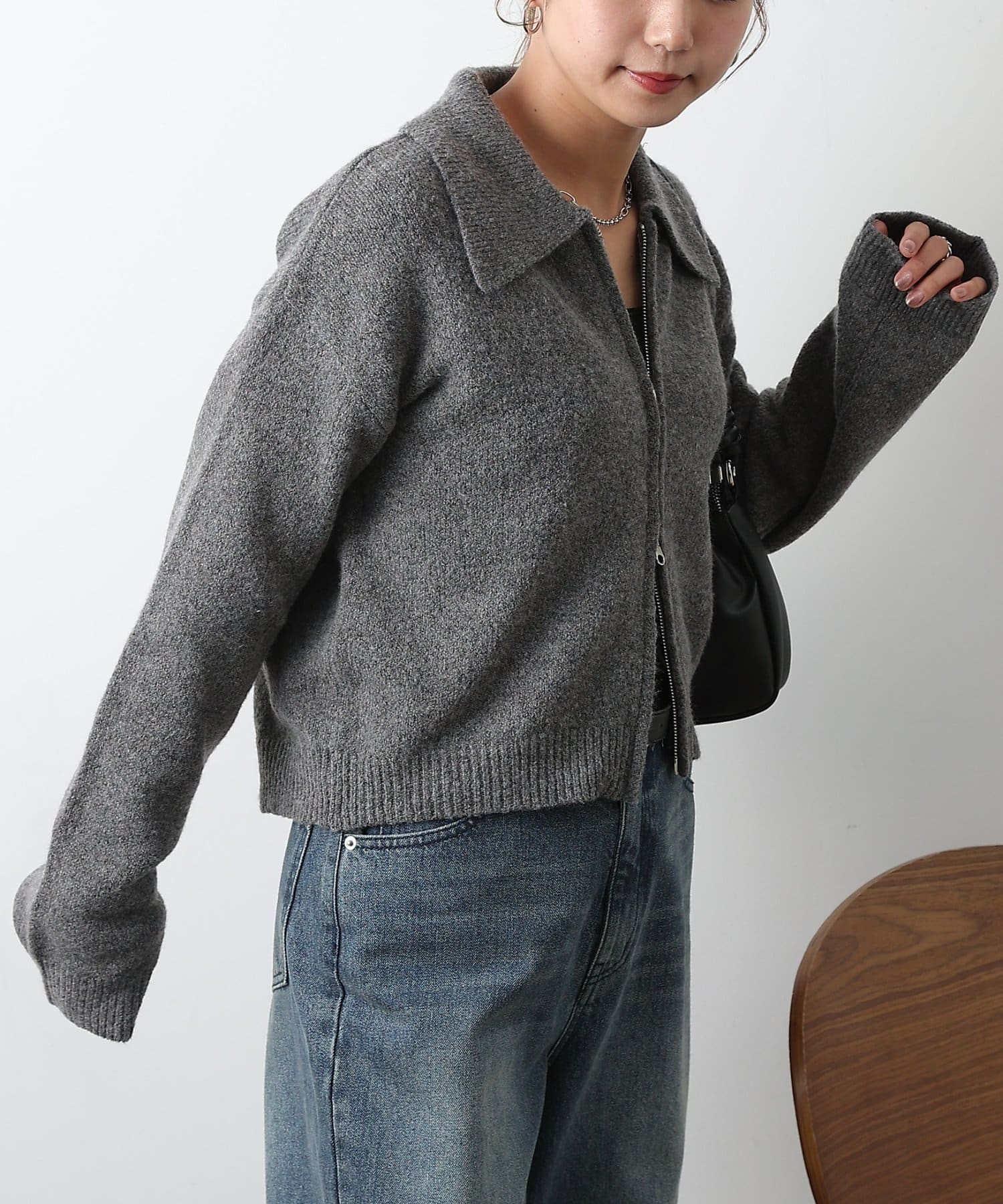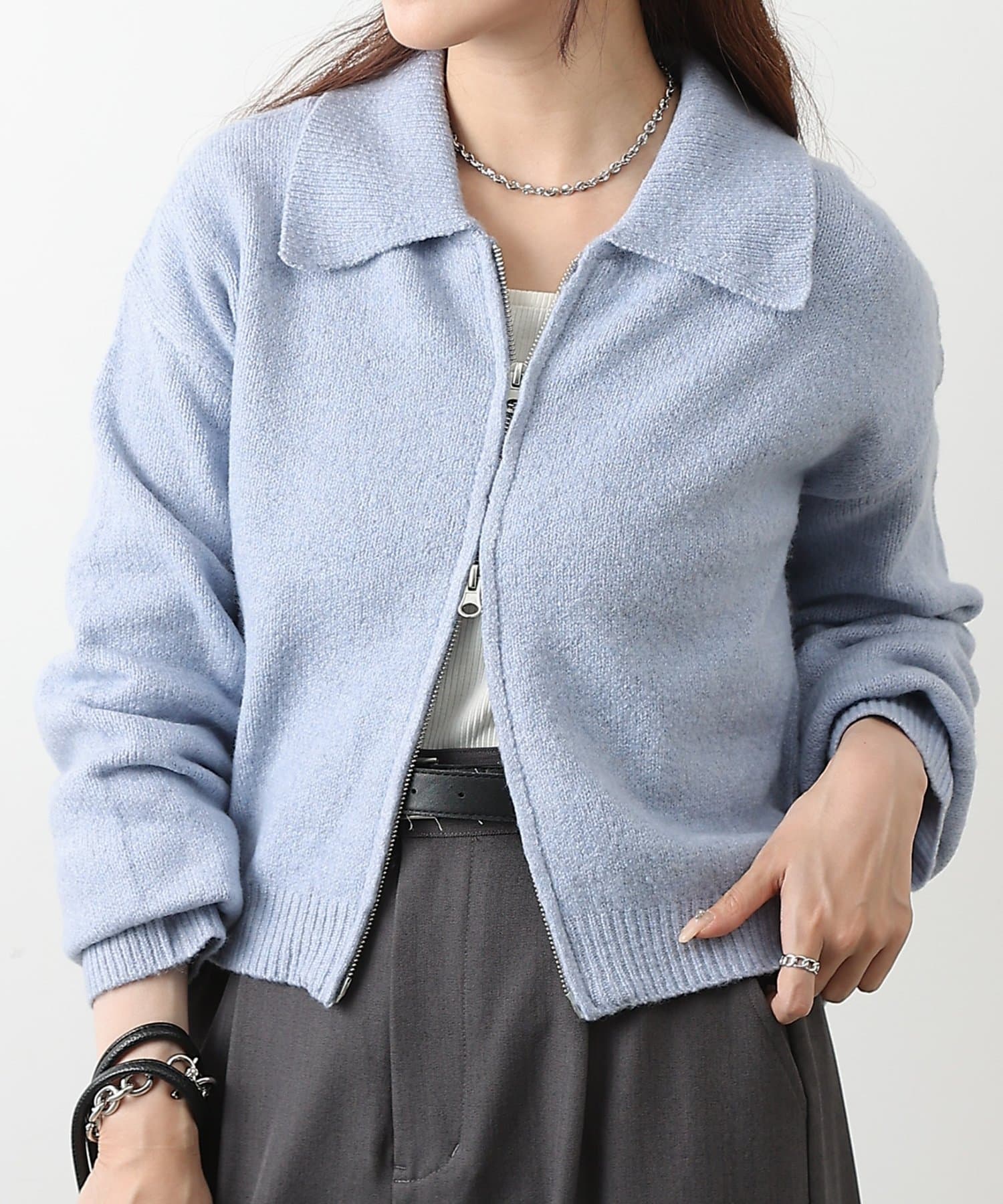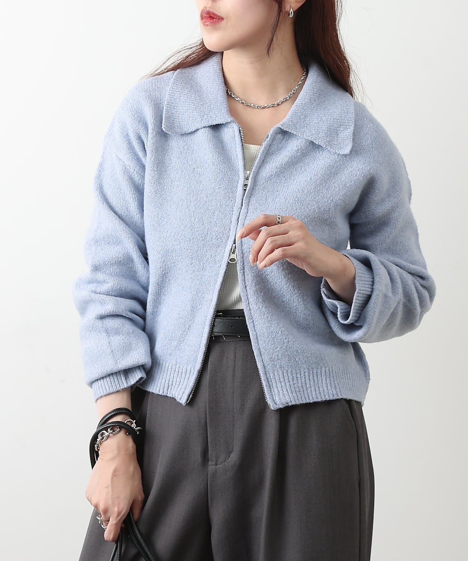 ふんわりとした柔らかな風合いが魅力のジップカーディガン。