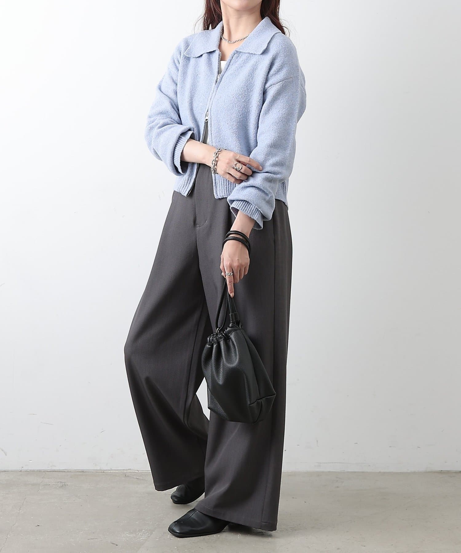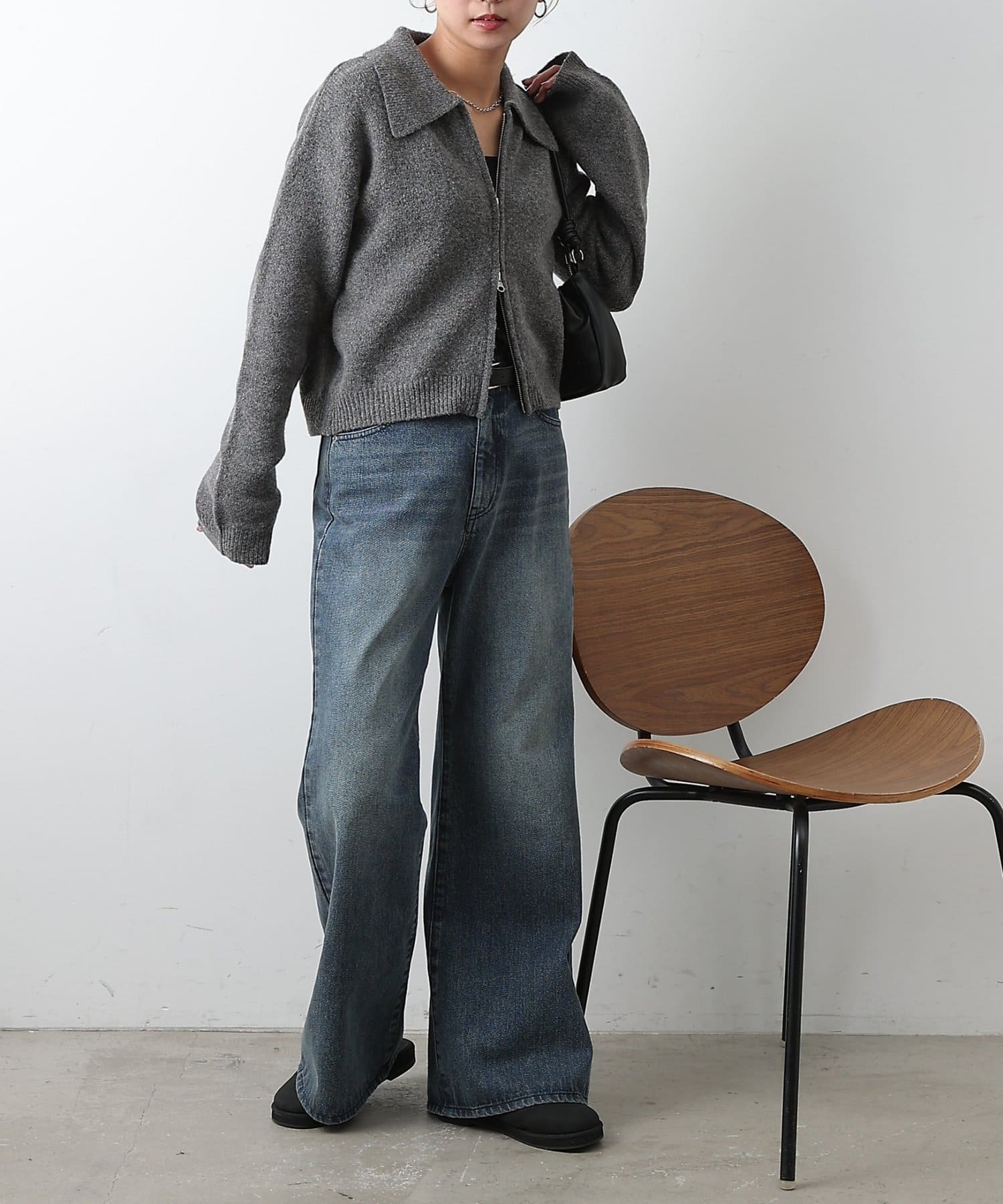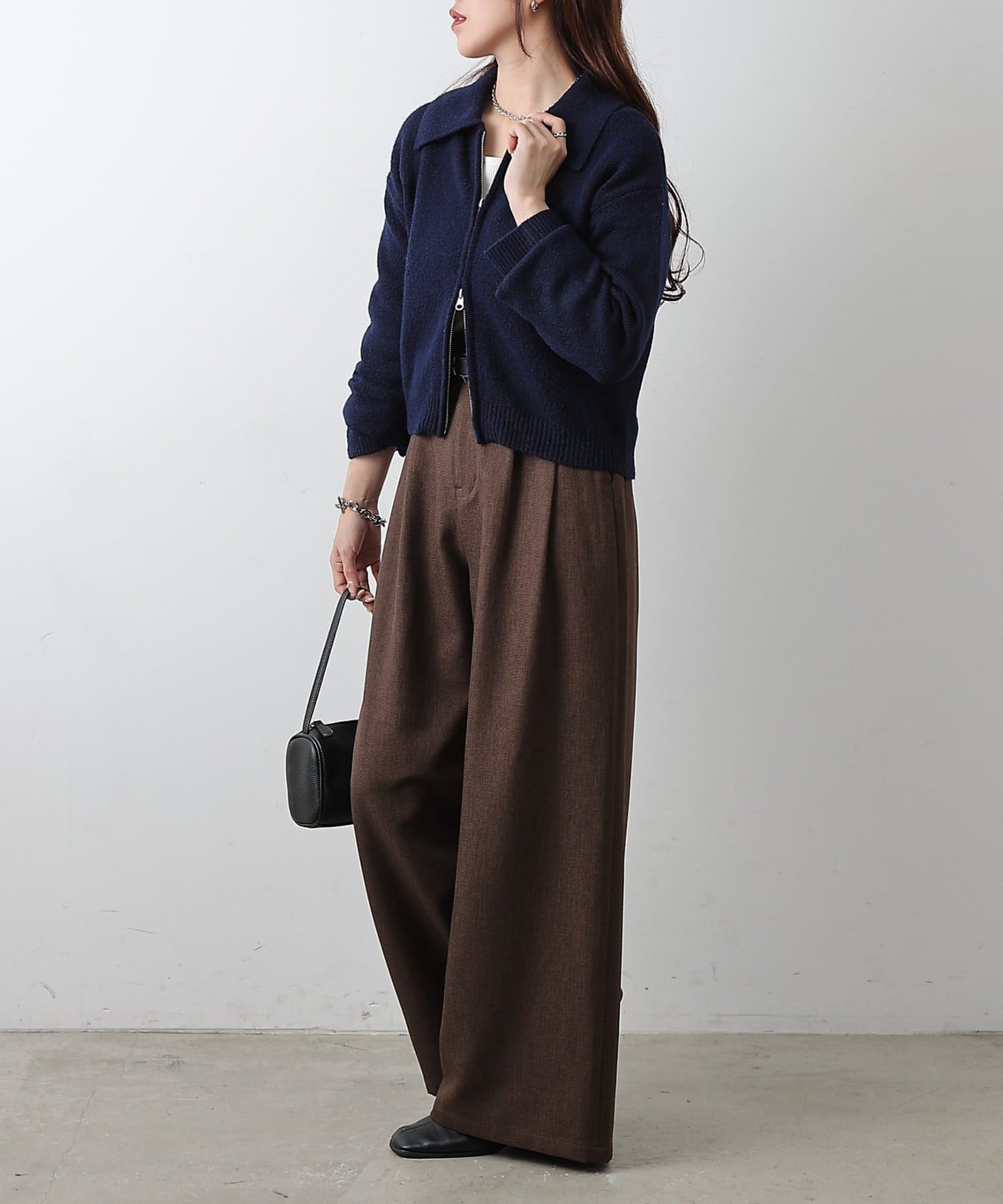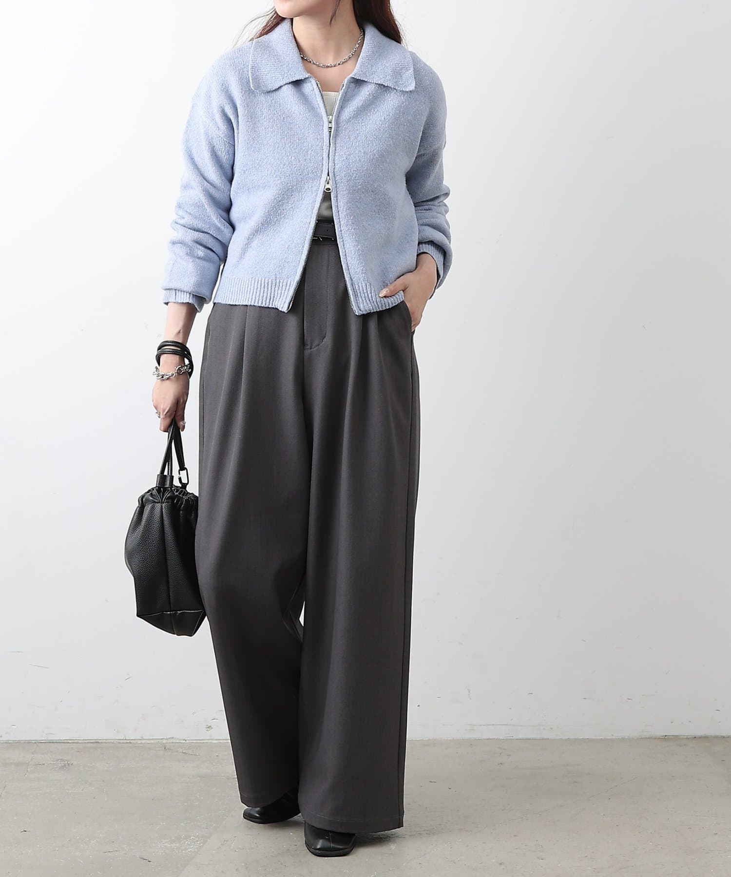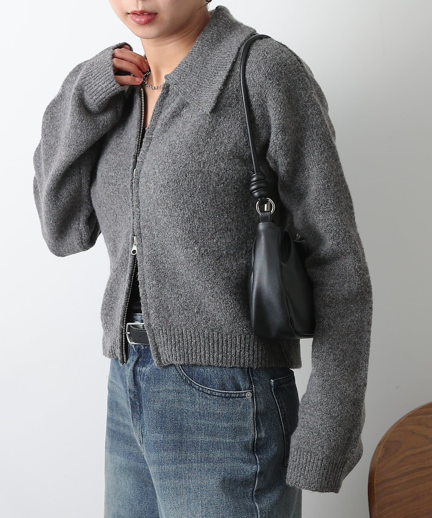 ふんわりとした柔らかな風合いが魅力のジップカーディガン。