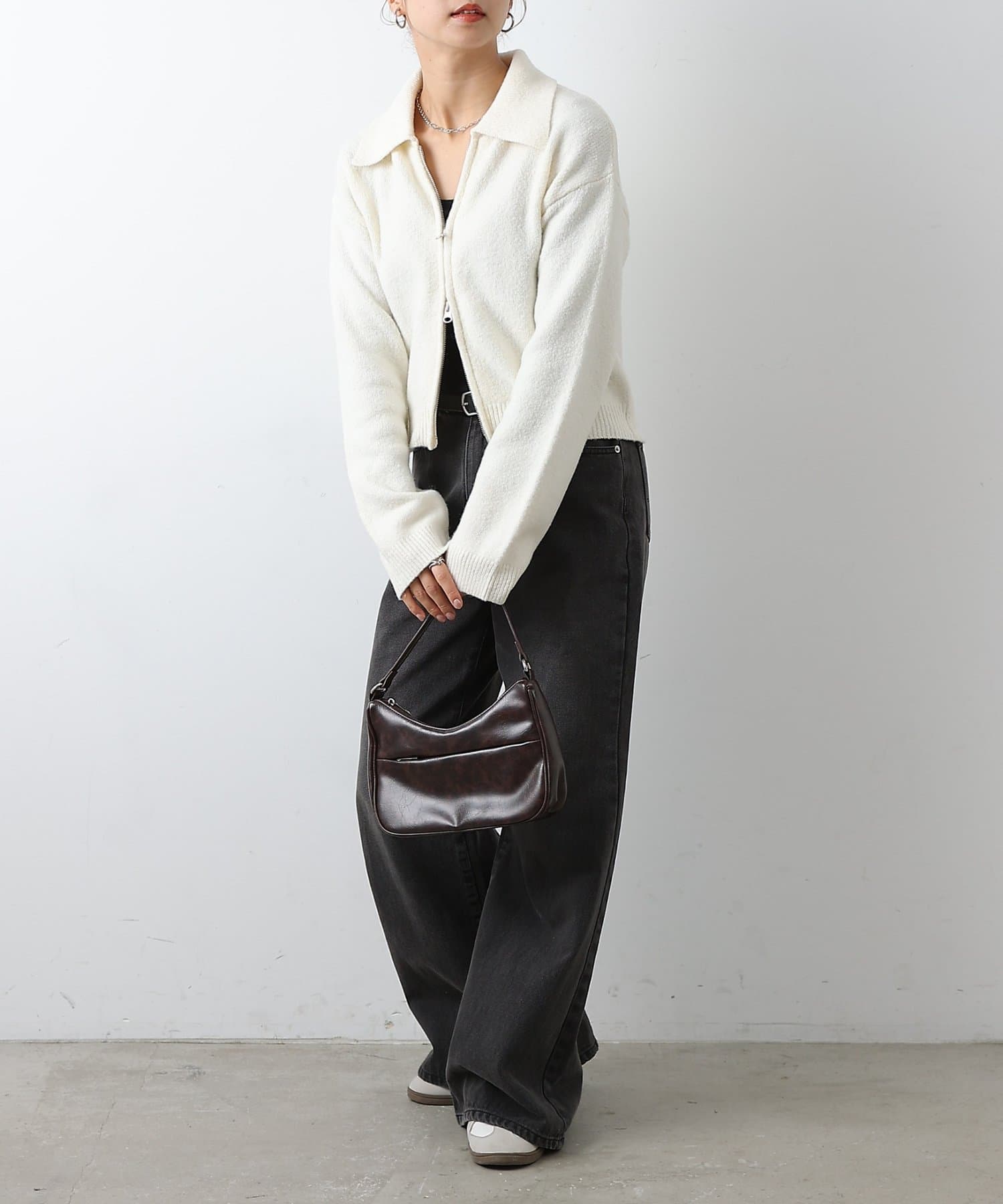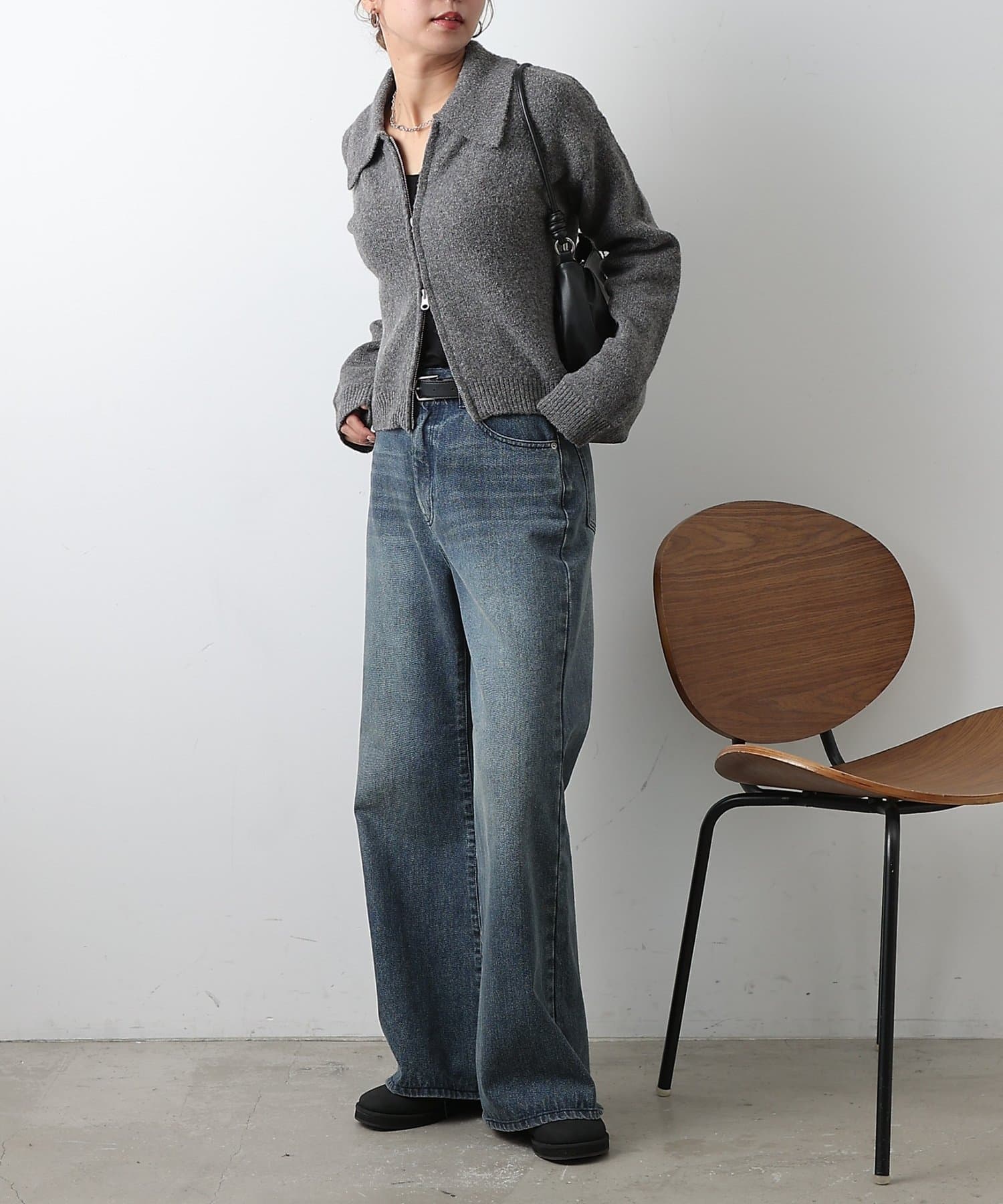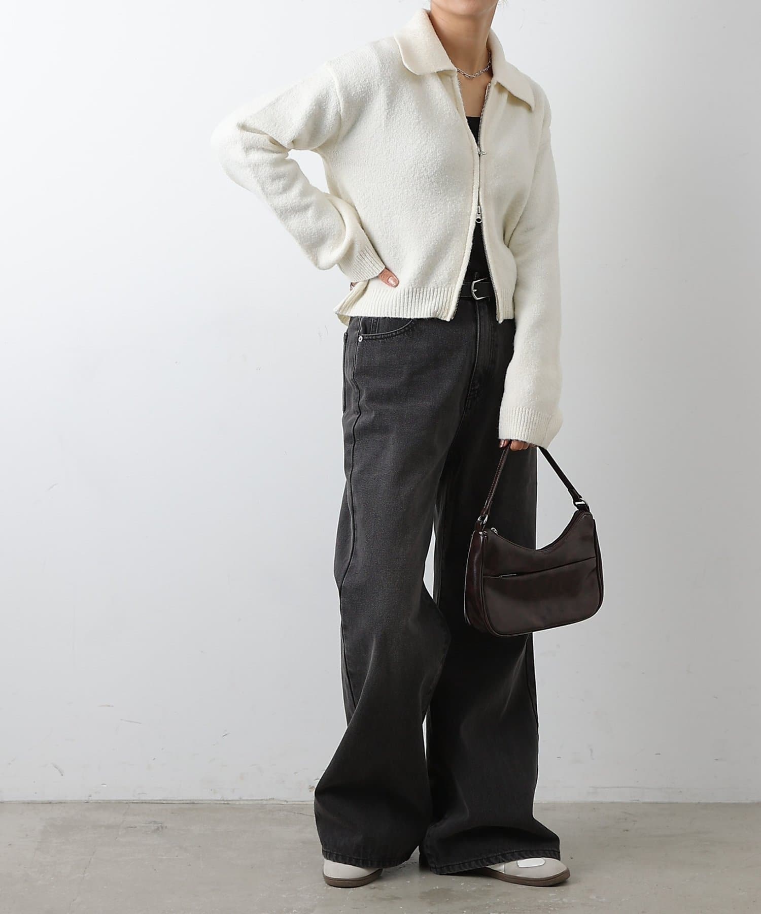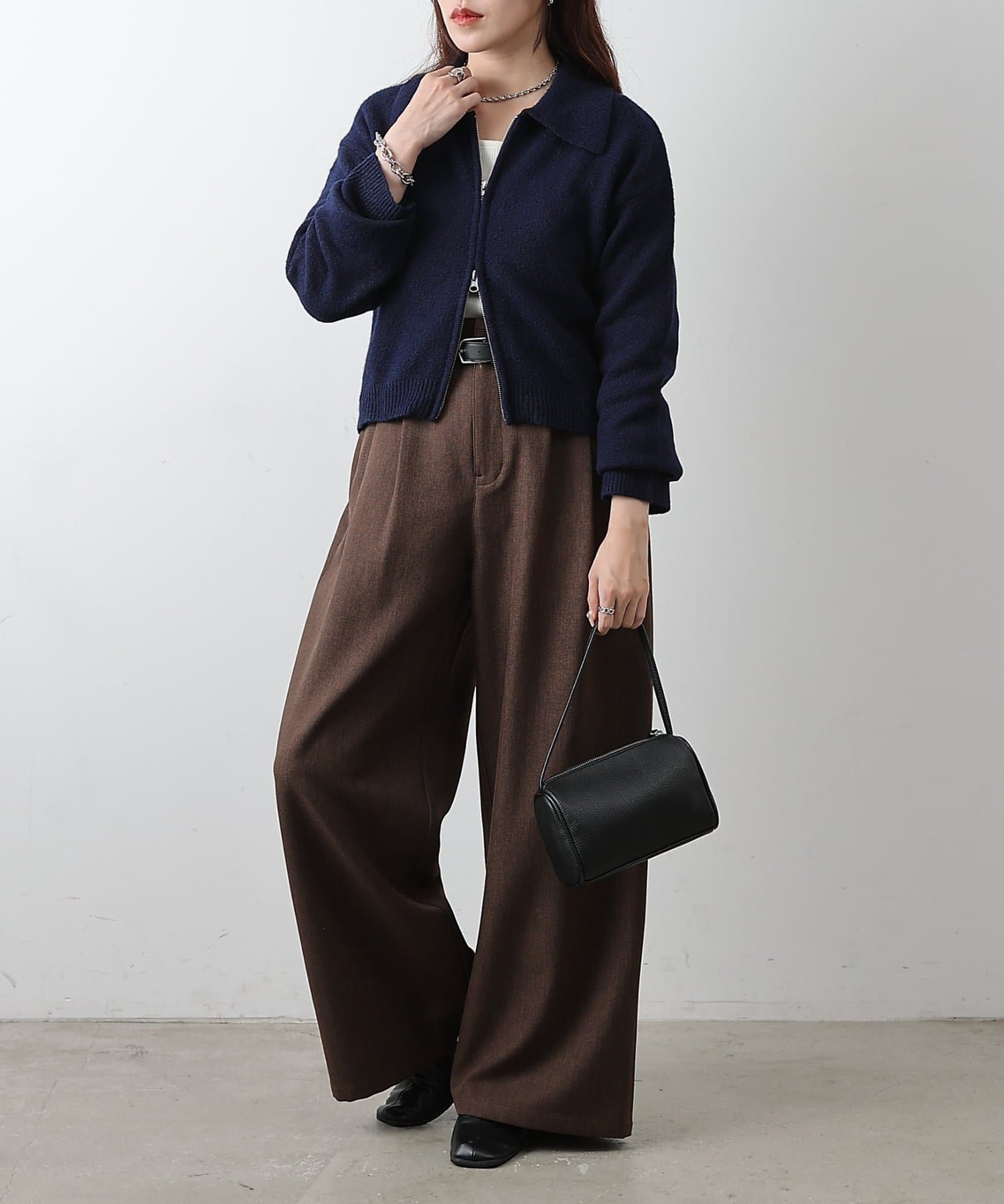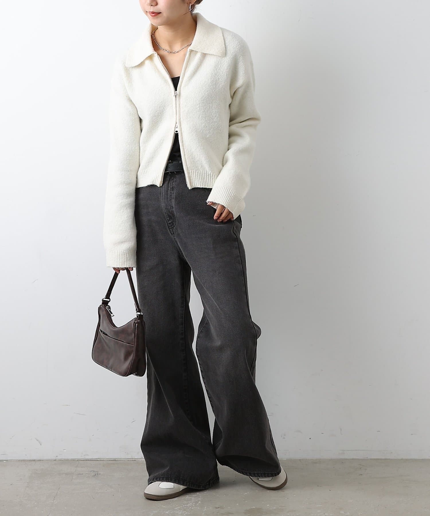 ふんわりとした柔らかな風合いが魅力のジップカーディガン。