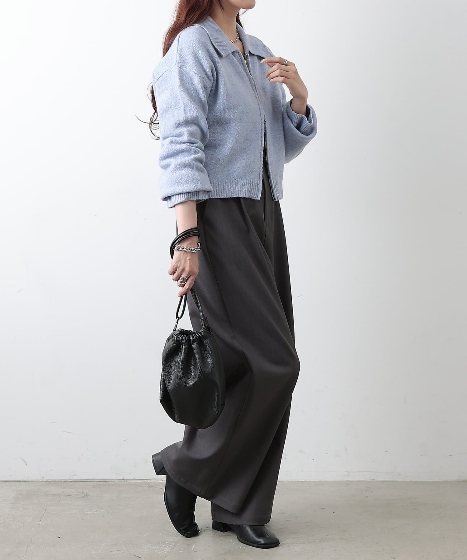 トレンドのダブルジップでお好みのシルエットを楽しめるだけでなく、体のラインにフィットするようなシルエットなので自然とスタイルアップ見えが叶う一枚◎立体的な襟デザインは顔まわりをすっきり見せてくれるのでスタイリングにほどよい抜け感をプラスしてくれます。