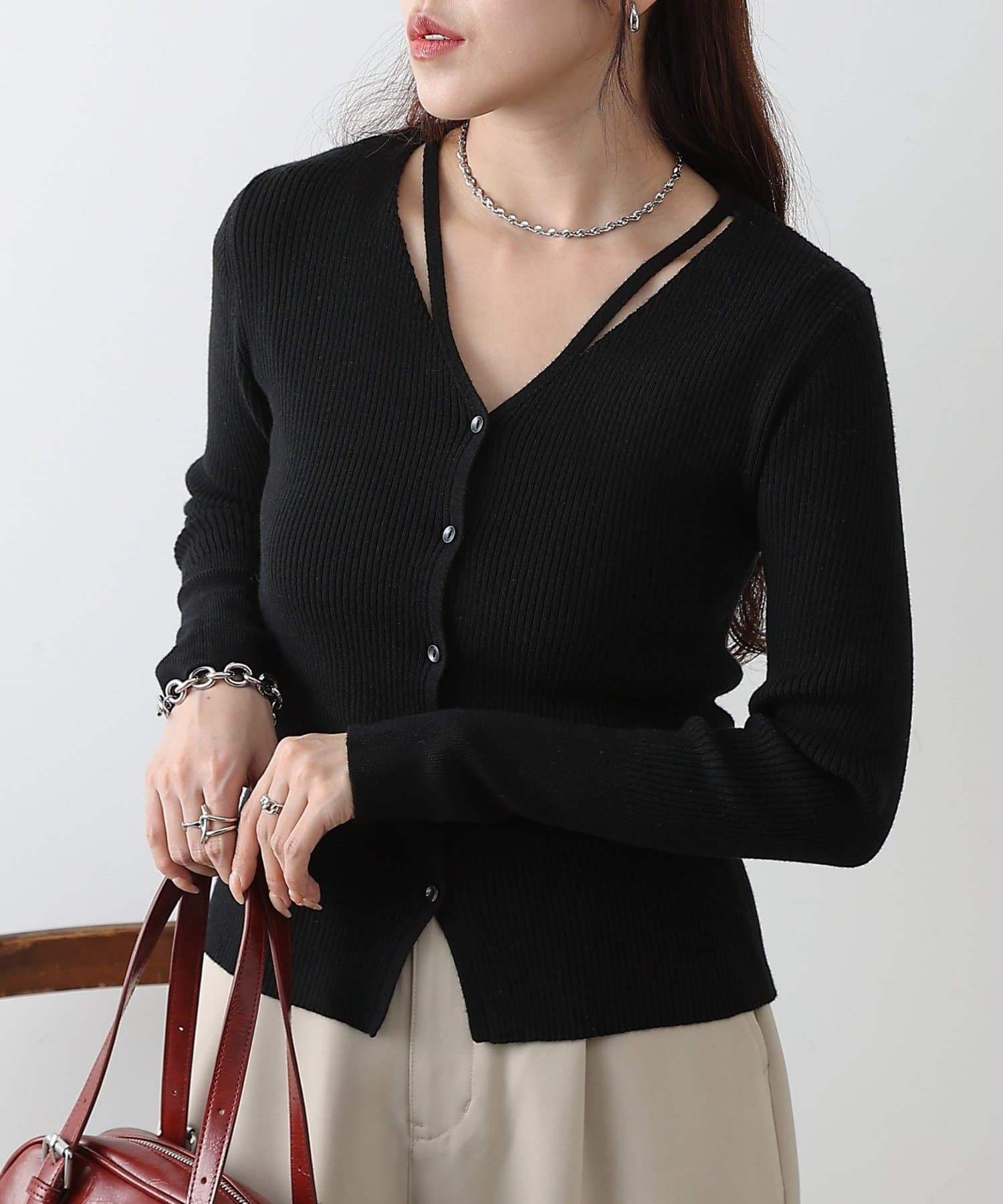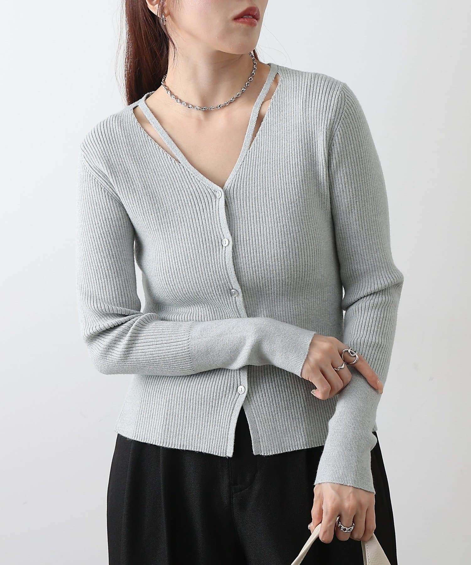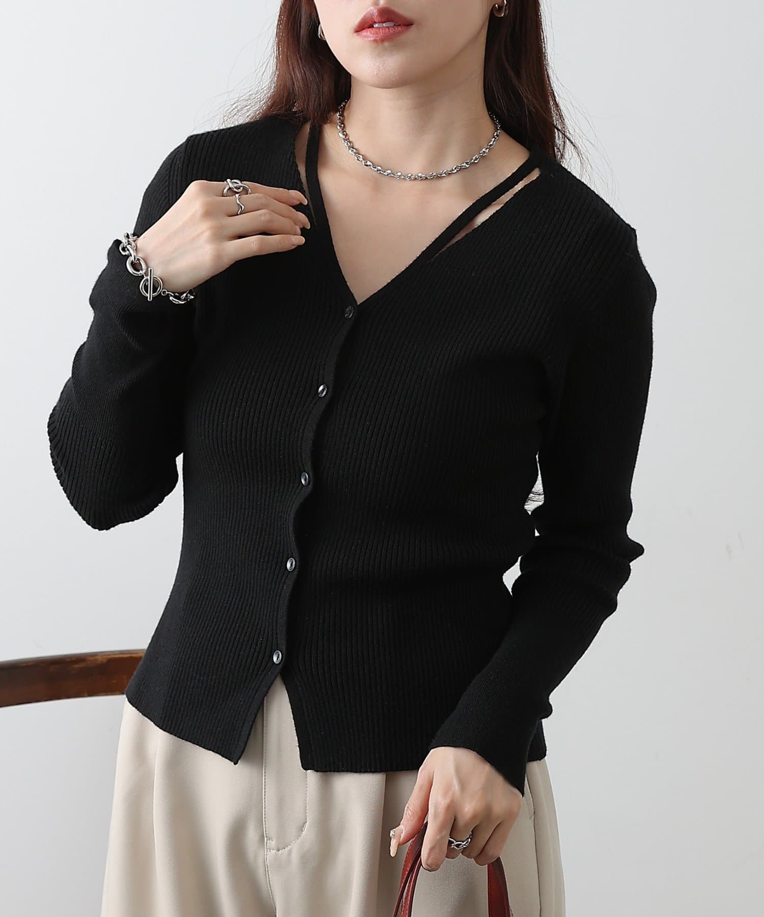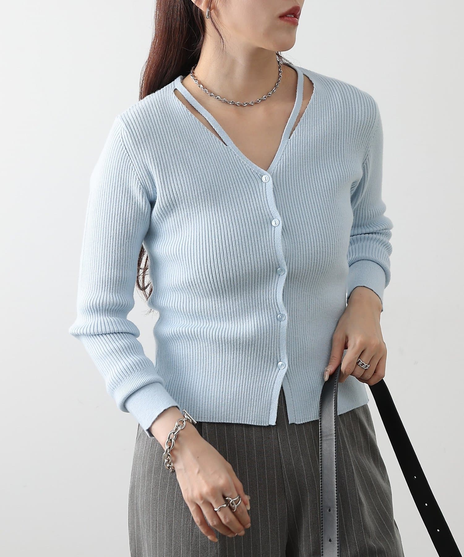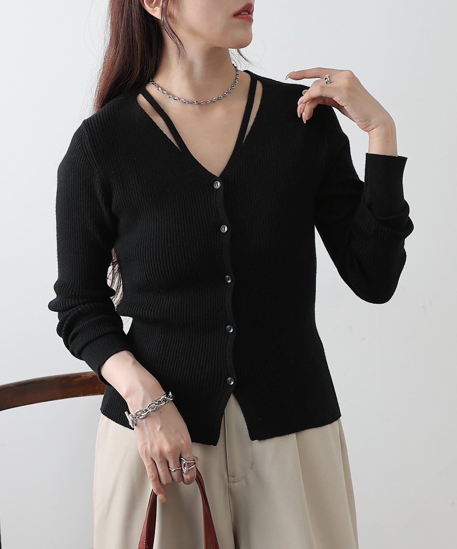 • COLONY 2139(コロニー トゥーワンスリーナイン) スリットVネックニットカーディガン