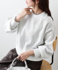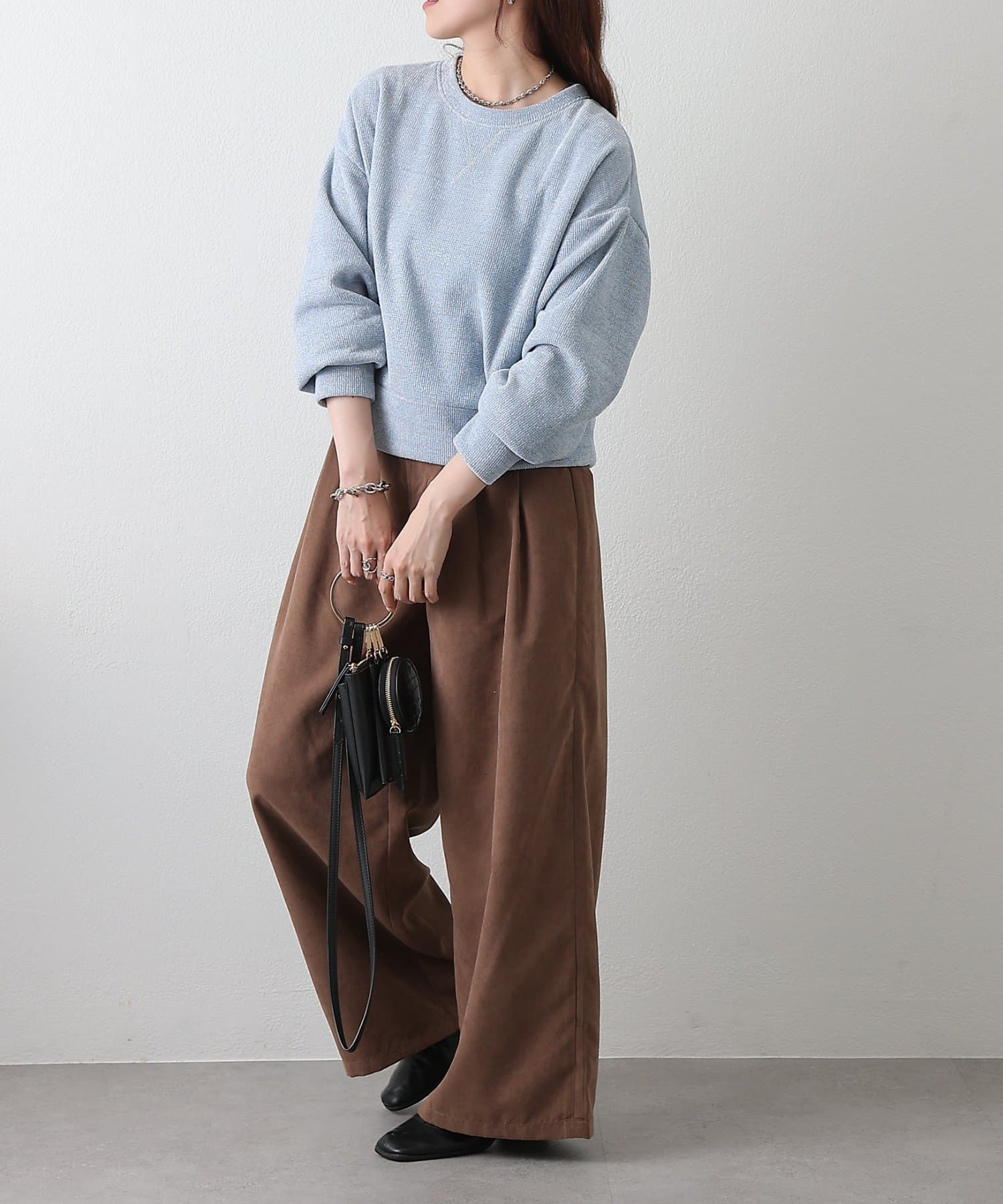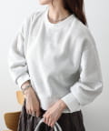 クルーネックは顔まわりをすっきりと見せ、ハイネックとの重ね着とも相性のいいデザインです。