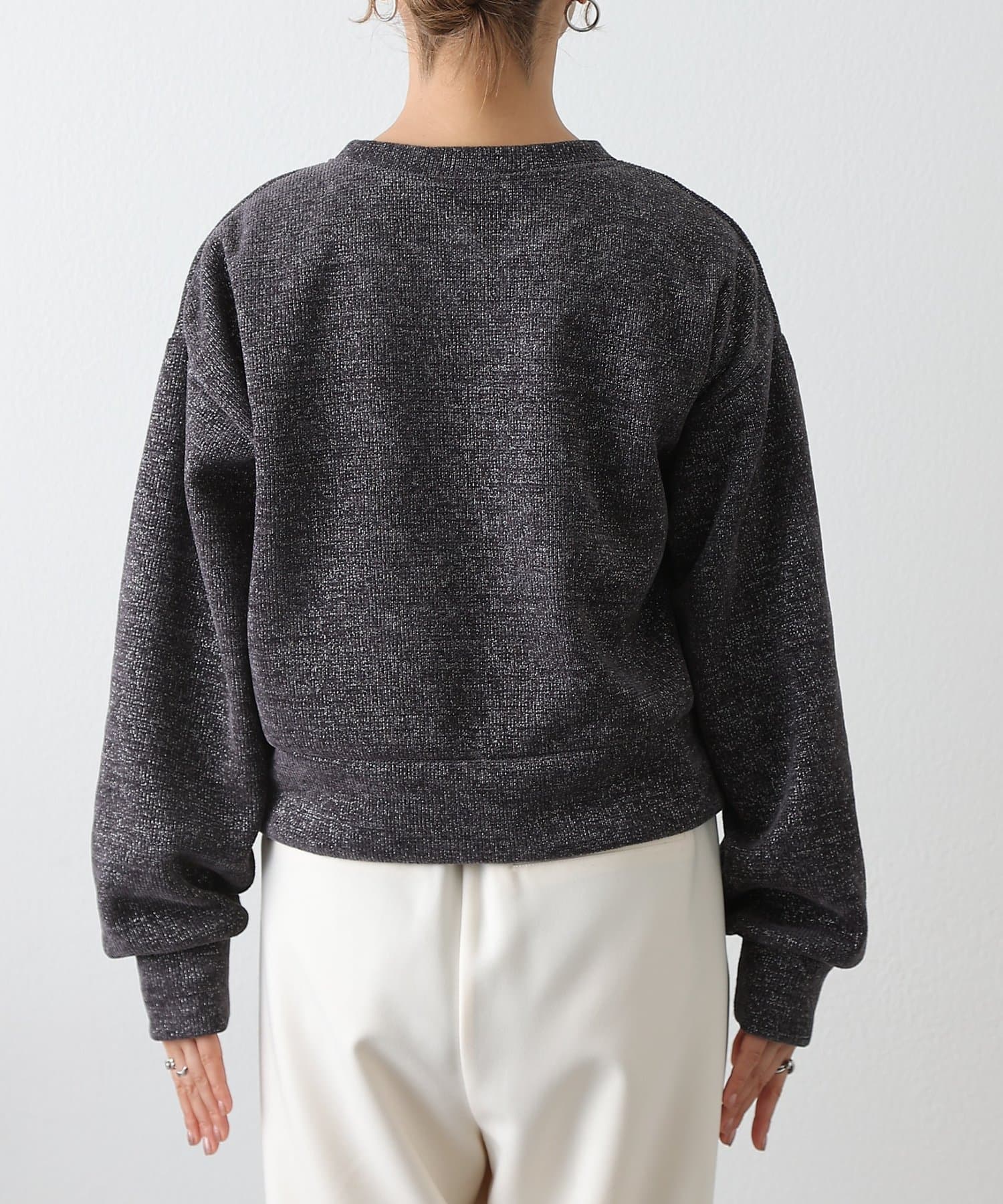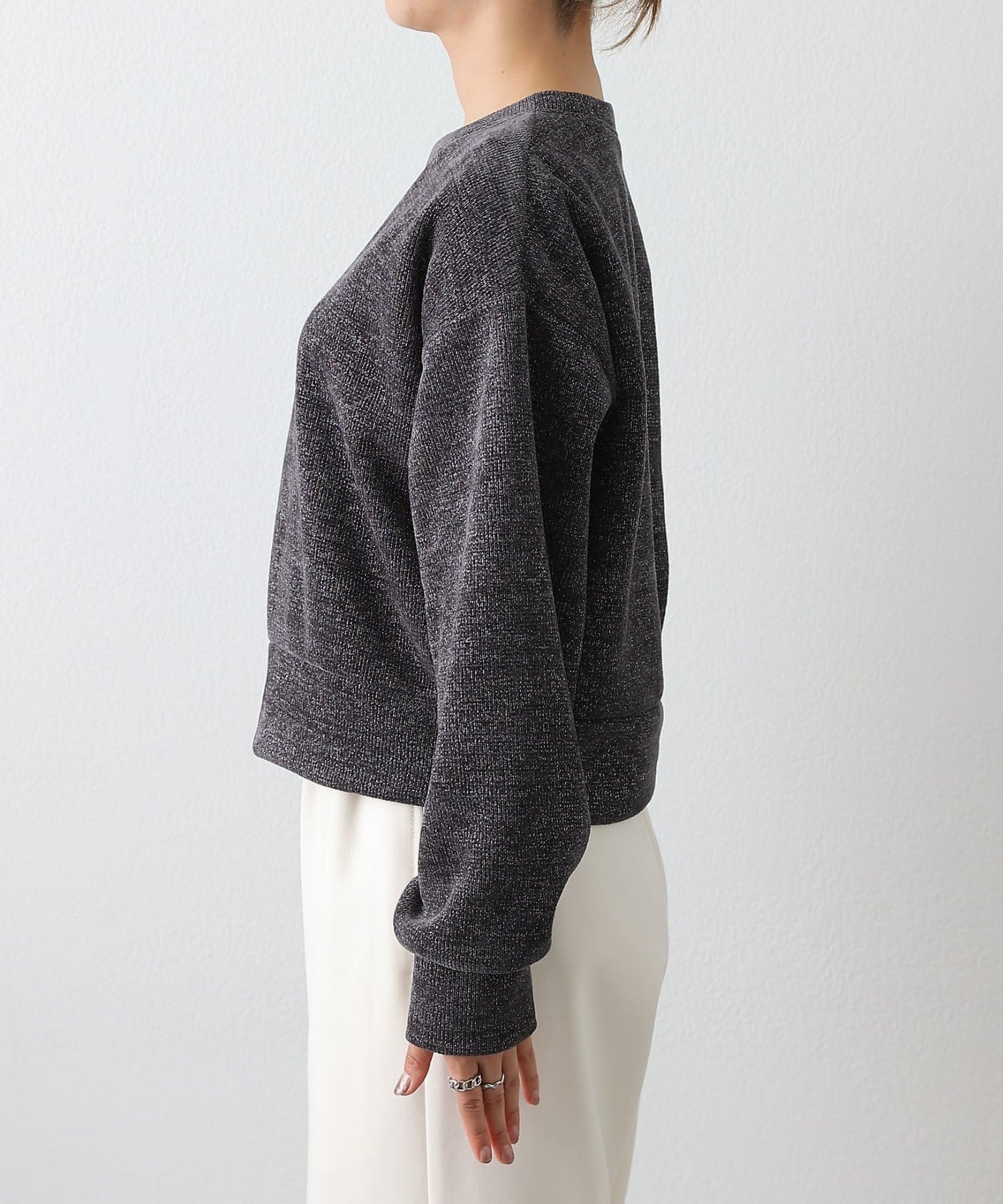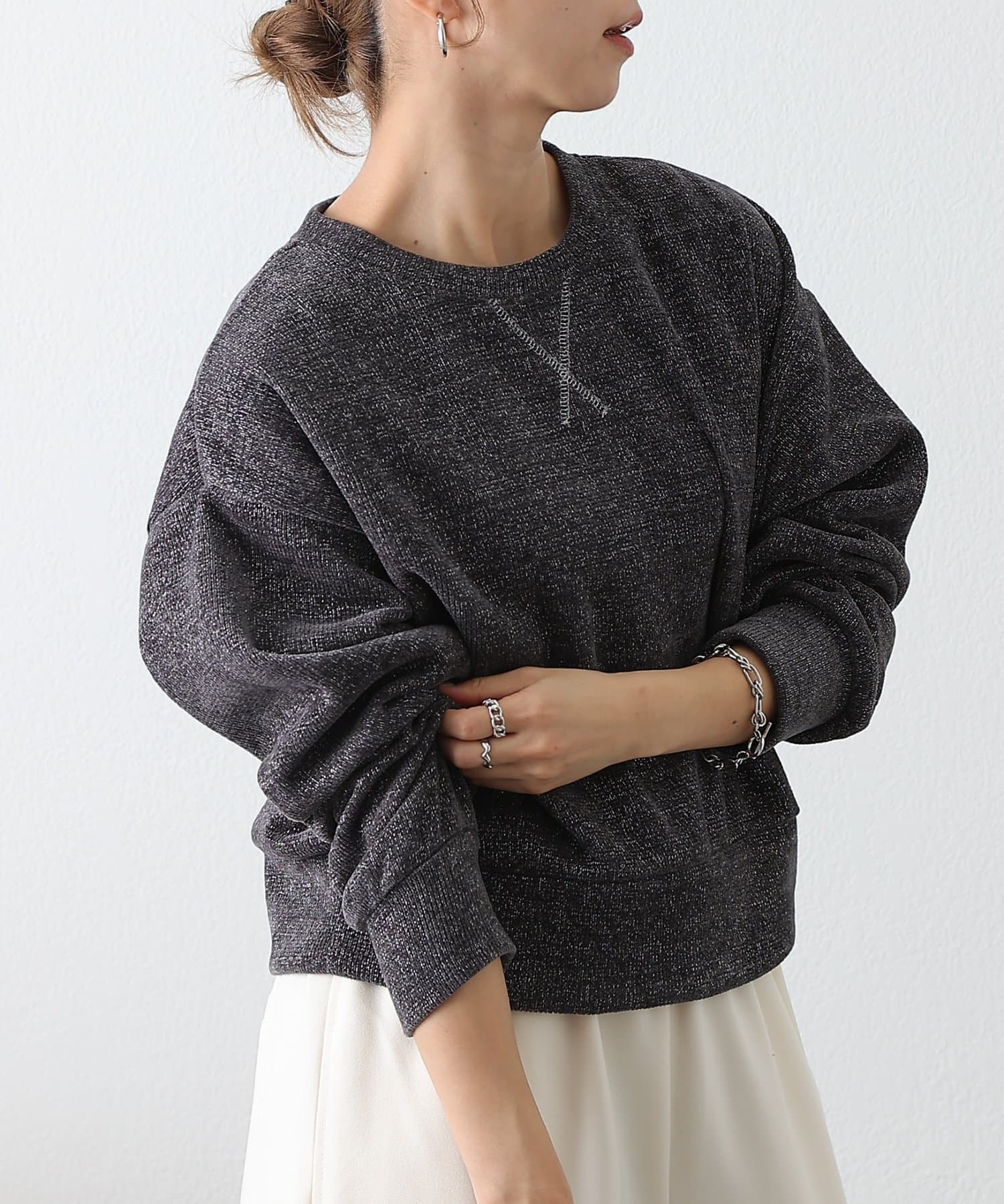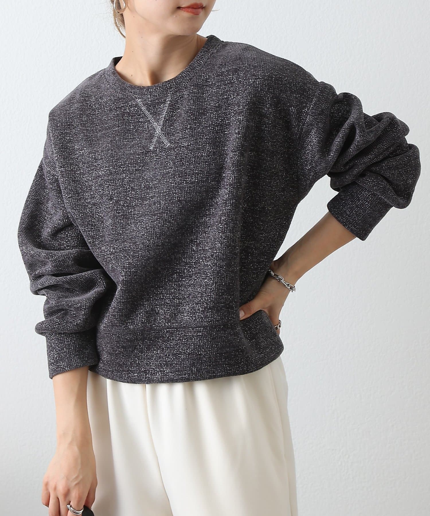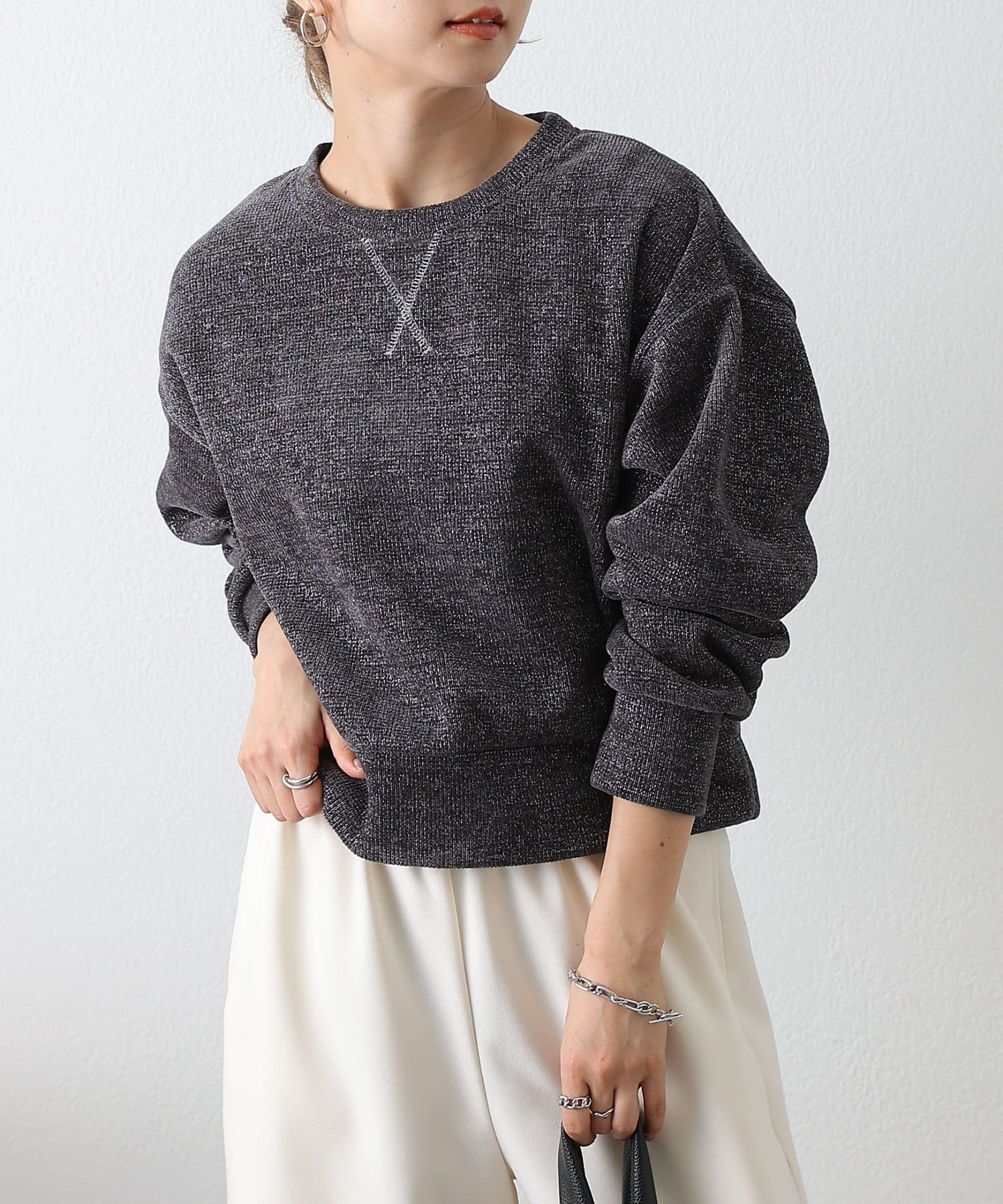 繊細に輝くラメを編み込んだモール素材が、柔らかな質感と華やかな存在感をあわせ持つクルーネックプルオーバーです。